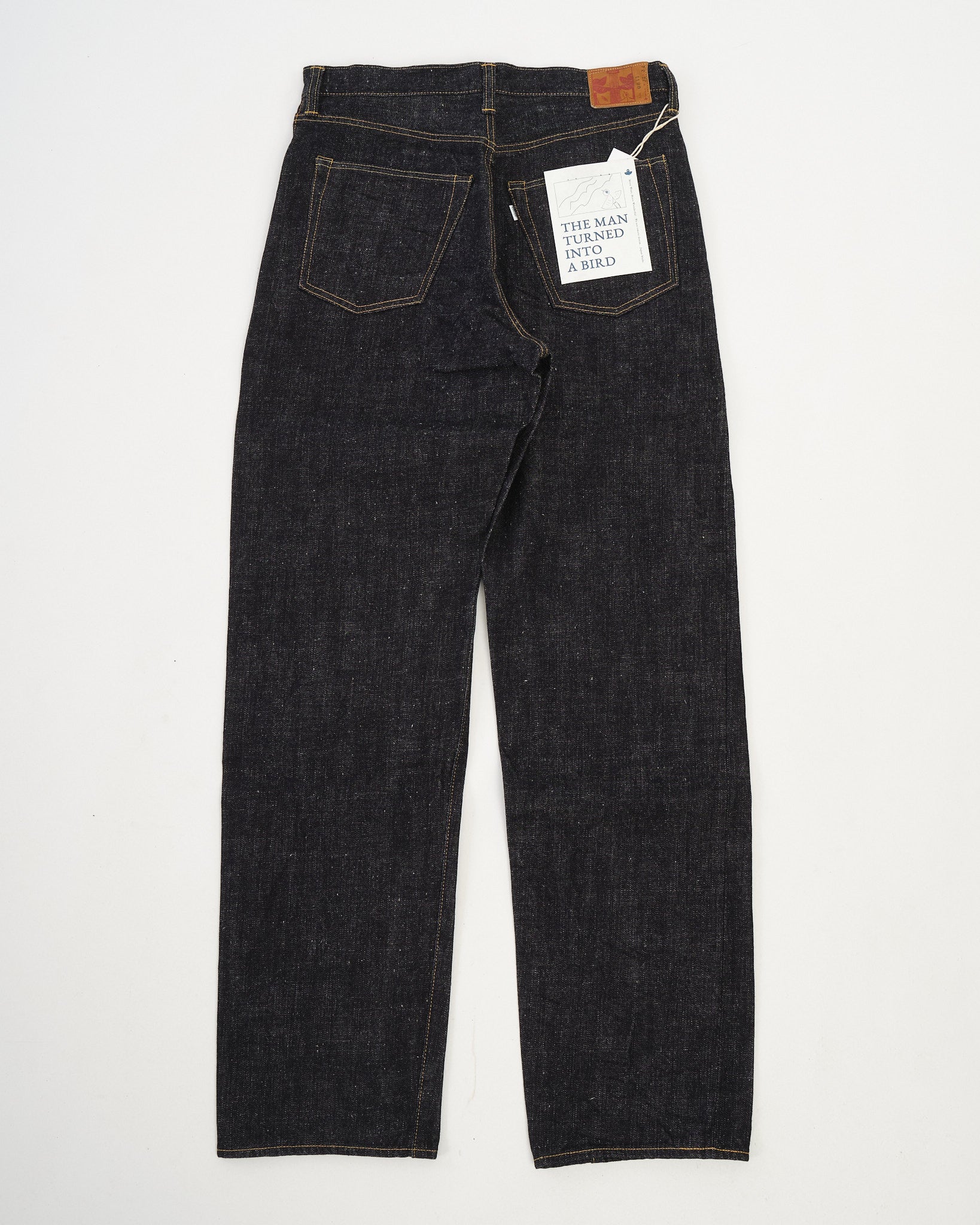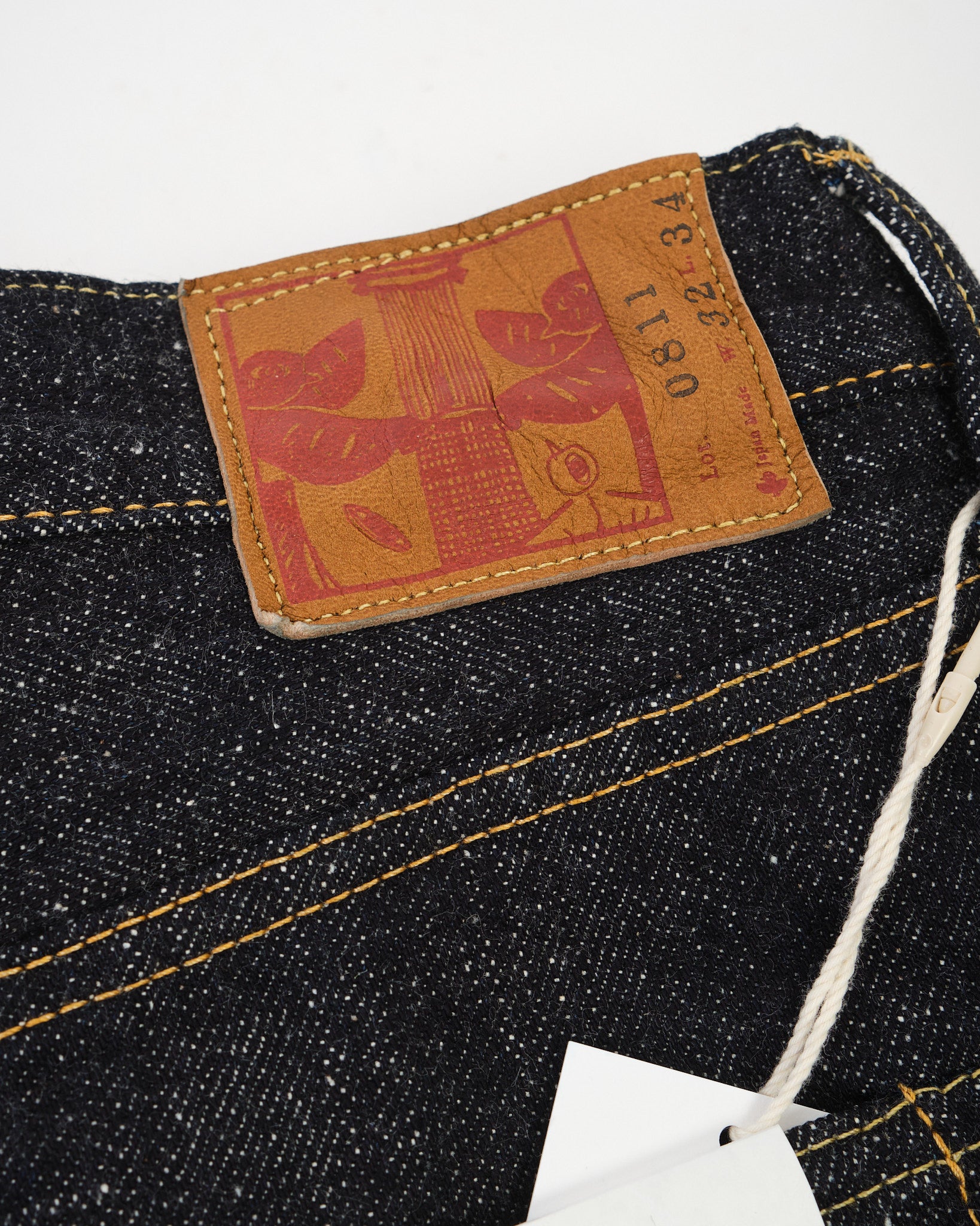 Widest fit in the OMOTO lineup with deep rise Loose, straight silhouette for relaxed wear Inspired by tailor-made trousers for balanced comfort 15.5oz denim with slub warp and nep weft yarns Nep yarns made from recycled cotton add texture Distinctive vertical fading and unique patina with wear Woven on vintage Toyoda shuttle looms under low tension 100% pure indigo rope-dyeing for strong contrast fades Unsanforized denim with one-wash finish (shrink-to-fit adjusted) Retains the natural texture and character of raw cotton