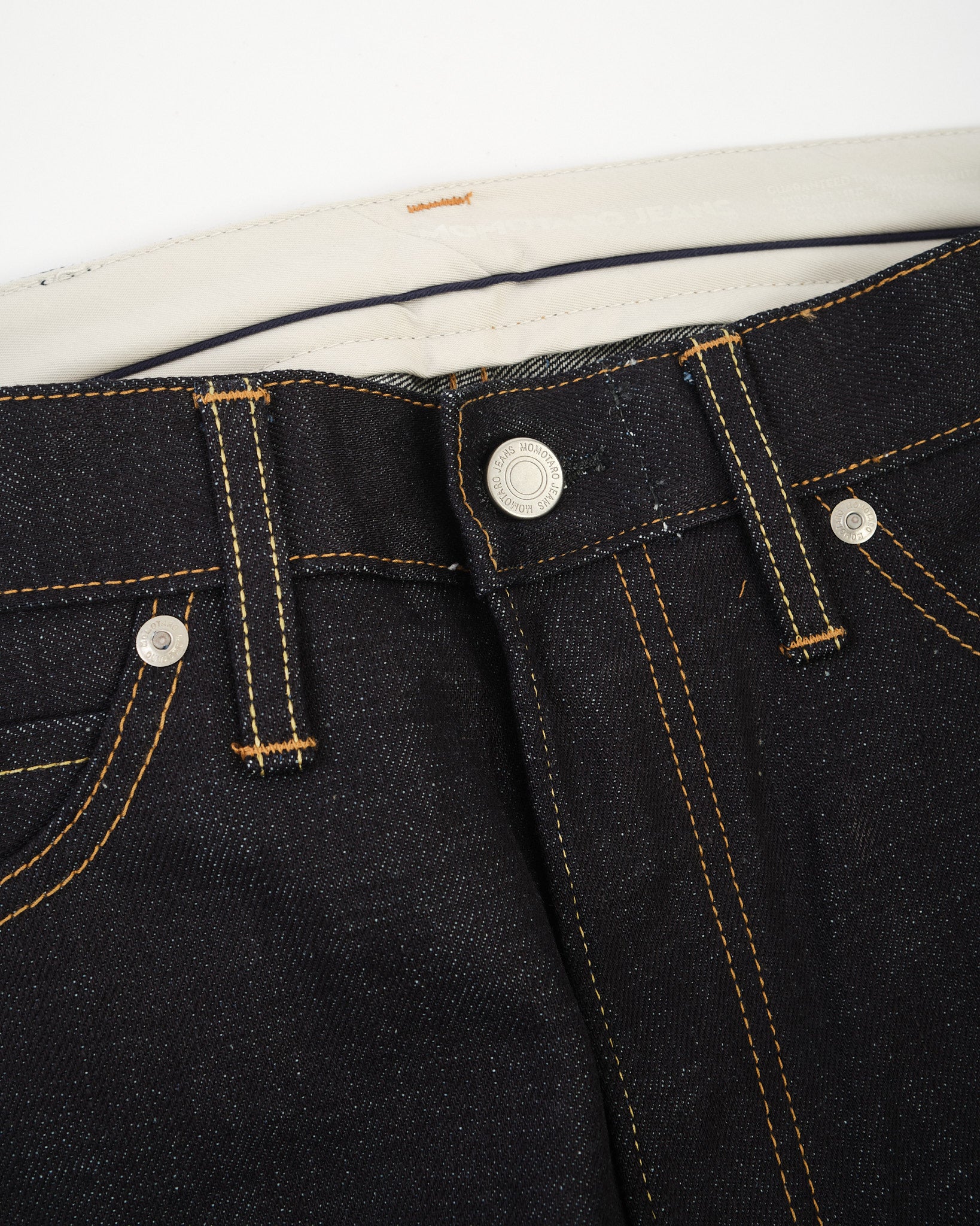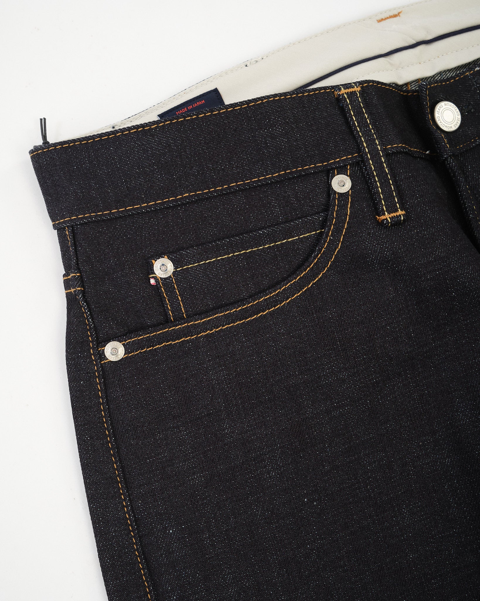 The #100 Straight Fit 14.7oz Rigid Denim by Momotaro is a masterclass in Japanese craftsmanship and refined denim engineering. Woven from 100% Zimbabwe cotton and dyed in the brand’s signature 特濃 Tokuno Blue, this unwashed denim features an intense indigo hue and a distinctive twill texture. The fabric’s structure has been carefully adjusted with finer weft yarns and a shrinkage-resistant finish, offering the benefits of rigid denim without the fit anxiety. The #100 fit blends moderate thigh room with a gentle taper and slightly deeper rise for a secure, balanced silhouette. Finished with a cowhide leather patch, button fly, and waistband curtain, this jean is built to age beautifully and move naturally with the wearer — backed by Momotaro’s permanent repair warranty.