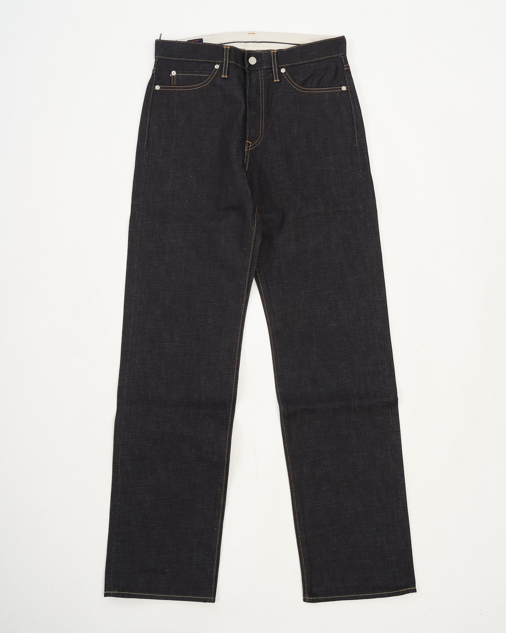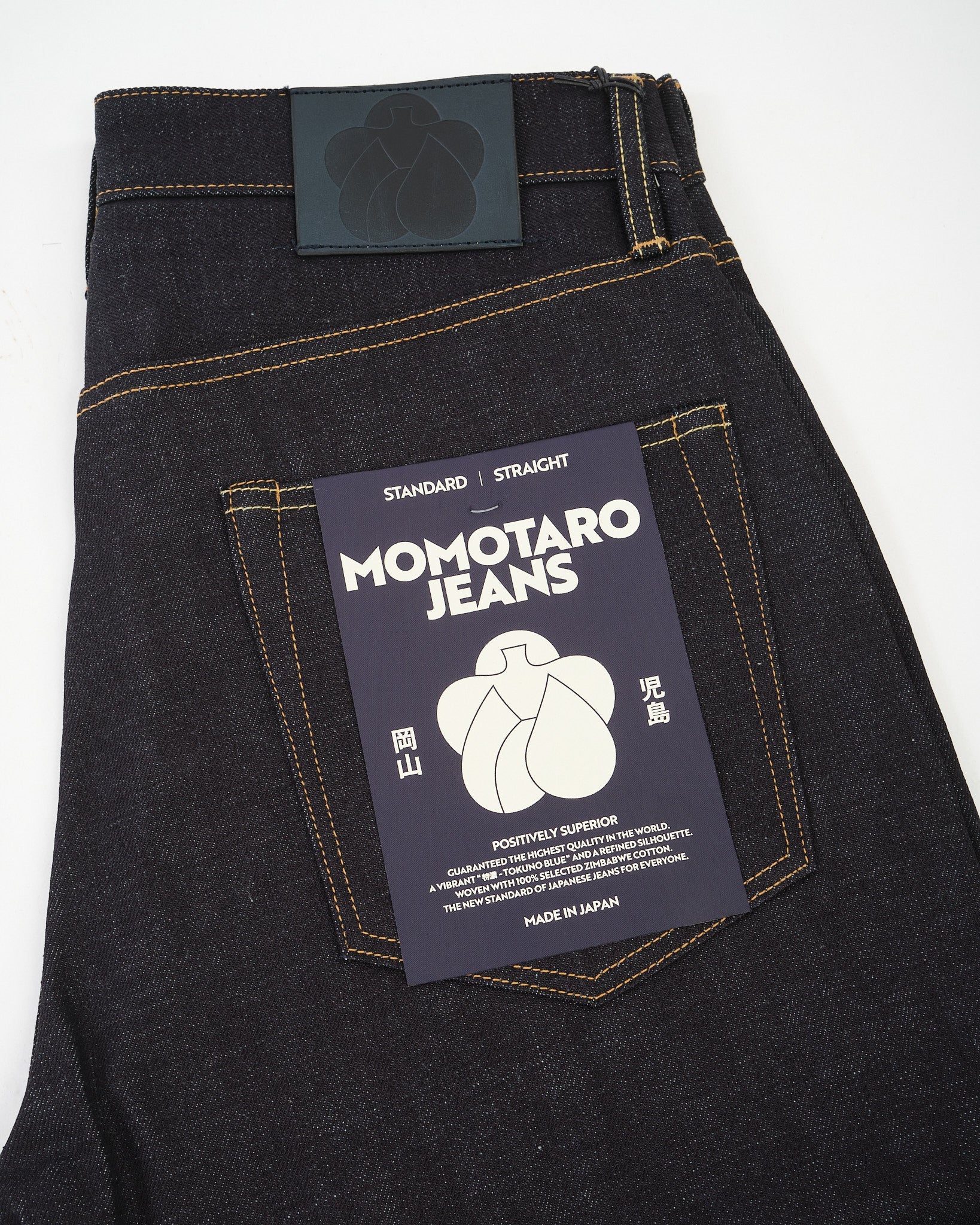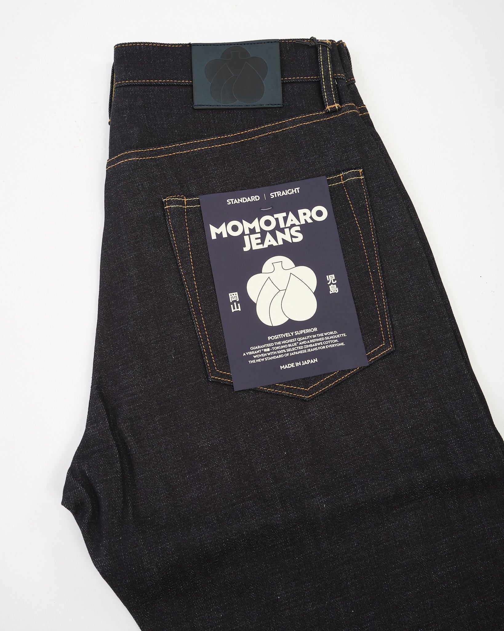 The #100 Straight Fit 14.7oz Rigid Denim by Momotaro is a masterclass in Japanese craftsmanship and refined denim engineering. Woven from 100% Zimbabwe cotton and dyed in the brand’s signature 特濃 Tokuno Blue, this unwashed denim features an intense indigo hue and a distinctive twill texture. The fabric’s structure has been carefully adjusted with finer weft yarns and a shrinkage-resistant finish, offering the benefits of rigid denim without the fit anxiety. The #100 fit blends moderate thigh room with a gentle taper and slightly deeper rise for a secure, balanced silhouette. Finished with a cowhide leather patch, button fly, and waistband curtain, this jean is built to age beautifully and move naturally with the wearer — backed by Momotaro’s permanent repair warranty.