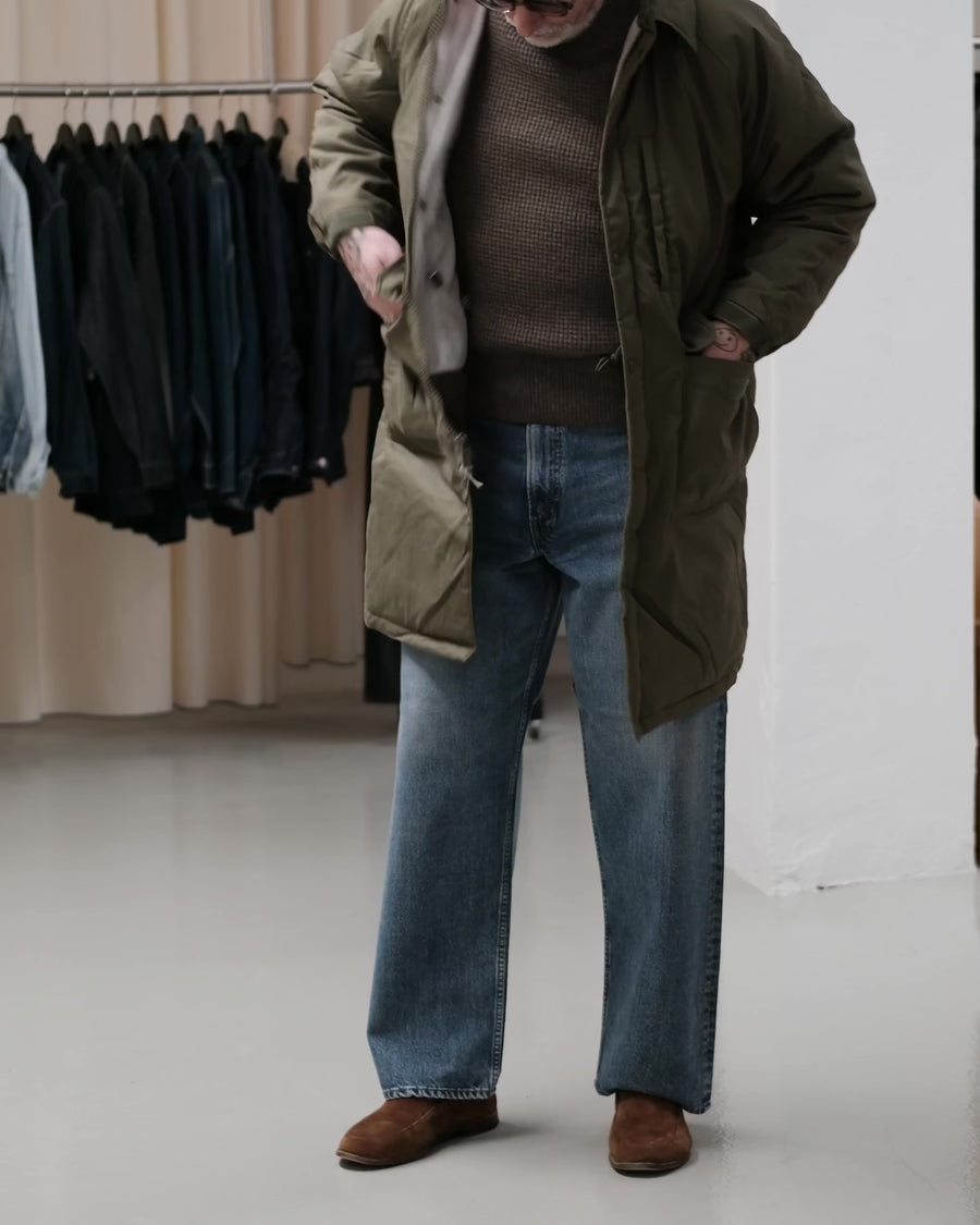 Los Pantalones de Mezclilla Super Papá de orSlow 100 son un homenaje a los estilos de mezclilla relajados y cómodos popularizados en los años 90. Diseñados para aquellos que aprecian un ajuste amplio y relajado, estos jeans ofrecen una cintura de talle alto con amplio espacio en la cadera y los muslos, fluyendo hacia una pierna más ancha para un uso sin esfuerzo. Esta silueta se ha convertido en favorita entre los entusiastas de la mezclilla que buscan tanto comodidad como estilo.