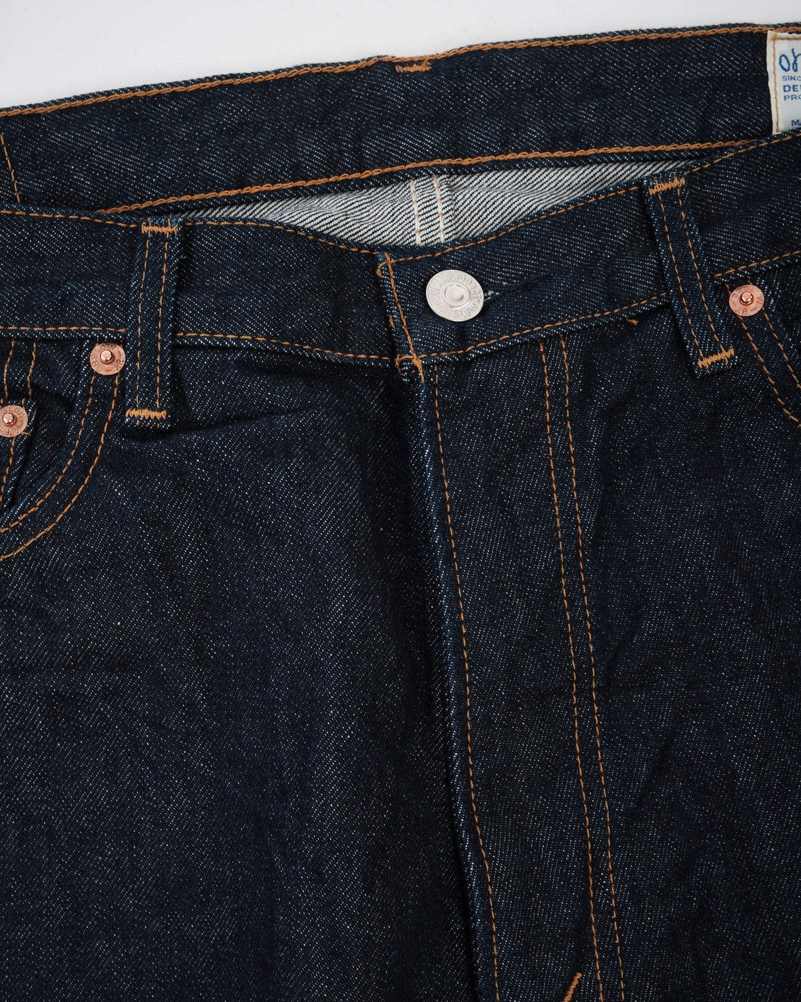 Hecho de denim japonés sanforizado de 14 oz. para durabilidad y calidad.