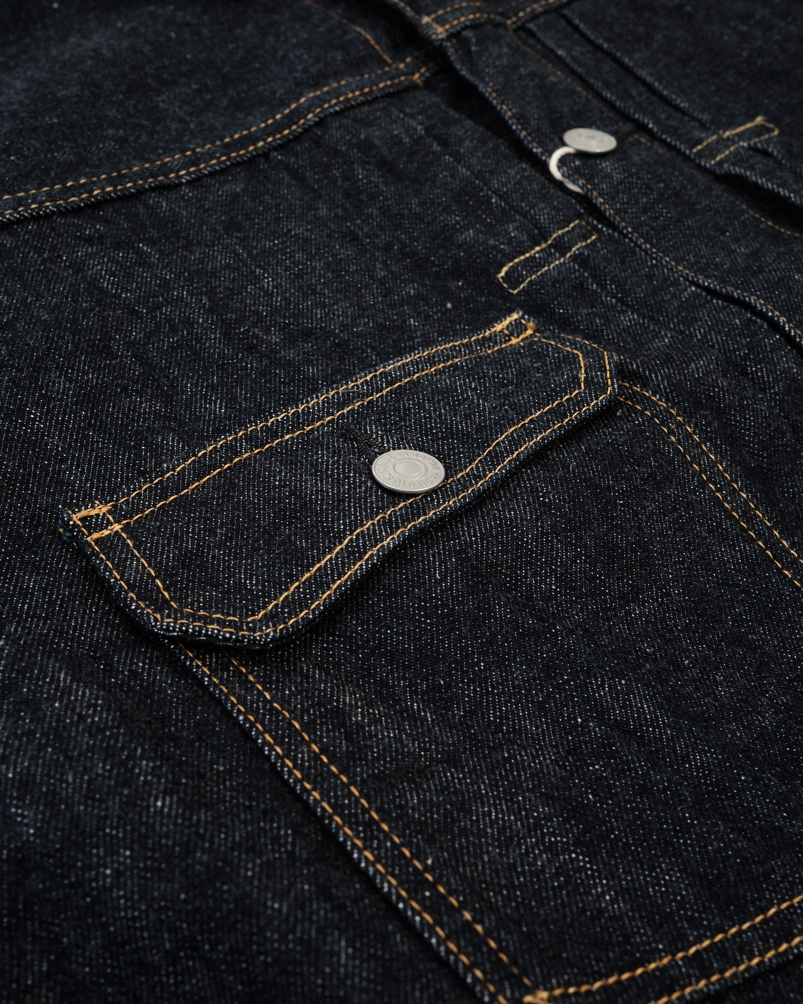 Número de estilo: 3212 16oz de denim nep con una superficie texturizada y rugosa Los hilos de urdimbre usan fibras cortas de algodón para un aspecto irregular e inspirado en lo vintage Hilos de trama hilados usando la técnica "gara-bo" para una sensación rústica, como tejido a mano Teñido en cuerda con índigo 100% puro para desvanecimientos profundos y de alto contraste con el tiempo Tejido en un Telar Automático Toyoda GL8 de los años 1950 para una tela transpirable y texturizada No sanforizado pero enjuagado para retener la textura cruda asegurando comodidad Selvedge azul-verde "MIMI" de OMOTO para un detalle auténtico de denim Parche de cuero de oveja de marca personalizada para un toque premium Costuras reforzadas y botones metálicos originales para durabilidad y estilo atemporal