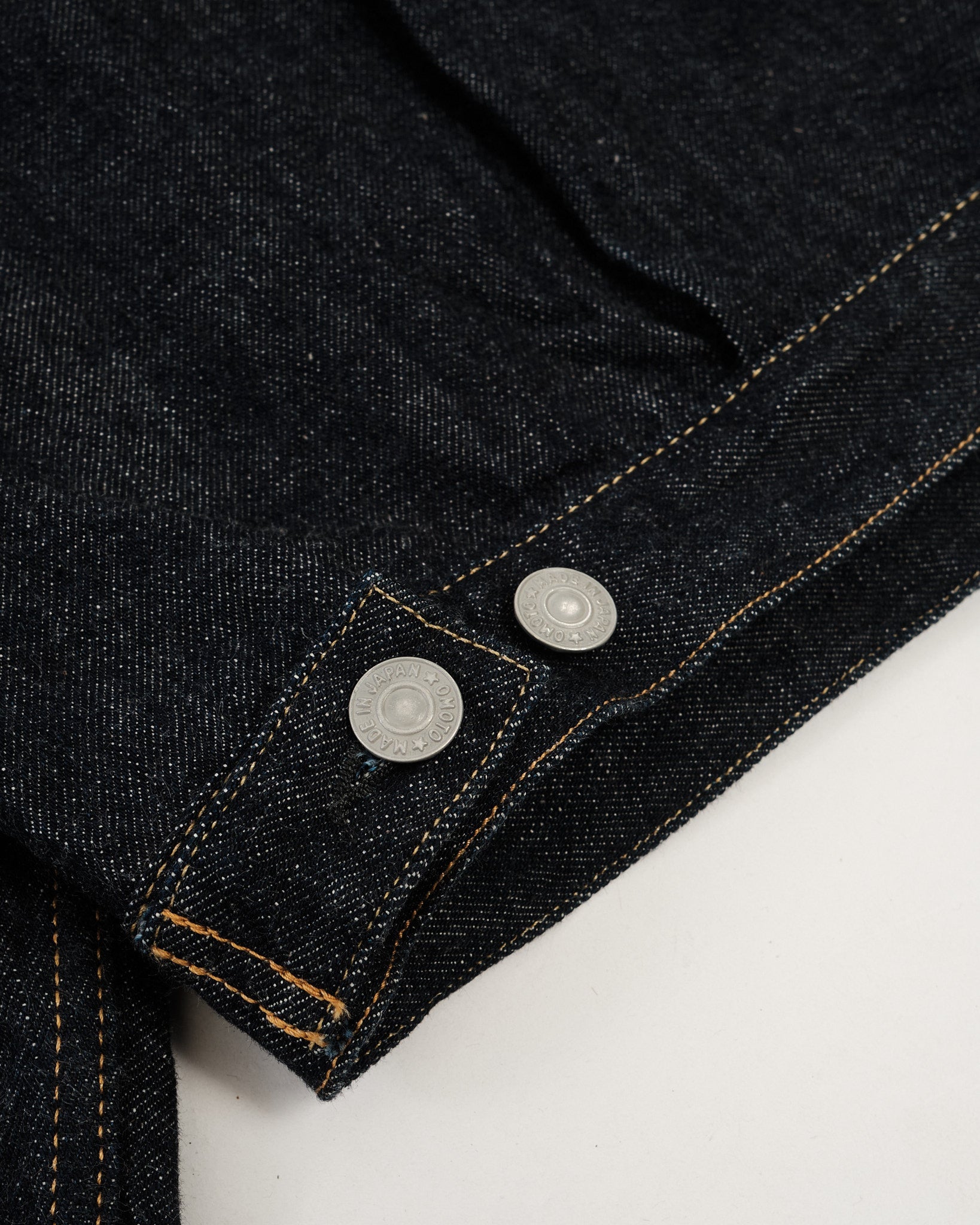 Cortada de mezclilla de 13.5oz tejida en Japón, la tela combina un 65% de algodón de Memphis por su firmeza con un 35% de algodón de Zimbabue por su suavidad y resistencia. Teñida en cuerda con índigo 100% puro, los hilos revelan un núcleo blanco crujiente a medida que envejecen, creando hermosos desvanecimientos con el tiempo. Utilizando un telar de lanzadera Sakamoto de los años 50 modificado, la tela se teje a baja tensión, dándole a la tela una textura robusta que evoluciona de manera única con el uso. Terminada con un tratamiento de un lavado, está lista para adaptarse mientras retiene su carácter natural de algodón.