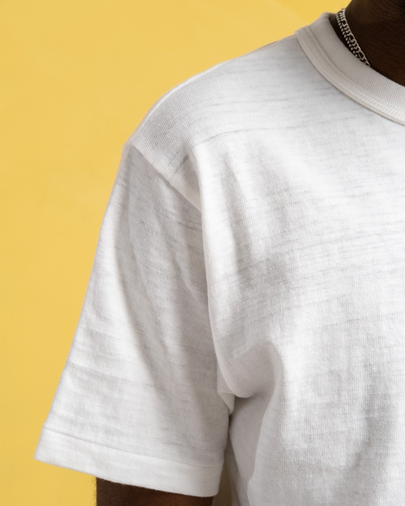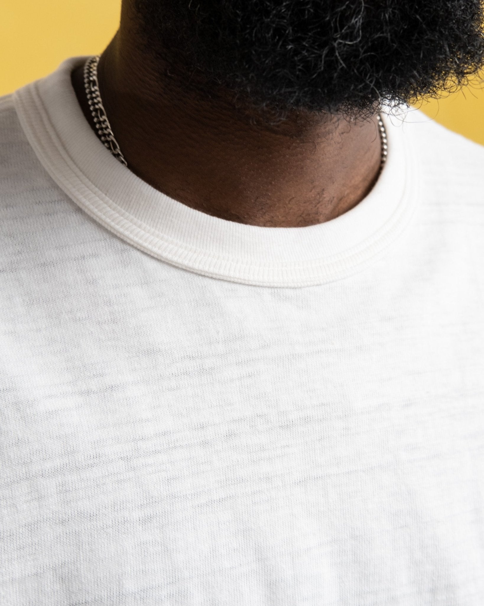4601 Camiseta Lisa Off White de Warehouse & CO. Super suave y cómoda camiseta de algodón de manga corta. Tejido tubular lo que significa que no hay costuras laterales para mayor comodidad. Fabricada en Japón.