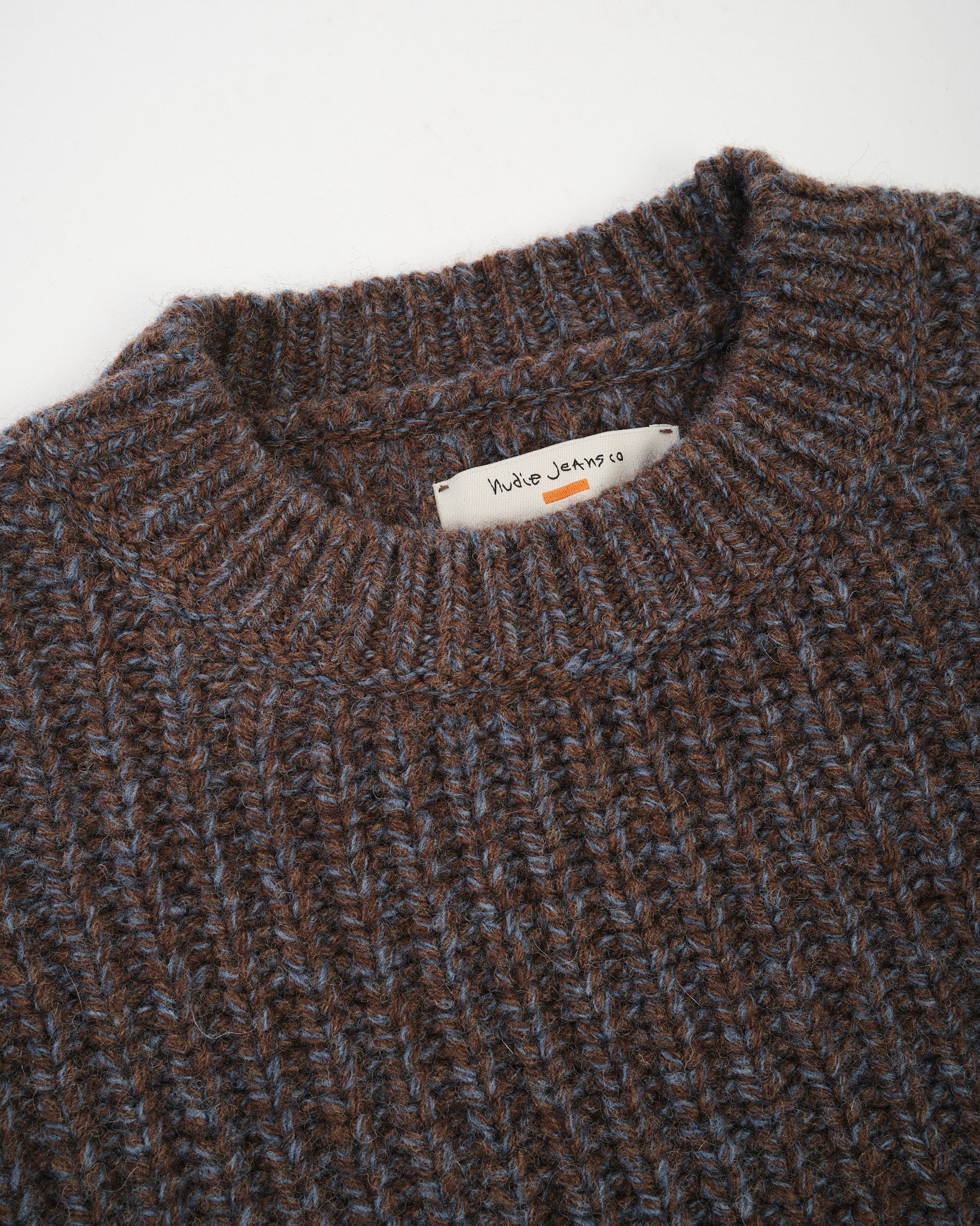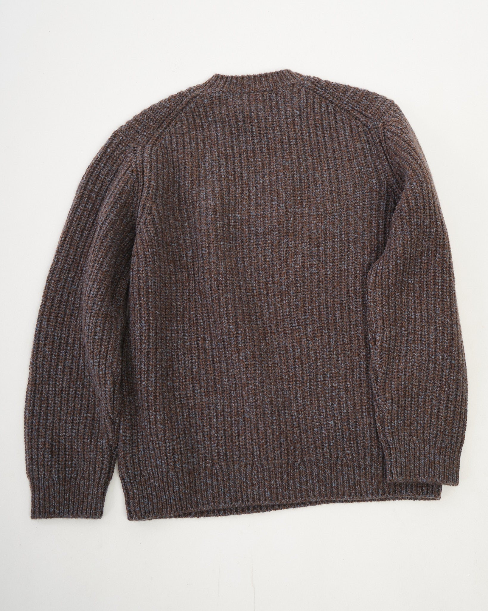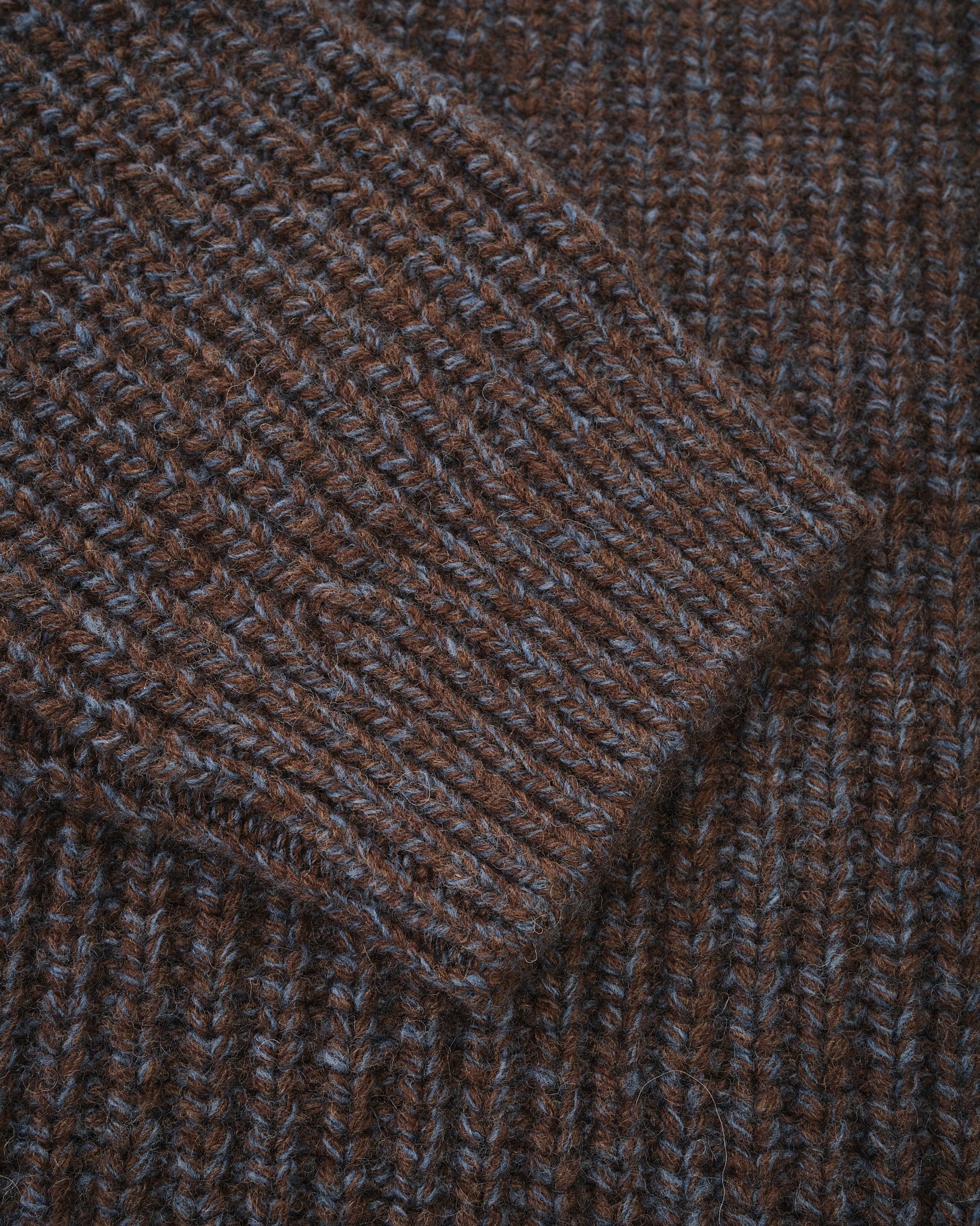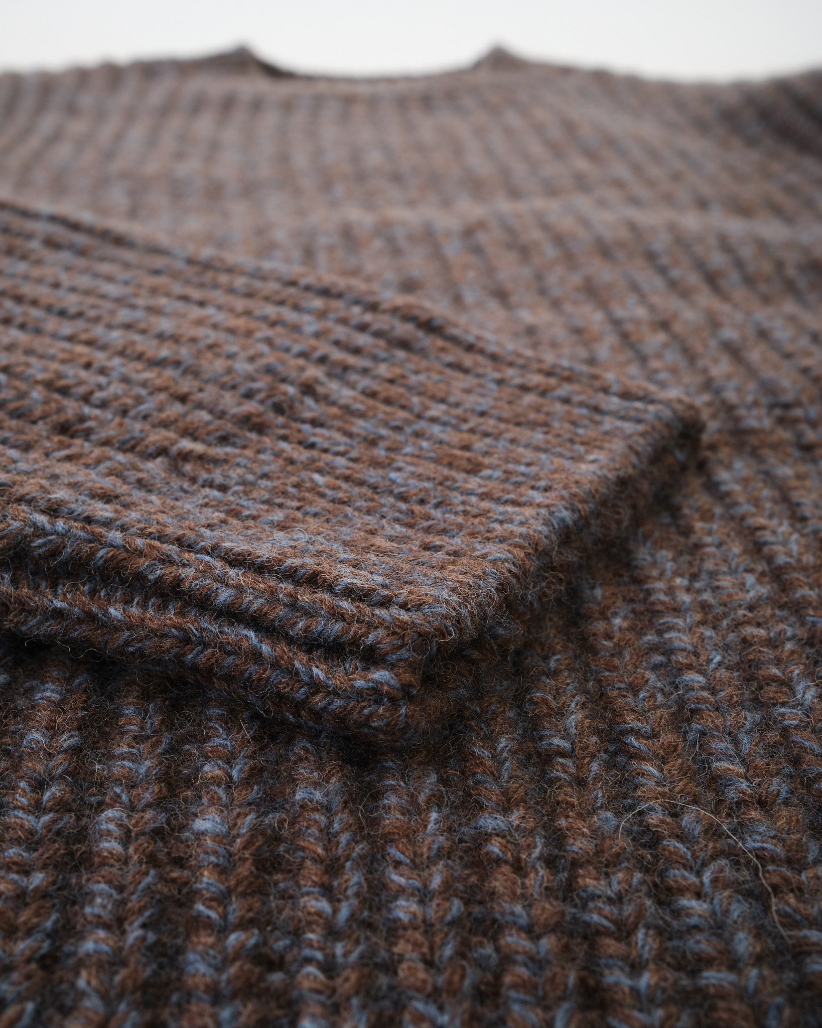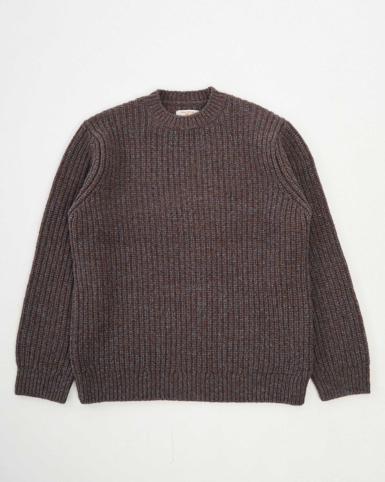 The August Chunky Crew Neck Knit in Brown brings serious heft in the best way. Crafted from thick, soft organic wool, this sweater is all about volume and warmth. It’s knitted in a traditional fisherman’s rib stitch that creates a deeply textured fabric with cozy loft. Fully fashioned and regular in fit, August is the kind of knit that feels both rugged and refined — whether you’re layering up or making it the main event.