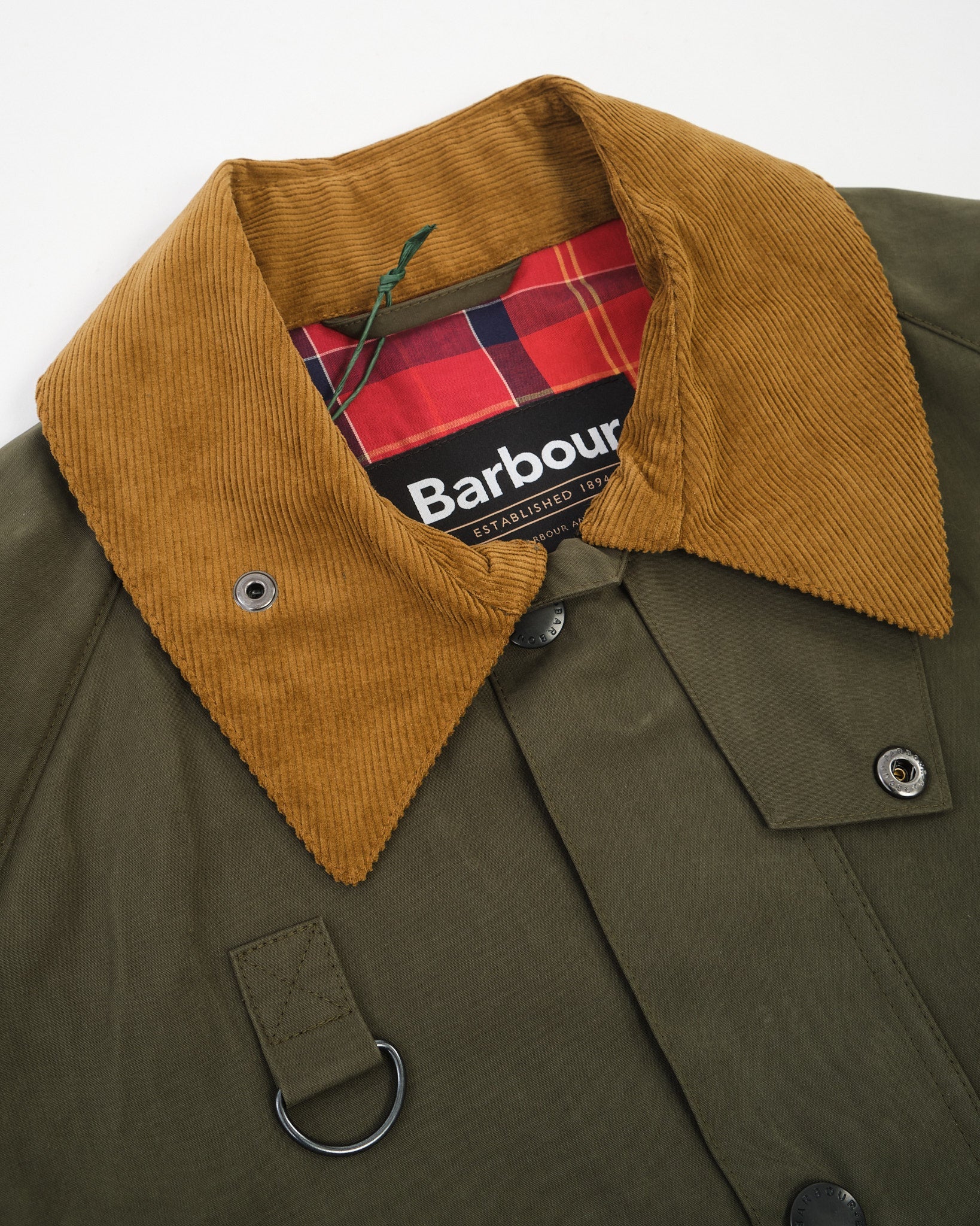 La Chaqueta Casual Barbour Solar Spey en Sage es una reinterpretación de edición limitada del clásico silueta Spey, lanzada en celebración del Año Nuevo Lunar. Confeccionada con la tela de algodón encerado característica de Barbour, ofrece una capa exterior ligera y resistente al clima con un acabado nítido. El interior presenta una audaz versión roja del icónico forro tartán de Barbour, simbolizando buena fortuna en la cultura china. Los detalles de diseño incluyen un cuello de pana con correa para la garganta, dos grandes bolsillos delanteros con solapa, un cierre frontal con cremallera con tapeta de tormenta a presión y un cierre superior de tachuela roja acompañado de un pin de Barbour Año Nuevo Lunar. Esta chaqueta combina diseño heredado con detalles festivos, convirtiéndola en una pieza destacada para la temporada.