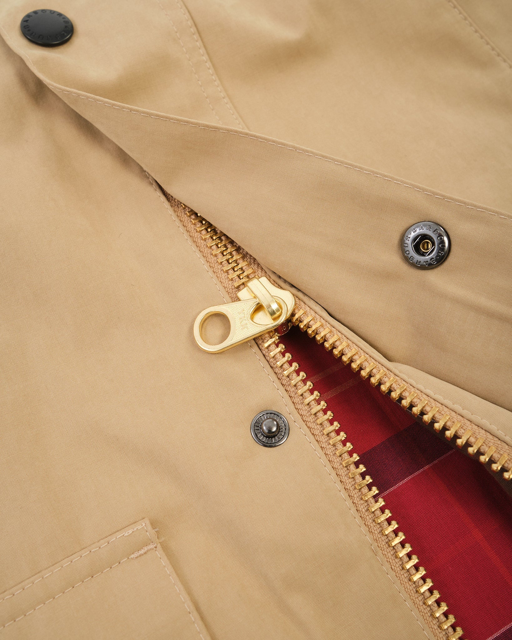 • Cierre superior con botón a presión rojo con insignia de Barbour Año Nuevo Lunar