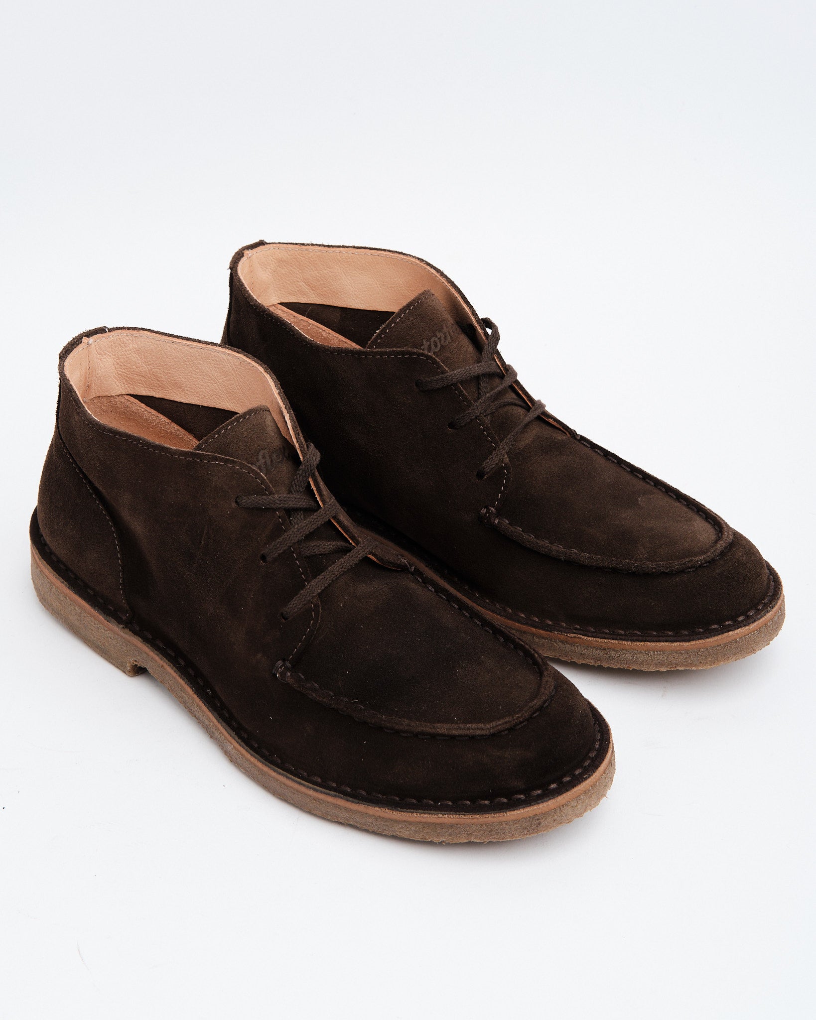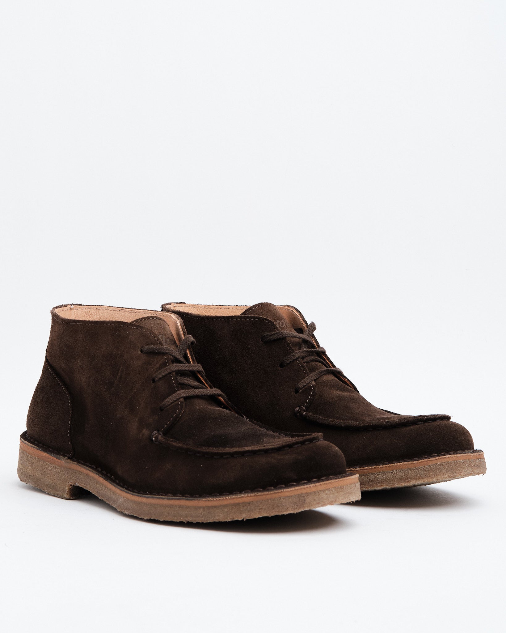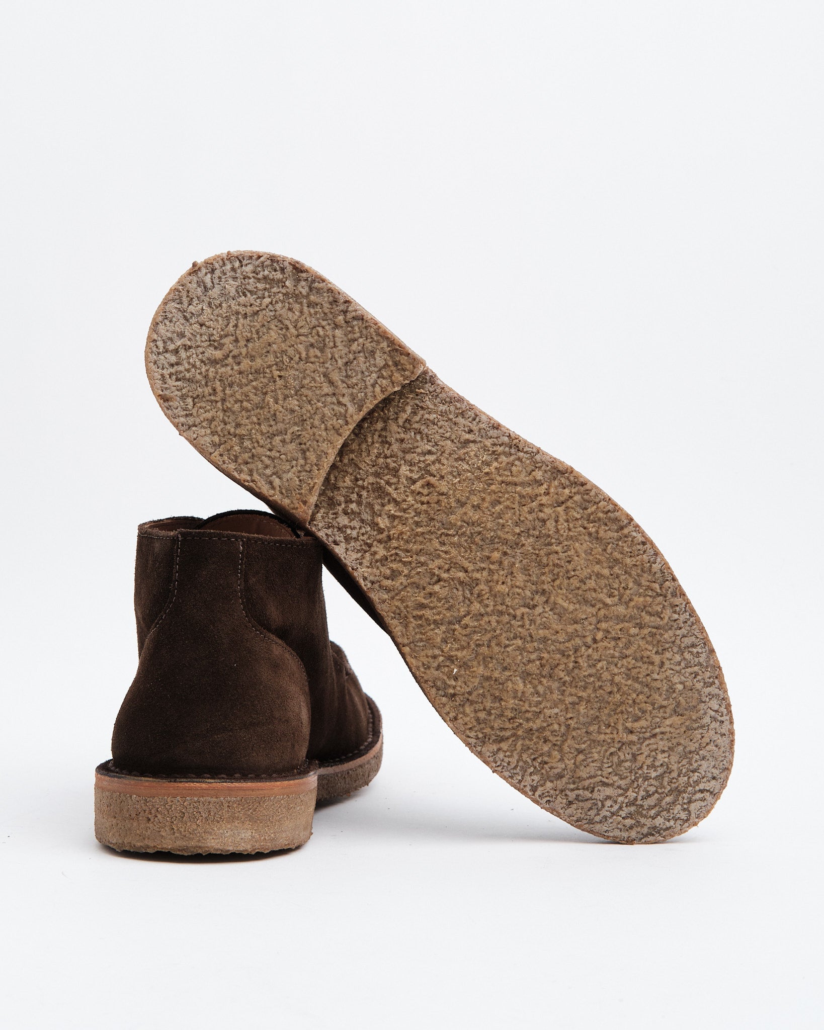 Bota Chukka Dukeflex Castaño Oscuro de Astorflex. Zapatos italianos de alta calidad con la suela de crepé distintiva de Astorflex. ¡Estos zapatos se han fabricado en el mismo lugar en Mantova desde 1820! La artesanía italiana en su máxima expresión y súper cómodos desde el principio. Hecho en Italia.