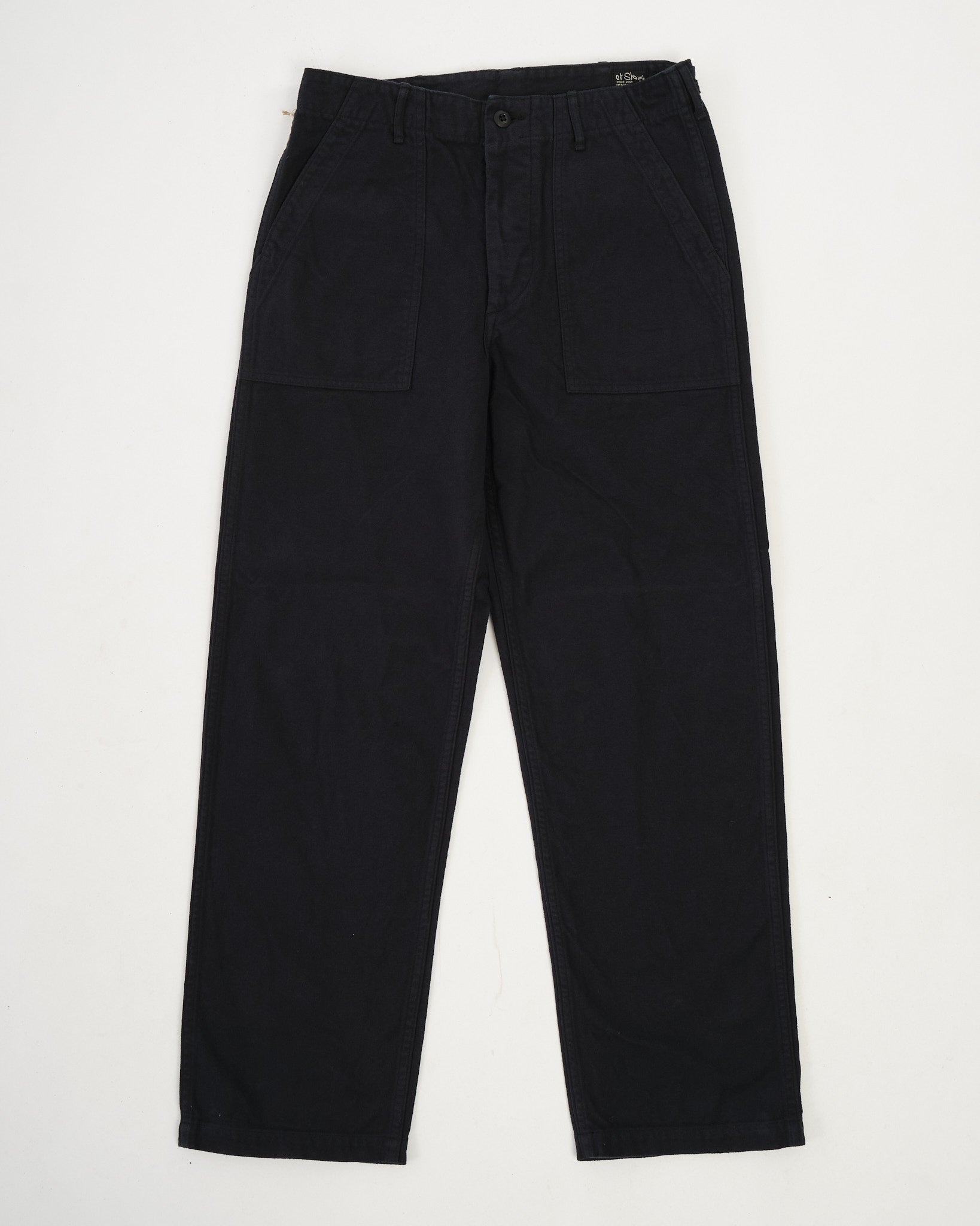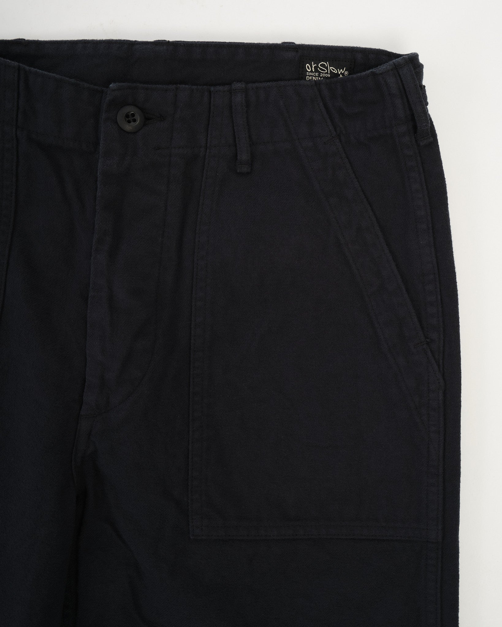 Los pantalones de franela cepillada Fatigue de orSlow le dan al clásico estilo del Ejército de EE. UU. un giro más suave y acogedor. Hechos en Japón de franela de algodón de color azul marino oscuro, la tela es cepillada para una sensación cálida y cómoda que es perfecta para los meses más fríos. El diseño mantiene intactos los icónicos detalles de fatiga: grandes bolsillos delanteros de parche, lengüetas ajustables con botón en la cintura y proporciones de pierna recta. Combinando la herencia militar con la facilidad de uso diario, estos pantalones son fáciles de combinar con tejidos, camisas o ropa de abrigo cuando baja la temperatura.