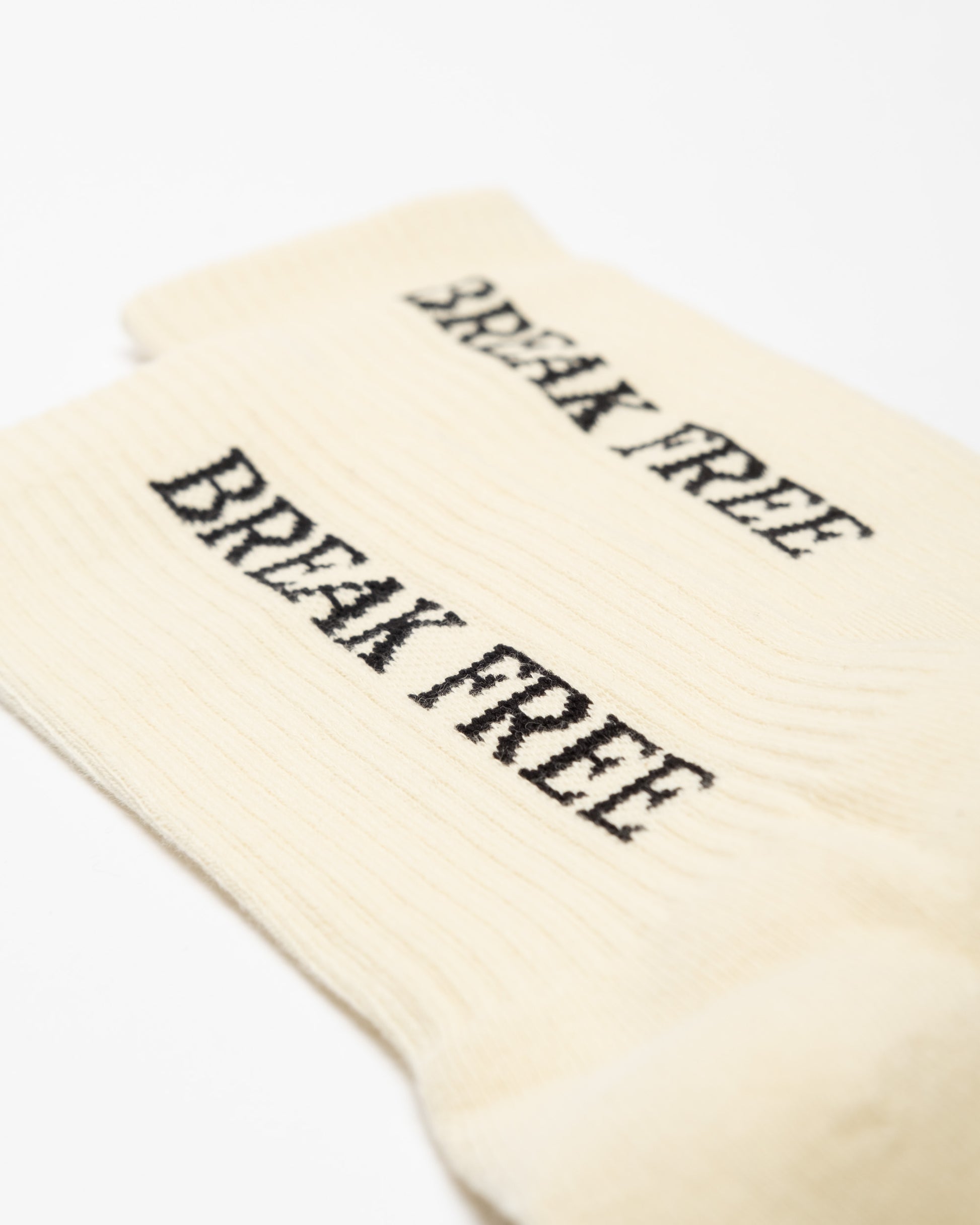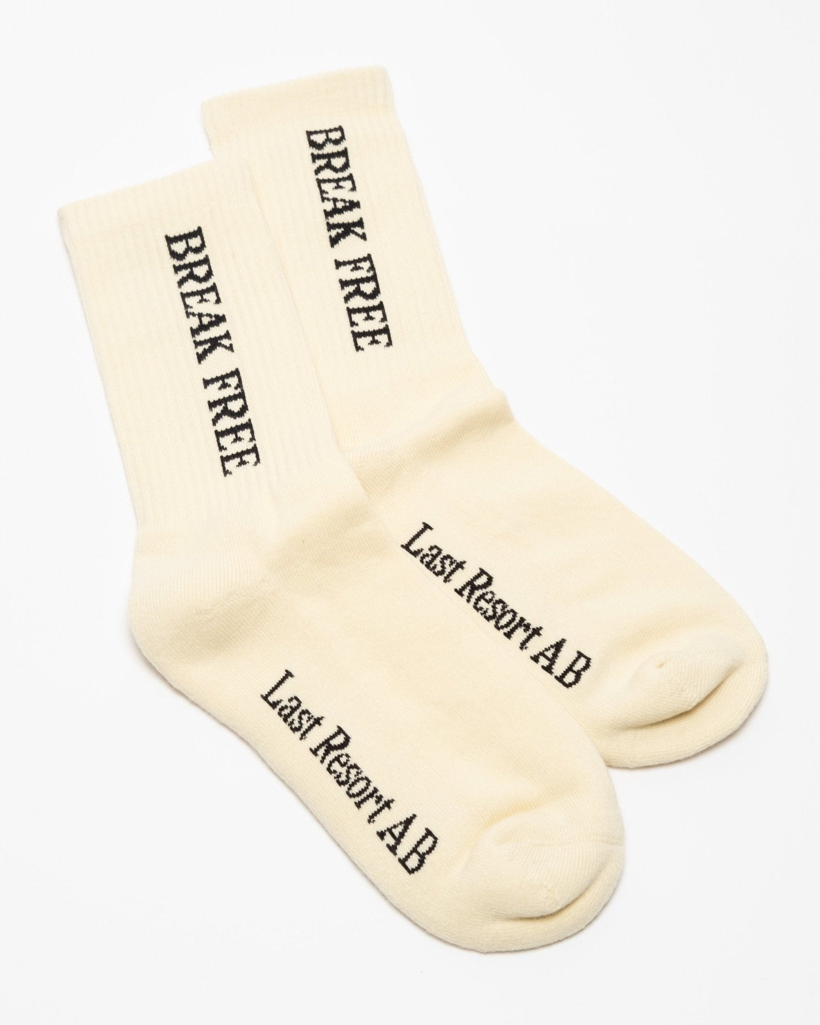 Calcetines Break Free 1 paquete Blanco Crema de Last Resort AB. Calcetines gruesos con logo bordado. 85% algodón, 10% poliéster y 5% spandex. Hechos en Vietnam.