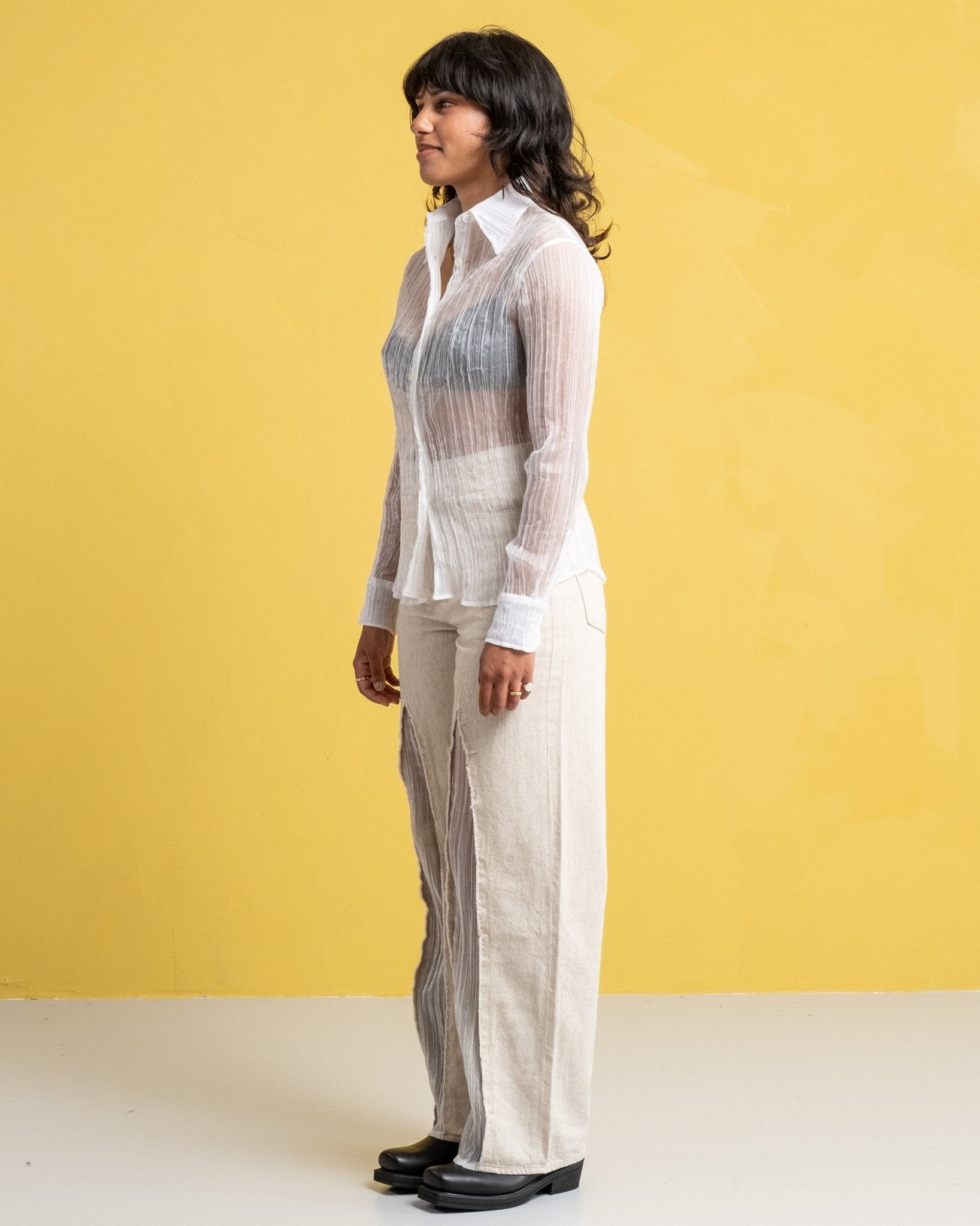 70s Line Shirt Milky Quartz Pleat