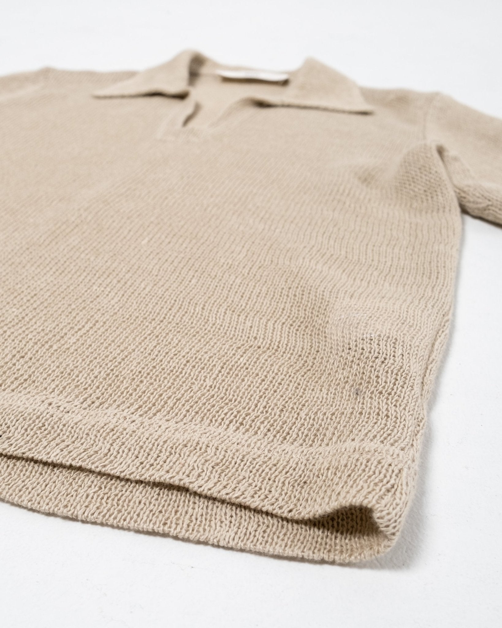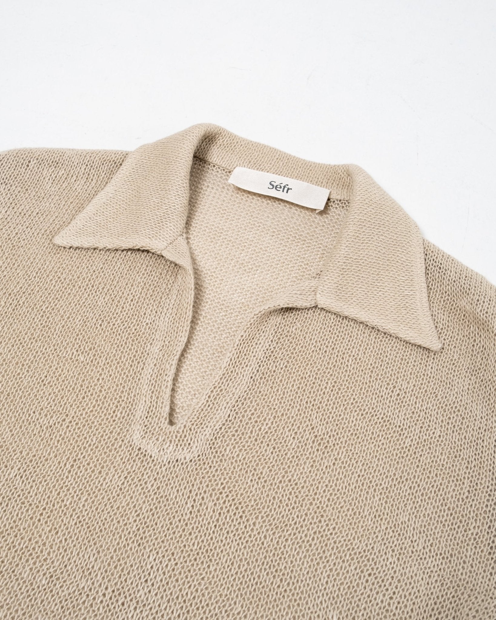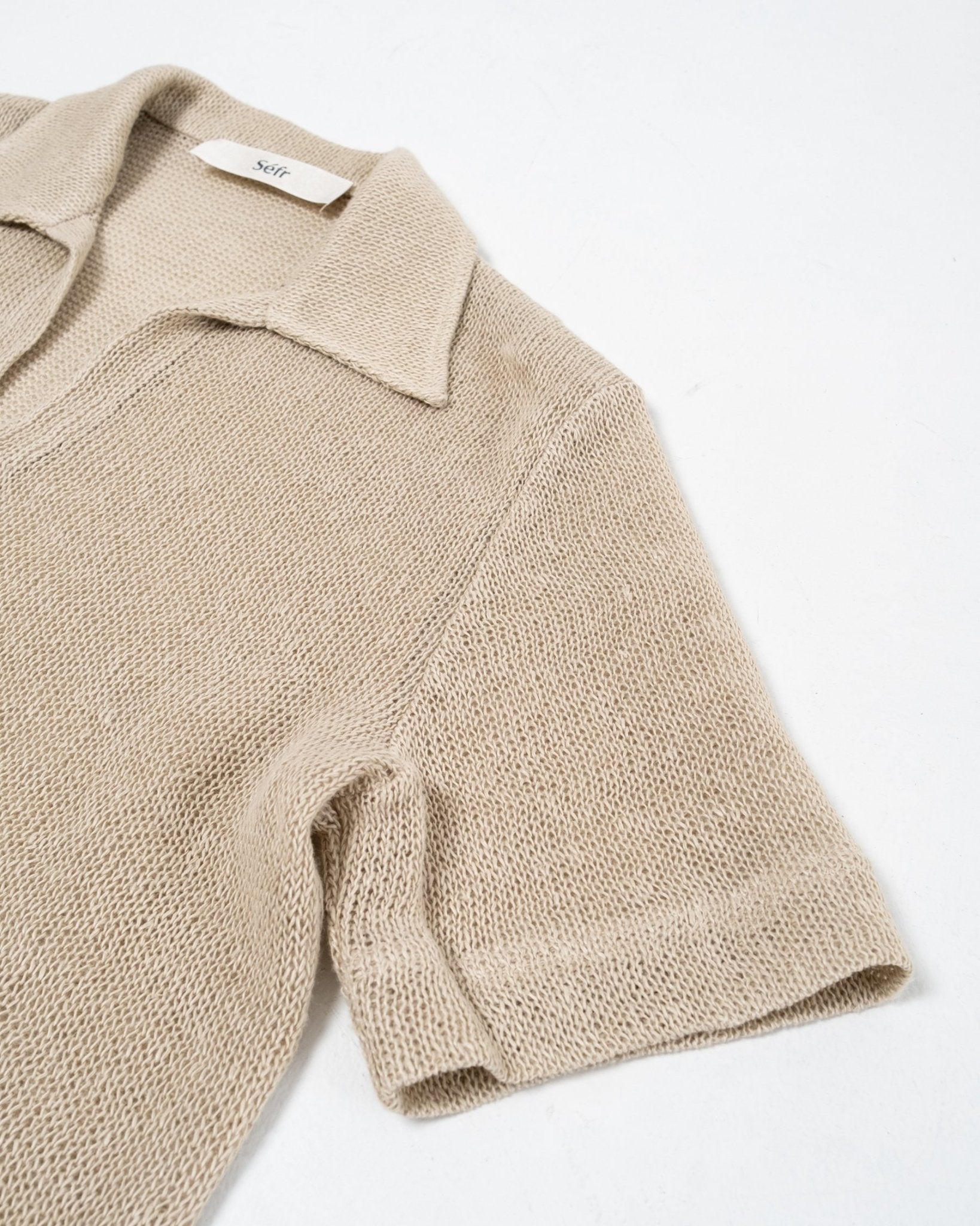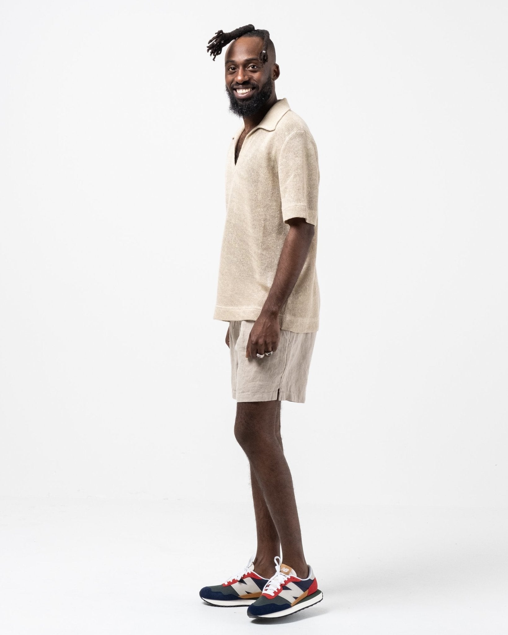 Camisa Mate SS en color beige avena de Séfr. Camisa de manga corta con cuello amplio. Ajuste relajado con dobladillo recto. 100% lino. Hecha en Letonia.