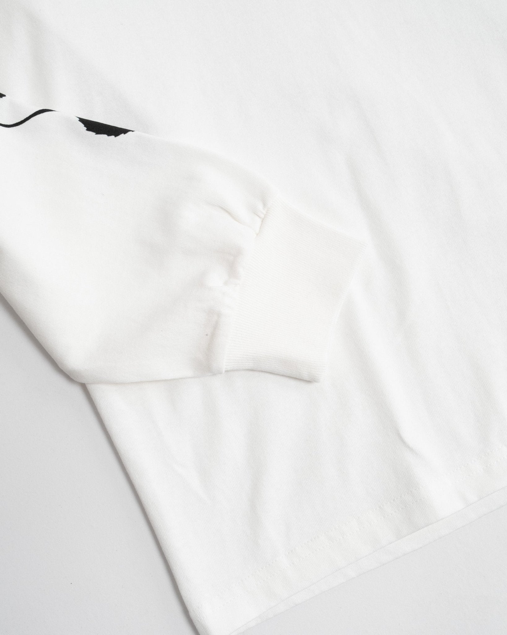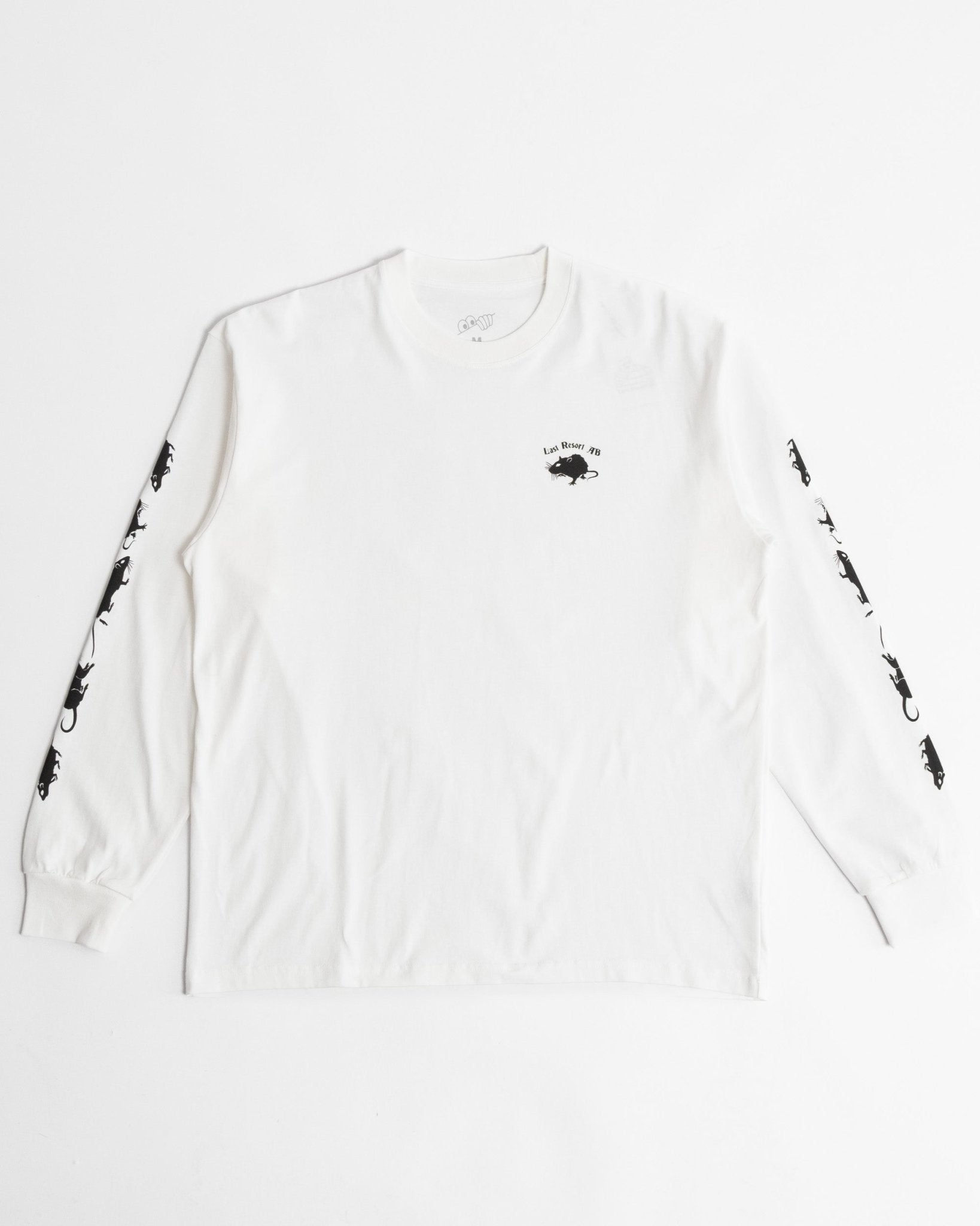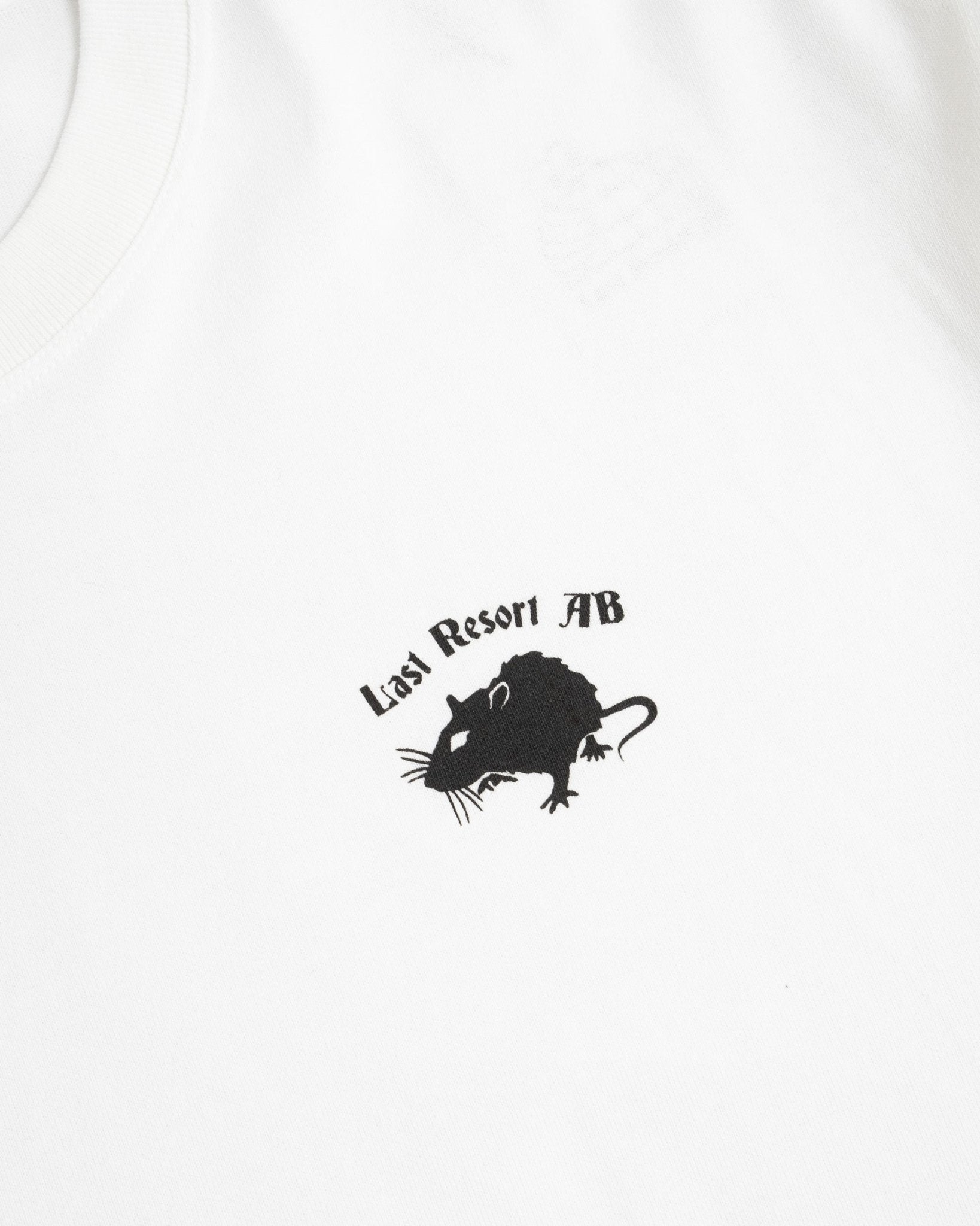 Rat Race LS Tee White de Last Resort AB. Camiseta de manga larga de ajuste regular hecha de una tela de jersey de 210 gsm. Brazos impresos y logo discreto en el pecho. 100% algodón. Hecho en Portugal.
