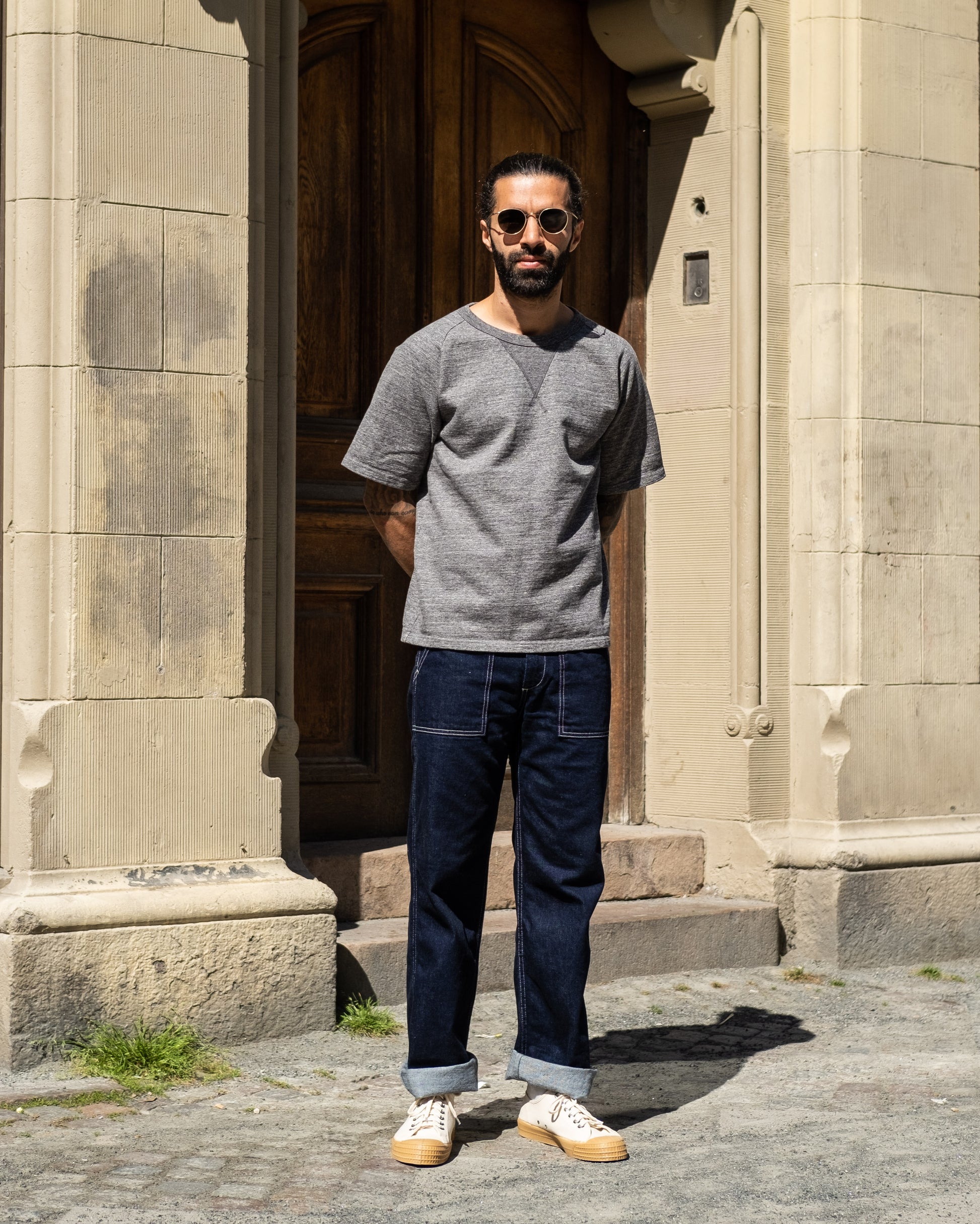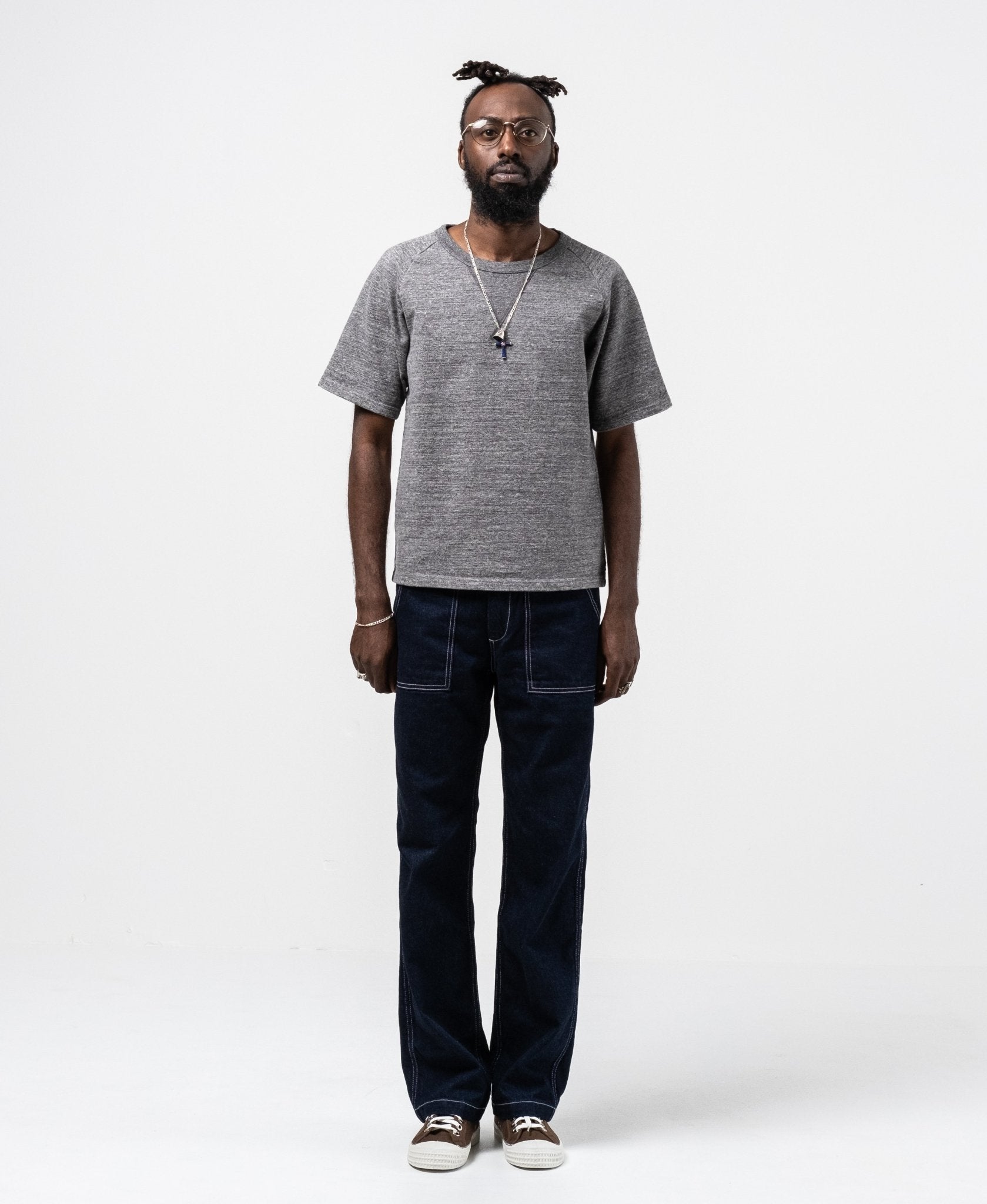 Camiseta de sudadera Raglan de 16.5 Oz en color carbón de Japan Blue Jeans. Creada usando técnicas de tejido vintage y complejas. Hecho en Japón.