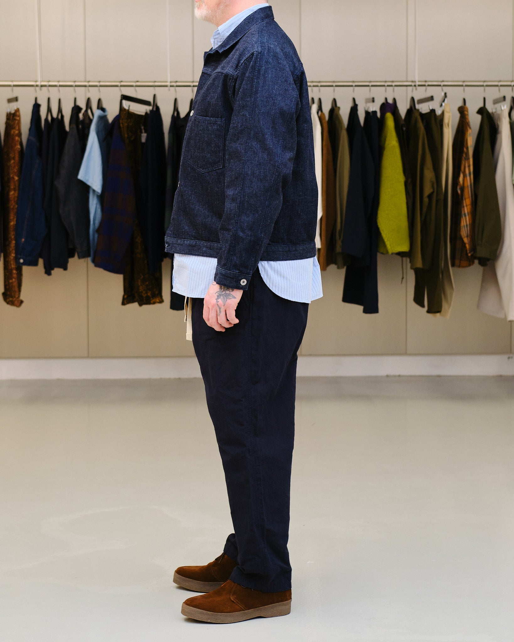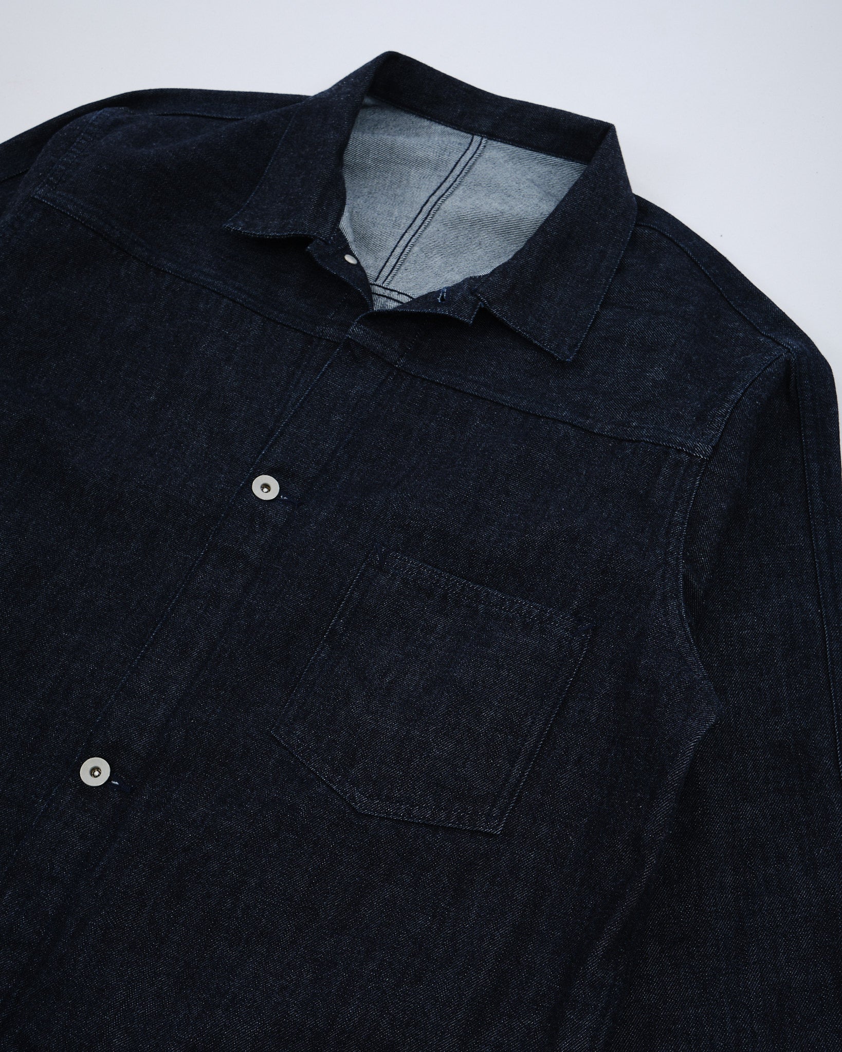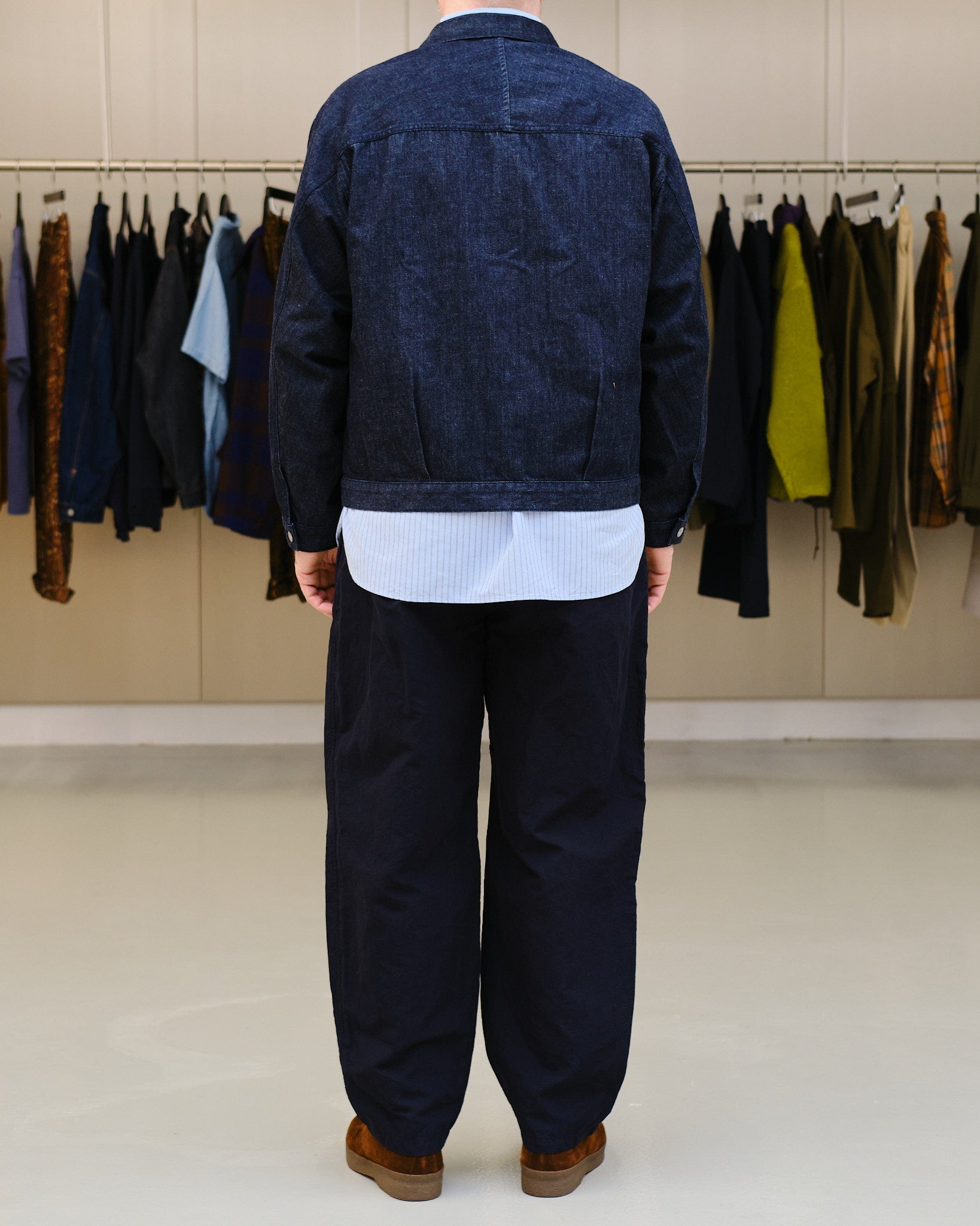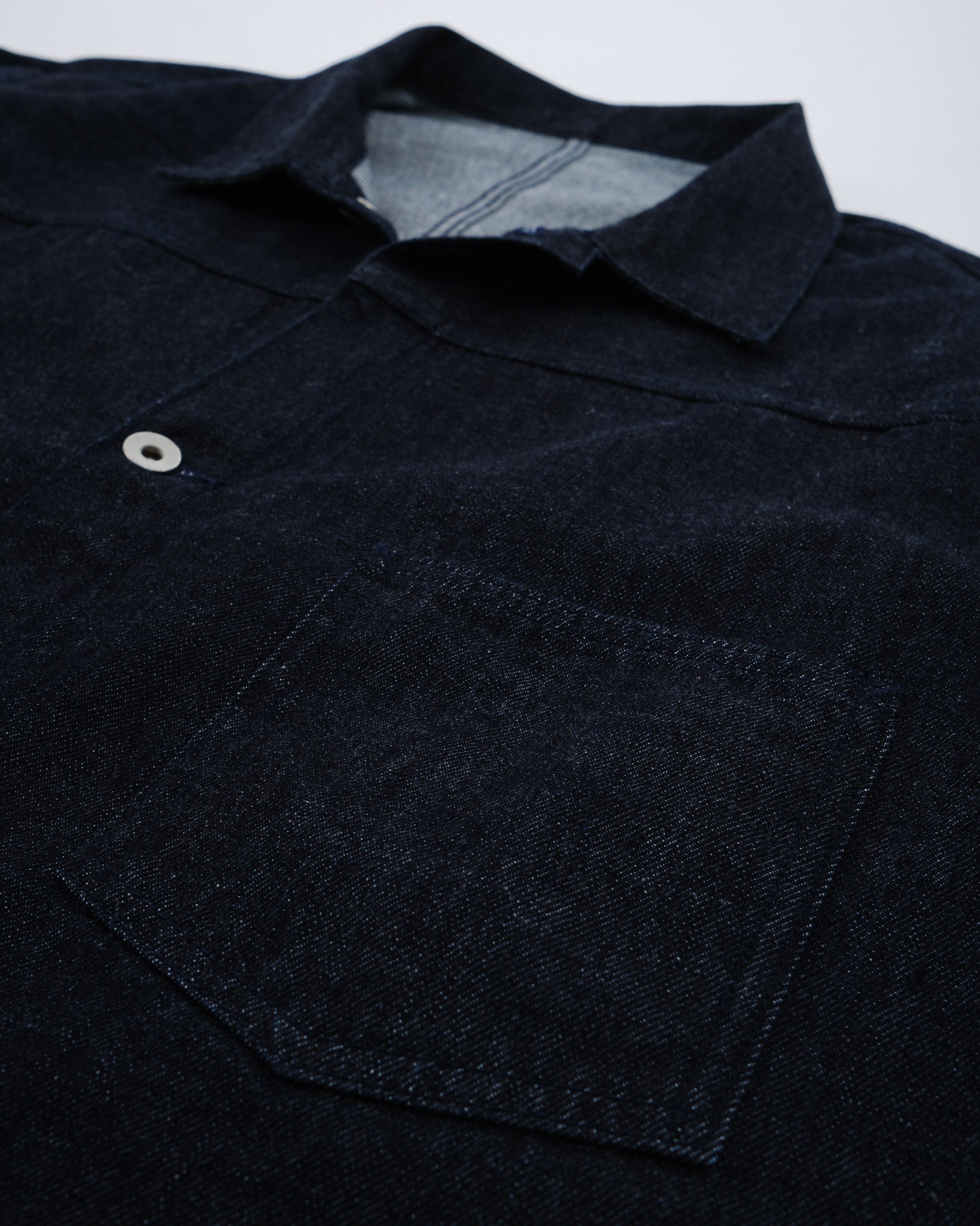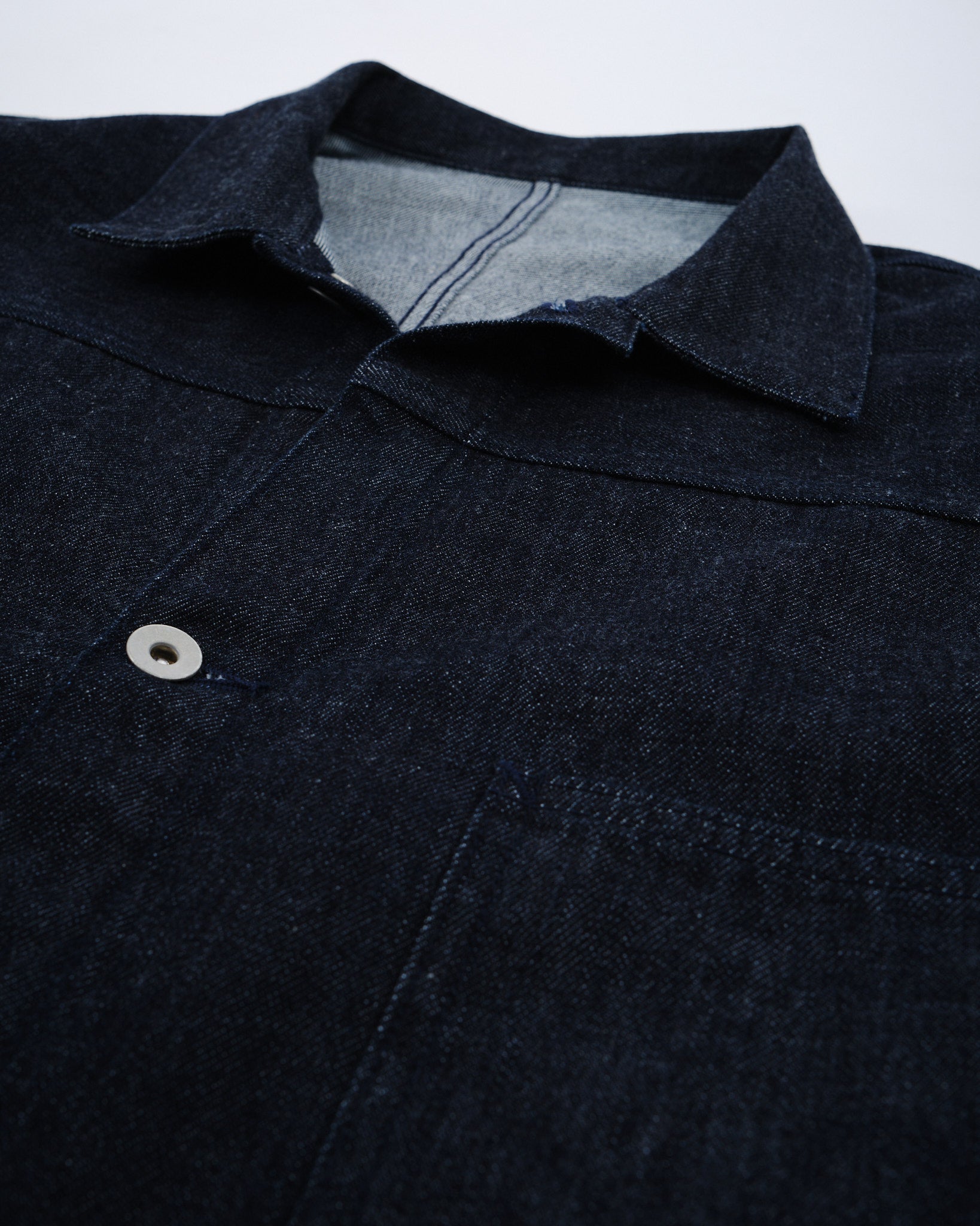 Inspirada en las chaquetas de mezclilla vintage de los años 1940 con un diseño simplificado de tiempo de guerra.