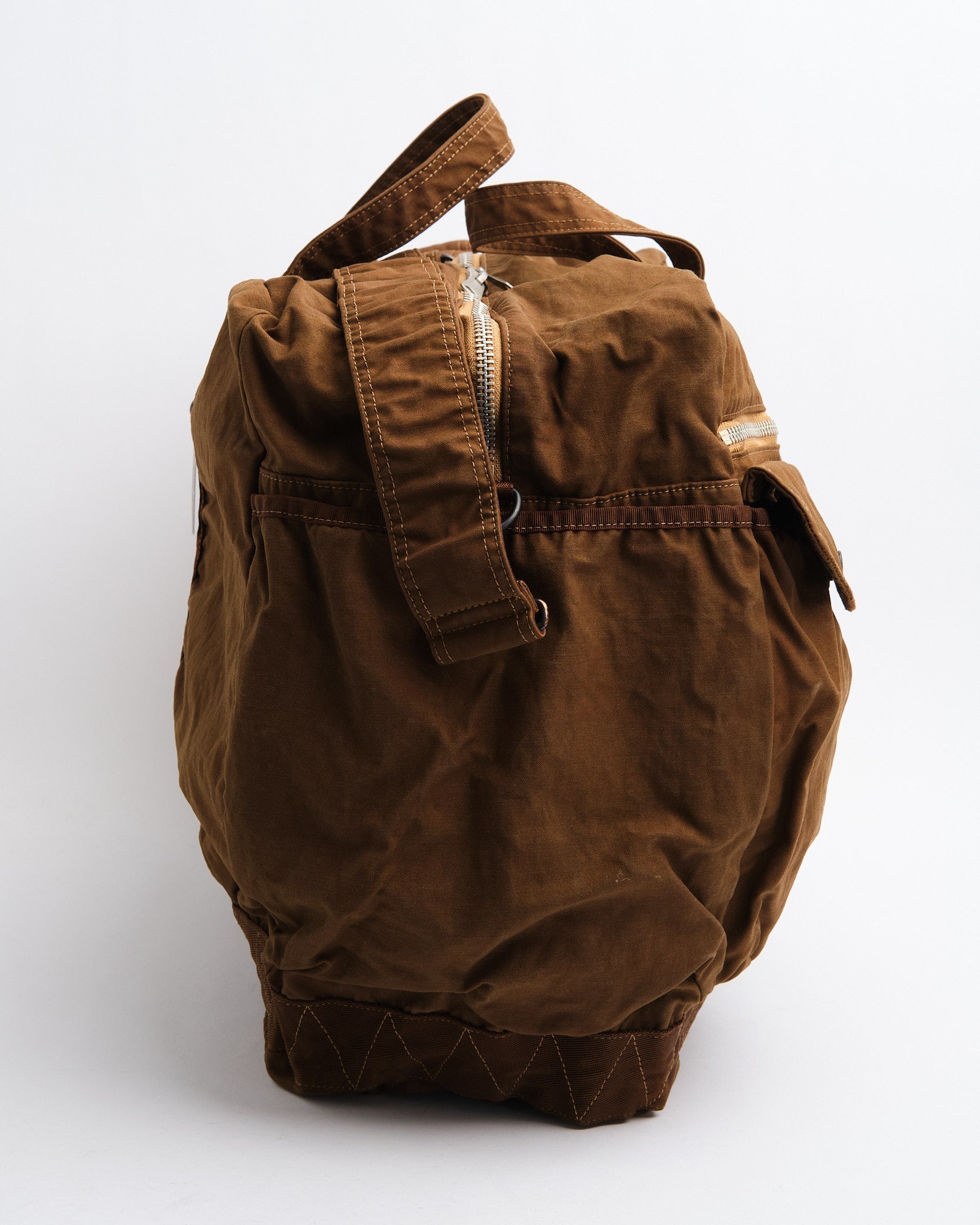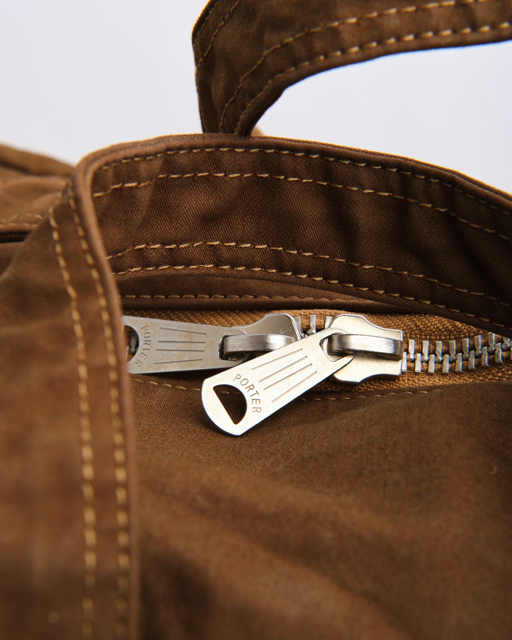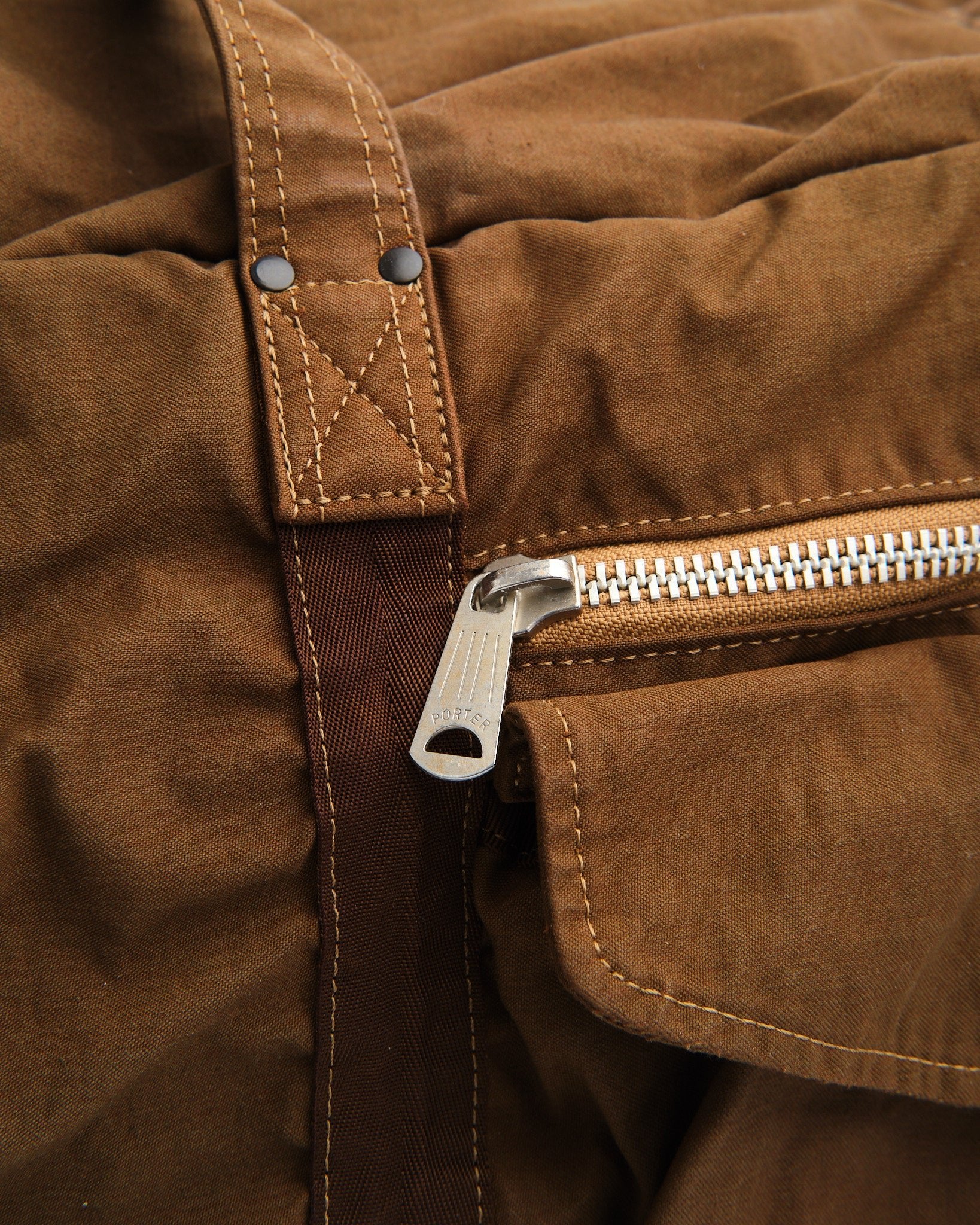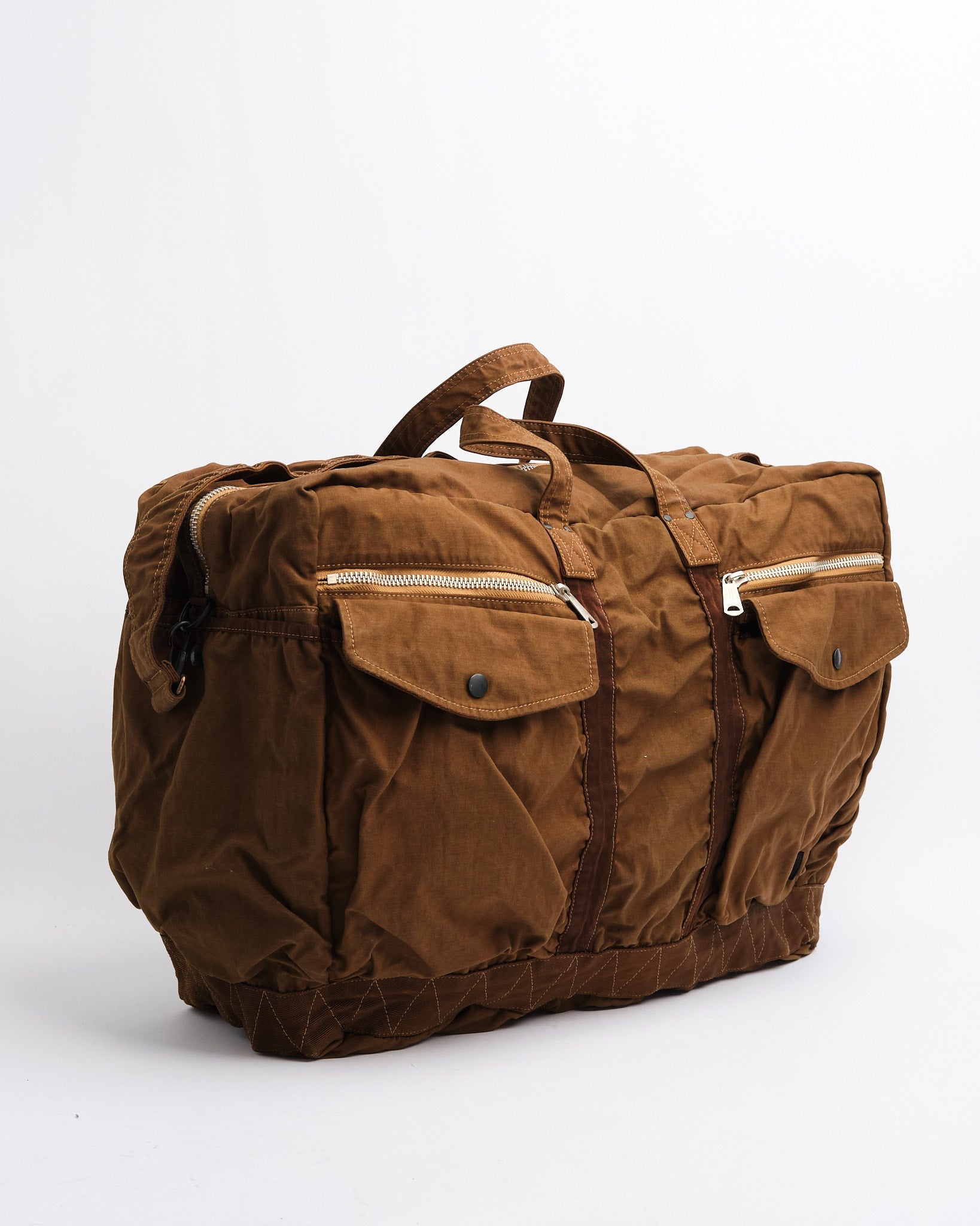 El PORTER BY YOSHIDA Bolso Boston 2-Vías Crag (L) en Coyote es parte de la serie PORTER CRAG, conocida por su única técnica de teñido de productos que crea un color profundo y rico, mejorando la textura de la tela. Hecho de tela de satén de espalda, una mezcla de alta densidad de nylon y algodón, el bolso ha sido teñido usando el proceso de teñido en dos baños, que produce tonos vibrantes y multidimensionales. La técnica de teñido también imparte diferencias sutiles en color, arruga y encogimiento, dando a cada bolso un aspecto y sensación distintivos.