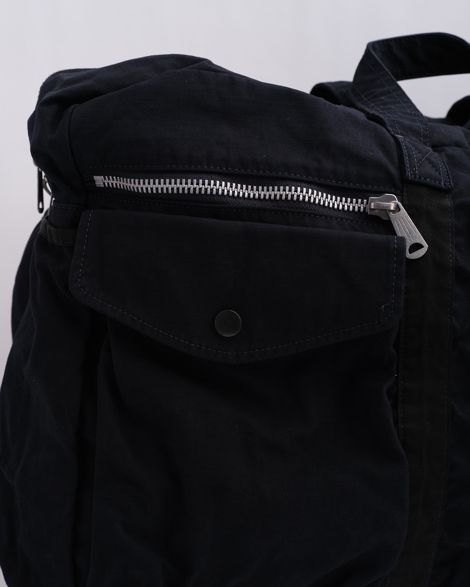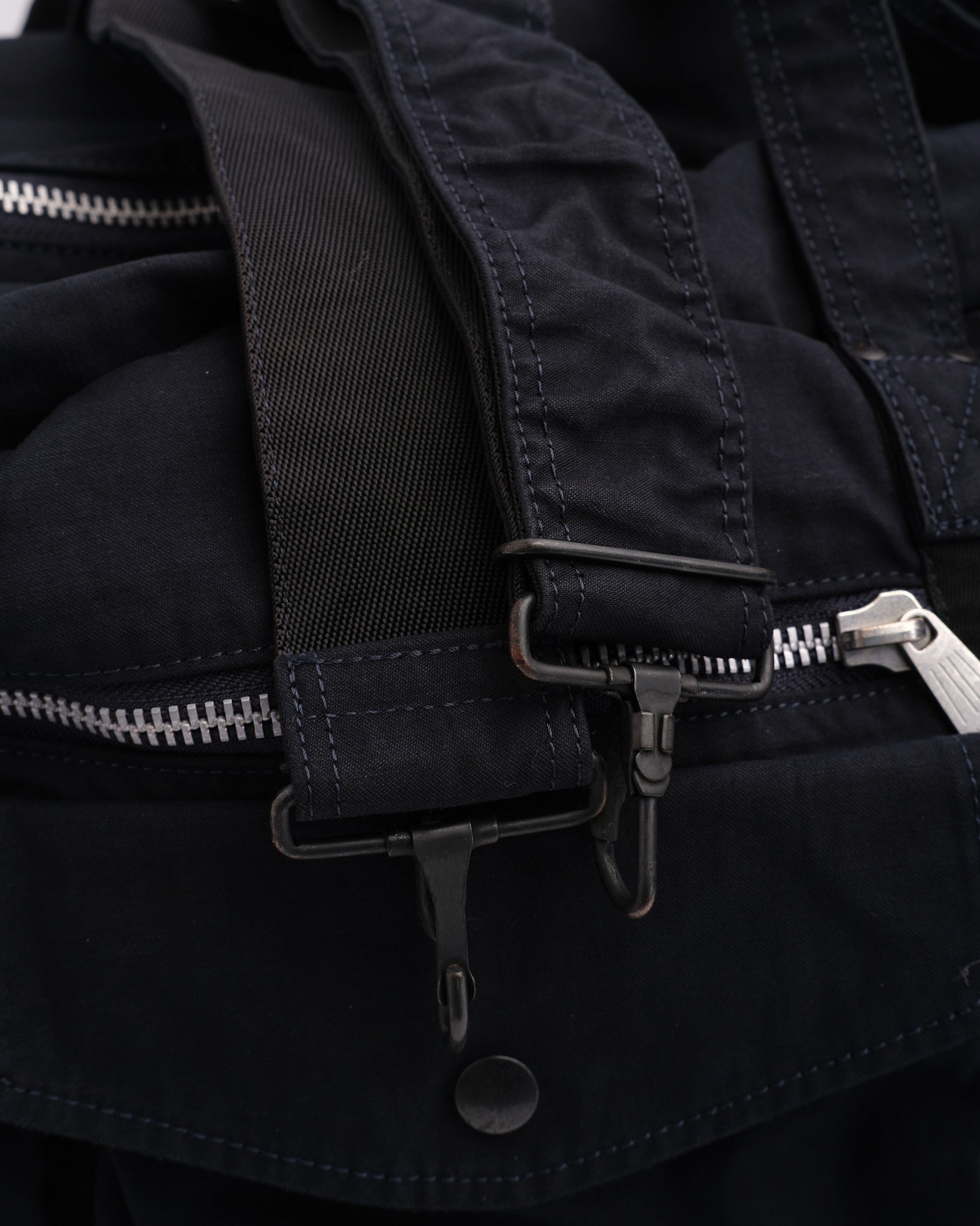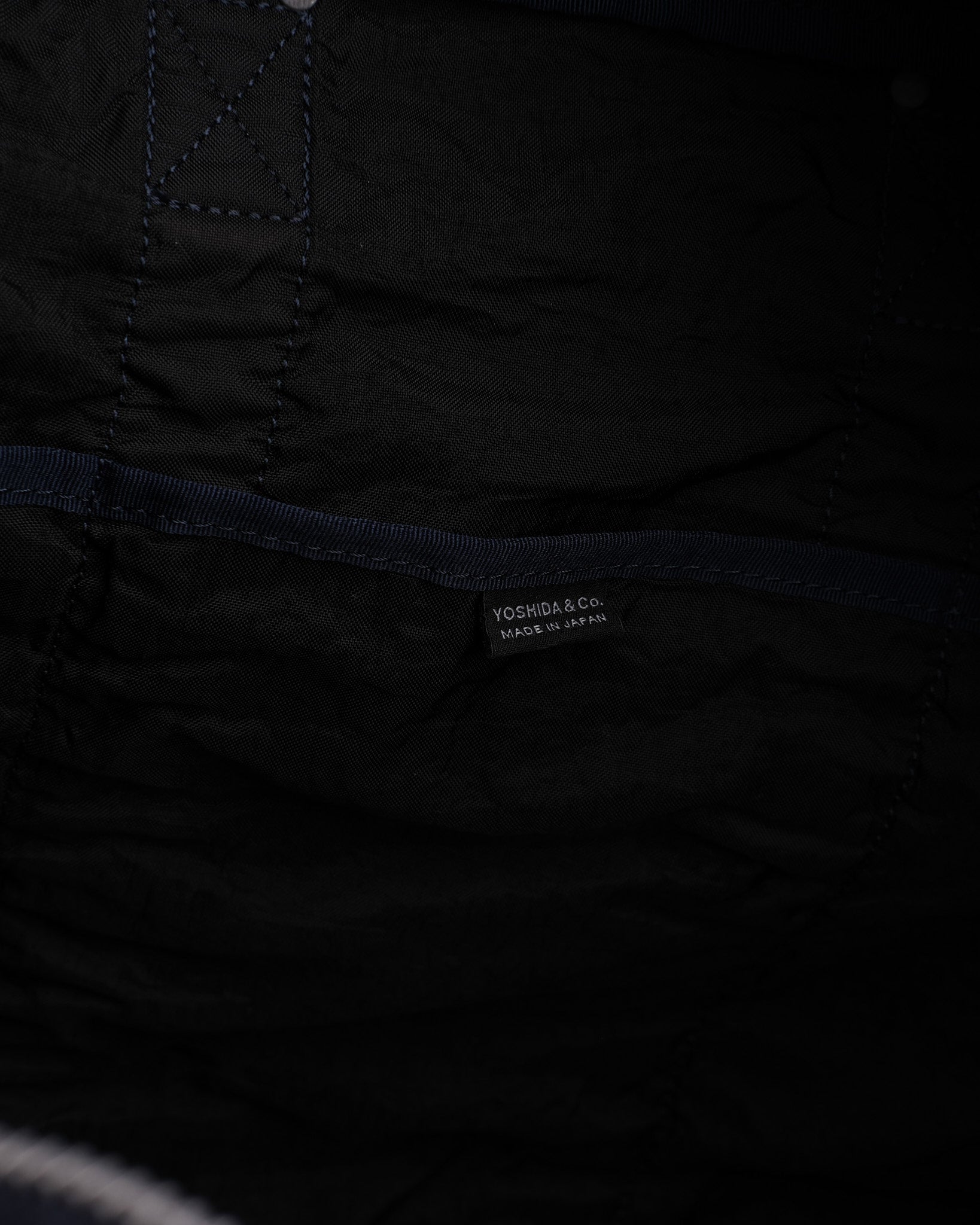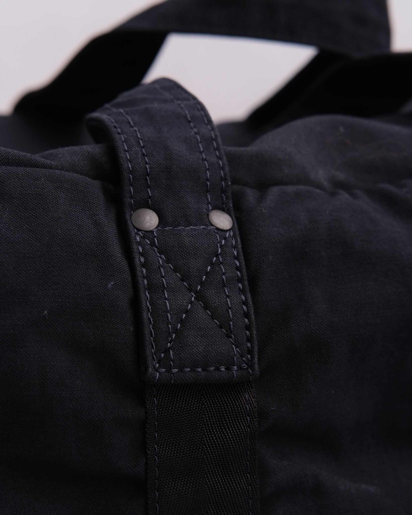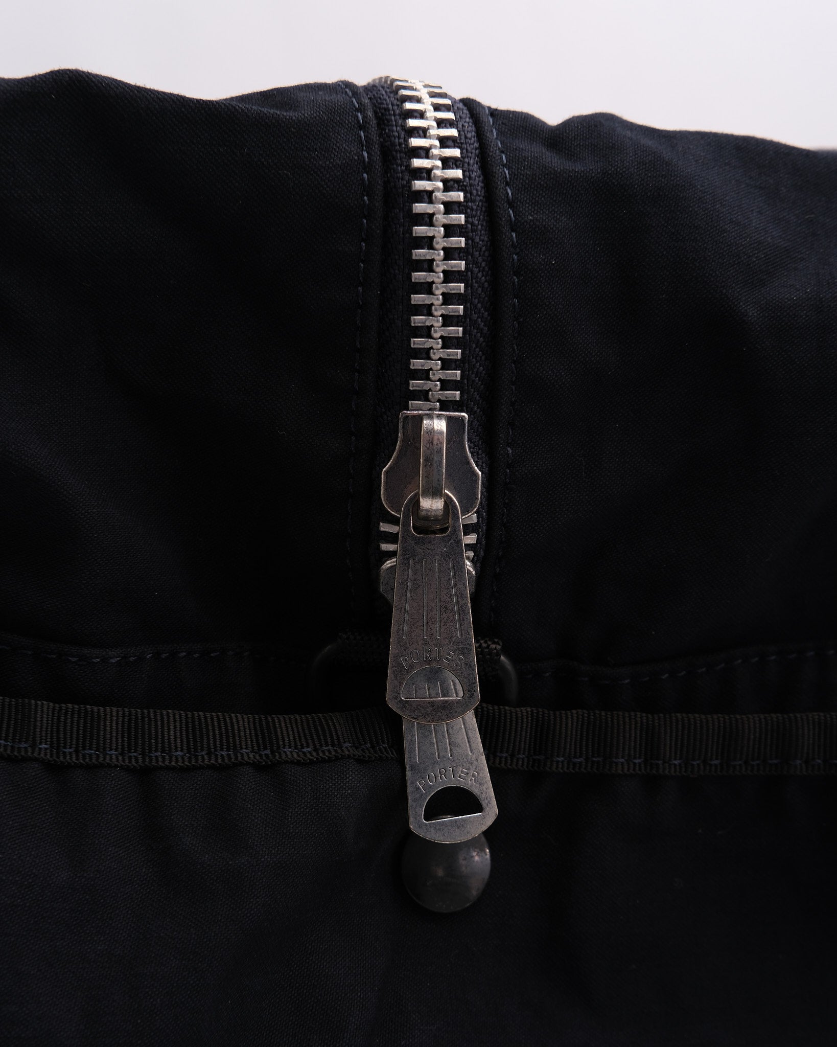 El Bolso Boston 2-Way PORTER BY YOSHIDA Crag (L) en Azul Marino es parte de la serie PORTER CRAG, conocida por su proceso de teñido de productos que resulta en colores profundos, ricos y una textura distintiva. El bolso está hecho de tela de satén de espalda, una mezcla de alta densidad de nylon y algodón, que proporciona tanto durabilidad como una textura suave y firme. La técnica de teñido en dos baños realza la profundidad del color y crea variaciones sutiles en cada bolso, asegurando que cada pieza sea única.