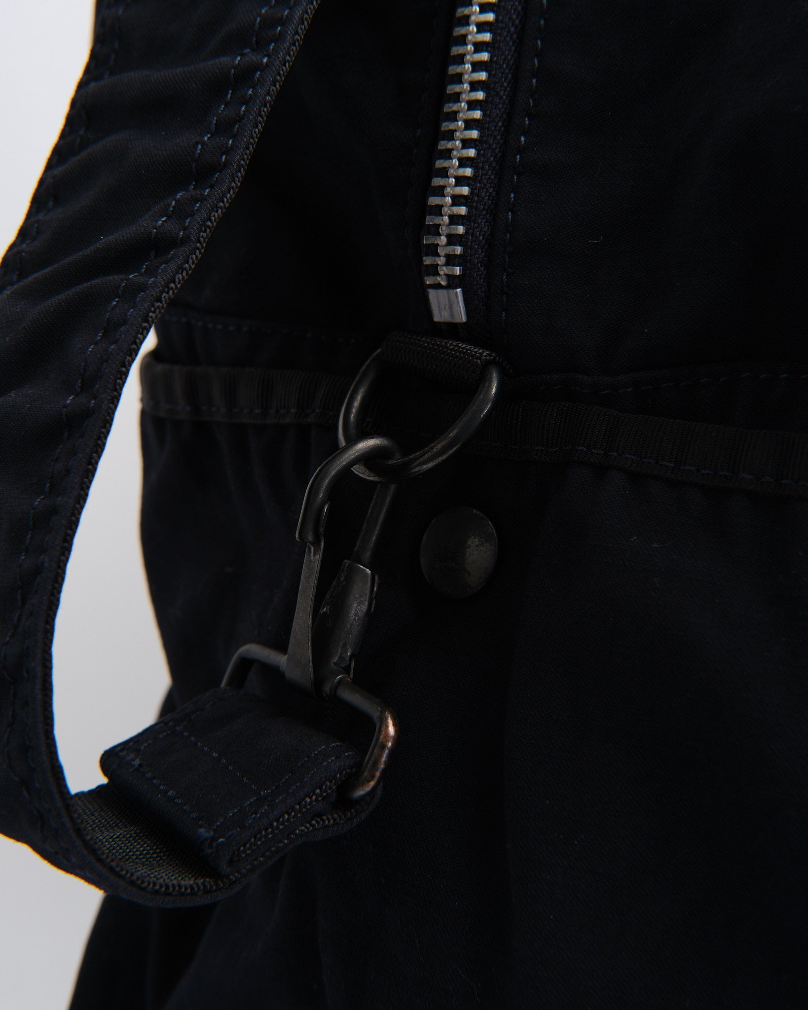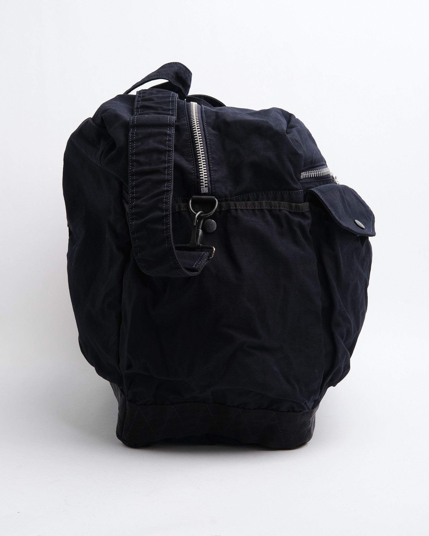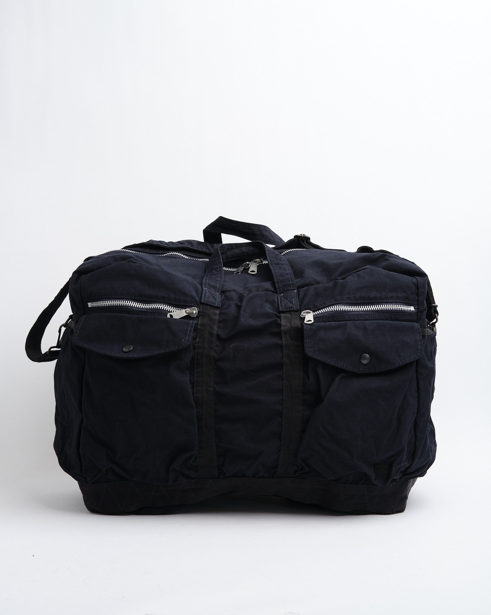El Bolso Boston 2-Way PORTER BY YOSHIDA Crag (L) en Azul Marino es parte de la serie PORTER CRAG, conocida por su proceso de teñido de productos que resulta en colores profundos, ricos y una textura distintiva. El bolso está hecho de tela de satén de espalda, una mezcla de alta densidad de nylon y algodón, que proporciona tanto durabilidad como una textura suave y firme. La técnica de teñido en dos baños realza la profundidad del color y crea variaciones sutiles en cada bolso, asegurando que cada pieza sea única.
