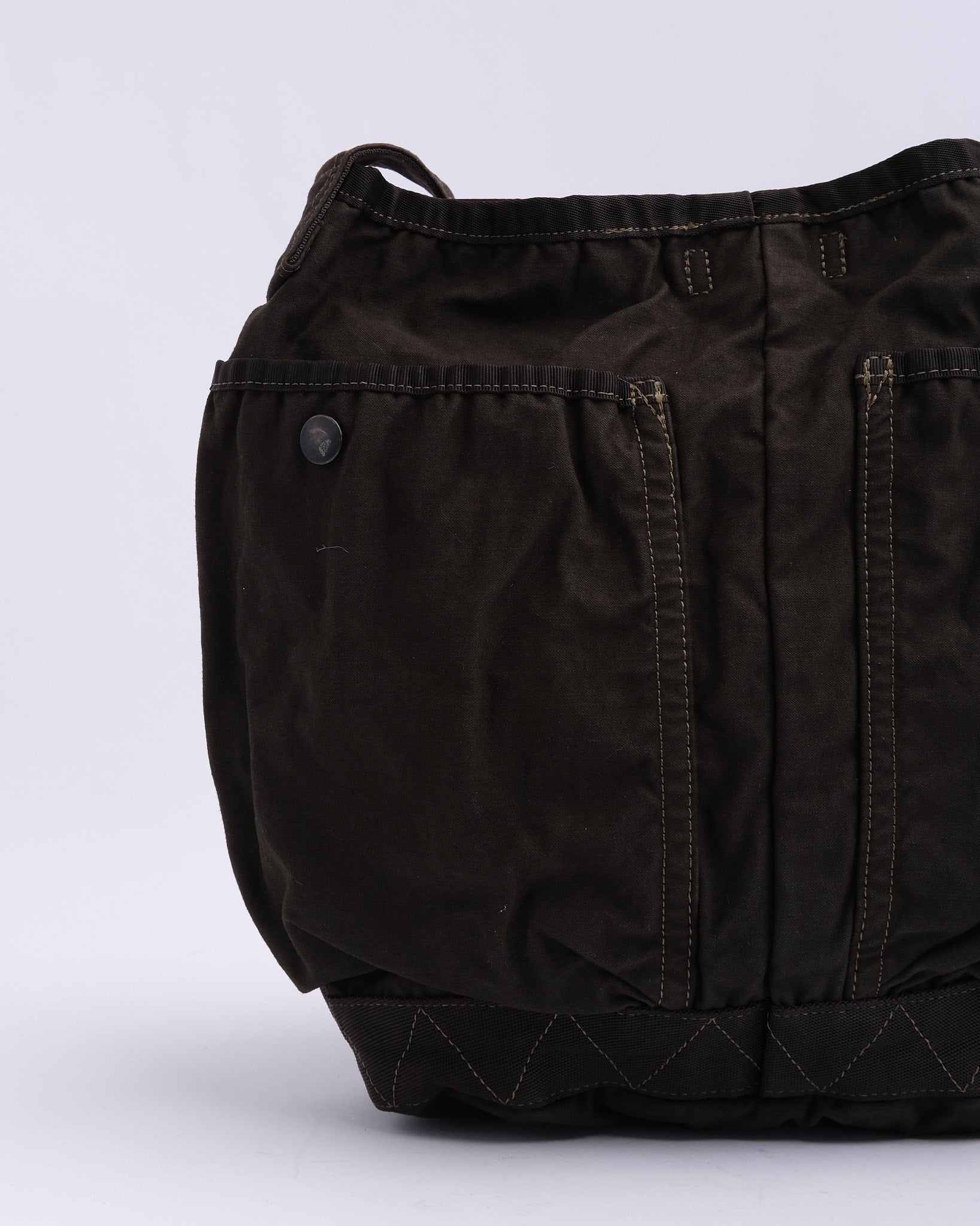 El Bolso de Hombro Crag de PORTER BY YOSHIDA (S) es parte de la serie PORTER CRAG, conocida por su distintivo proceso de teñido de productos que crea colores profundos, ricos y texturas únicas. Hecho de tela de satén de espalda, una mezcla de alta densidad de nylon y algodón, el bolso es tanto duradero como ligero. La técnica de teñido en dos baños realza la profundidad del color y crea variaciones sutiles, asegurando que cada pieza sea única.