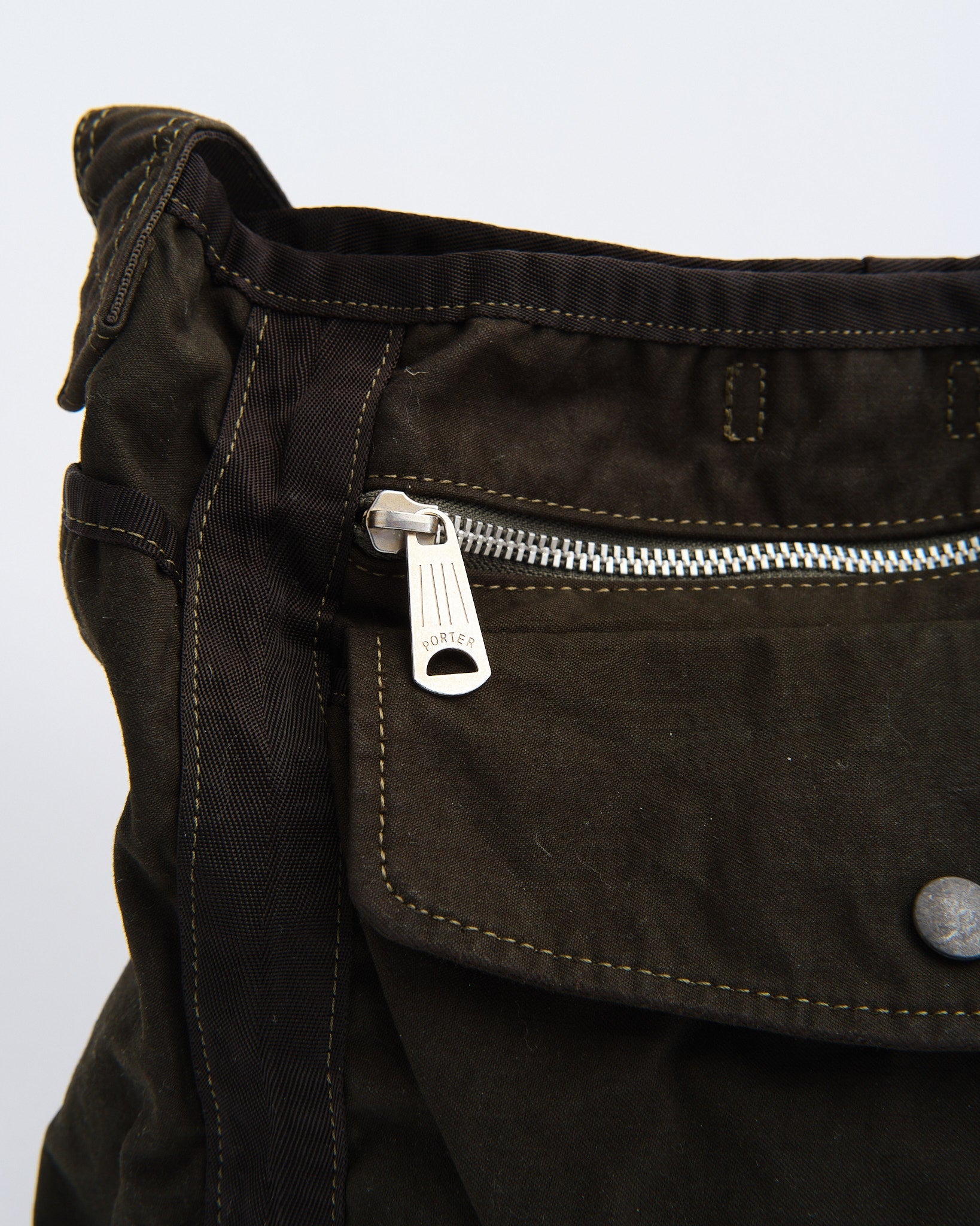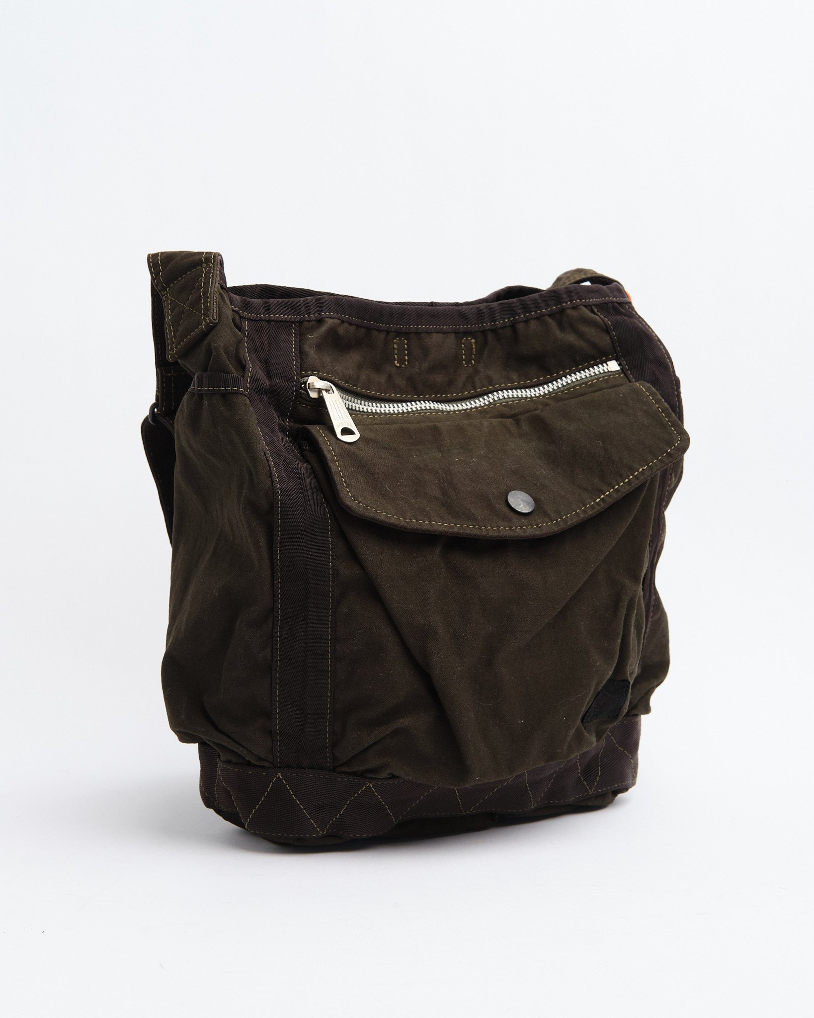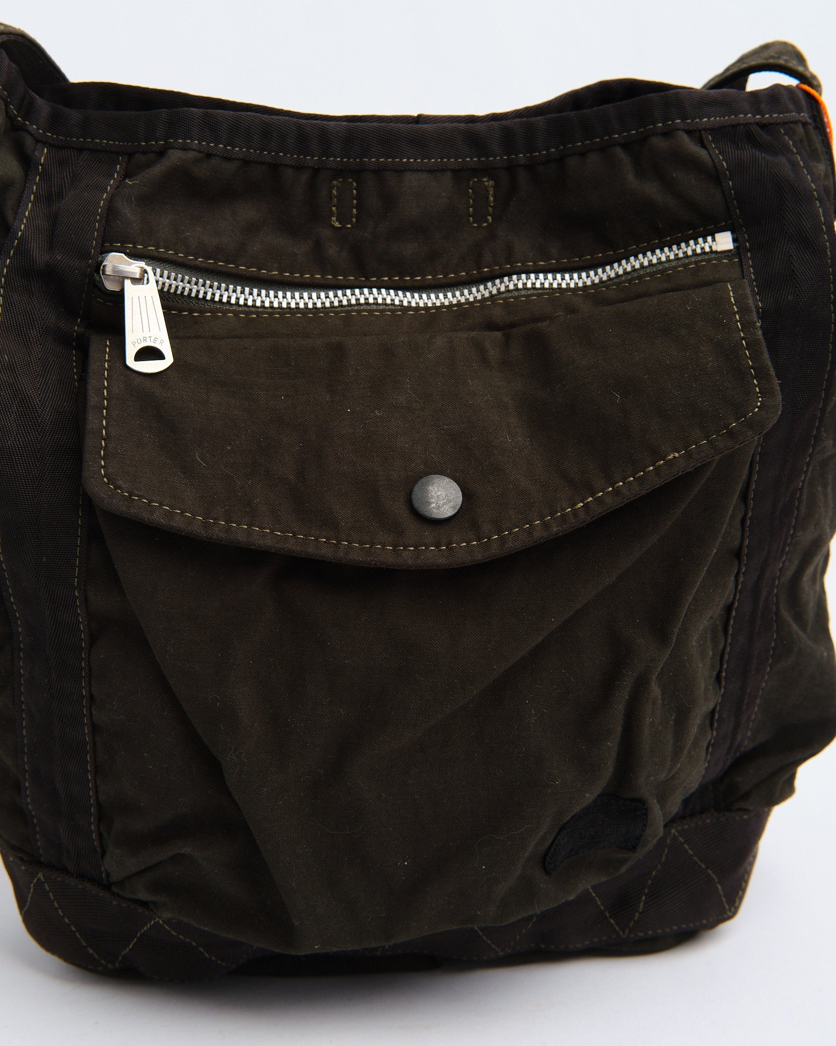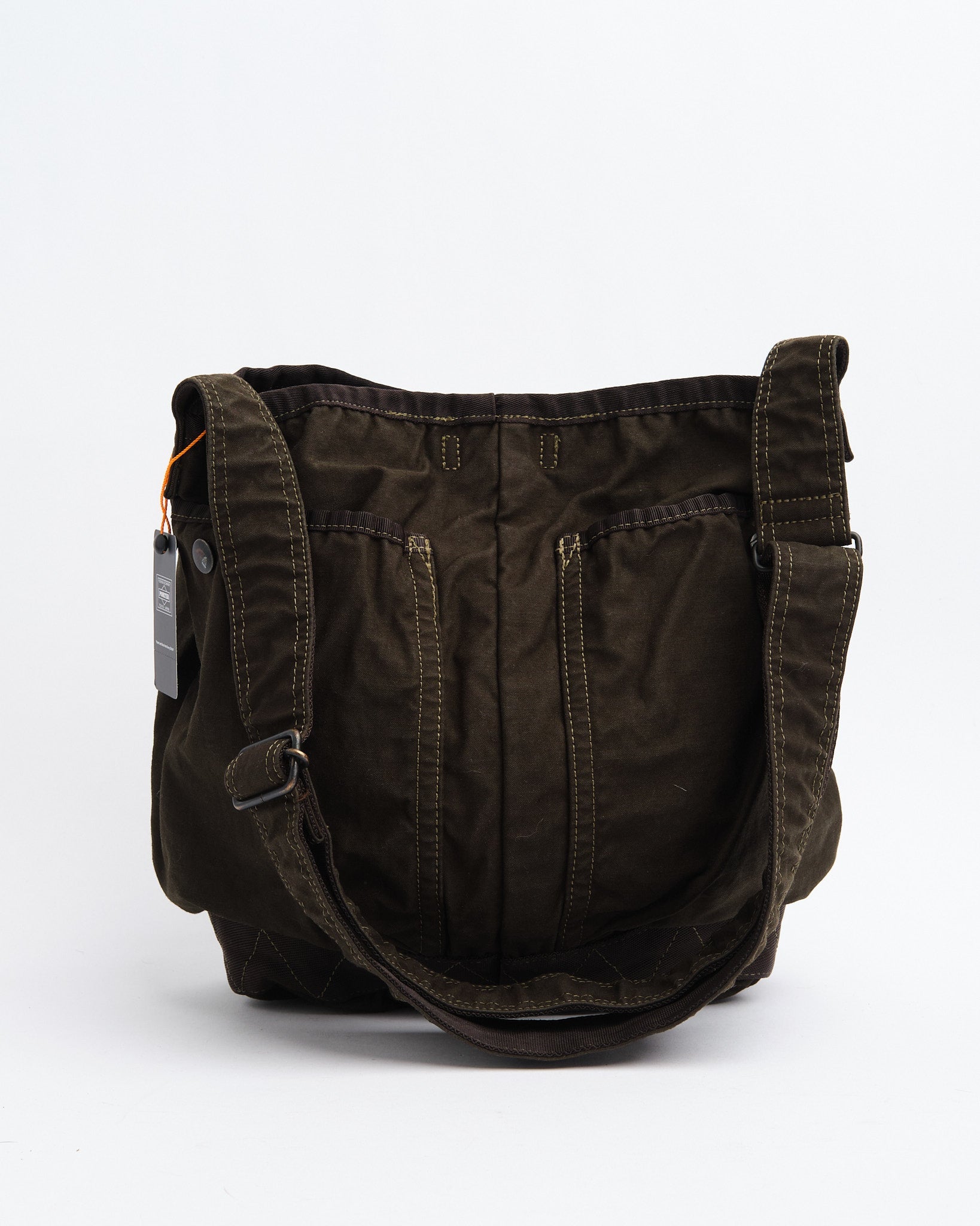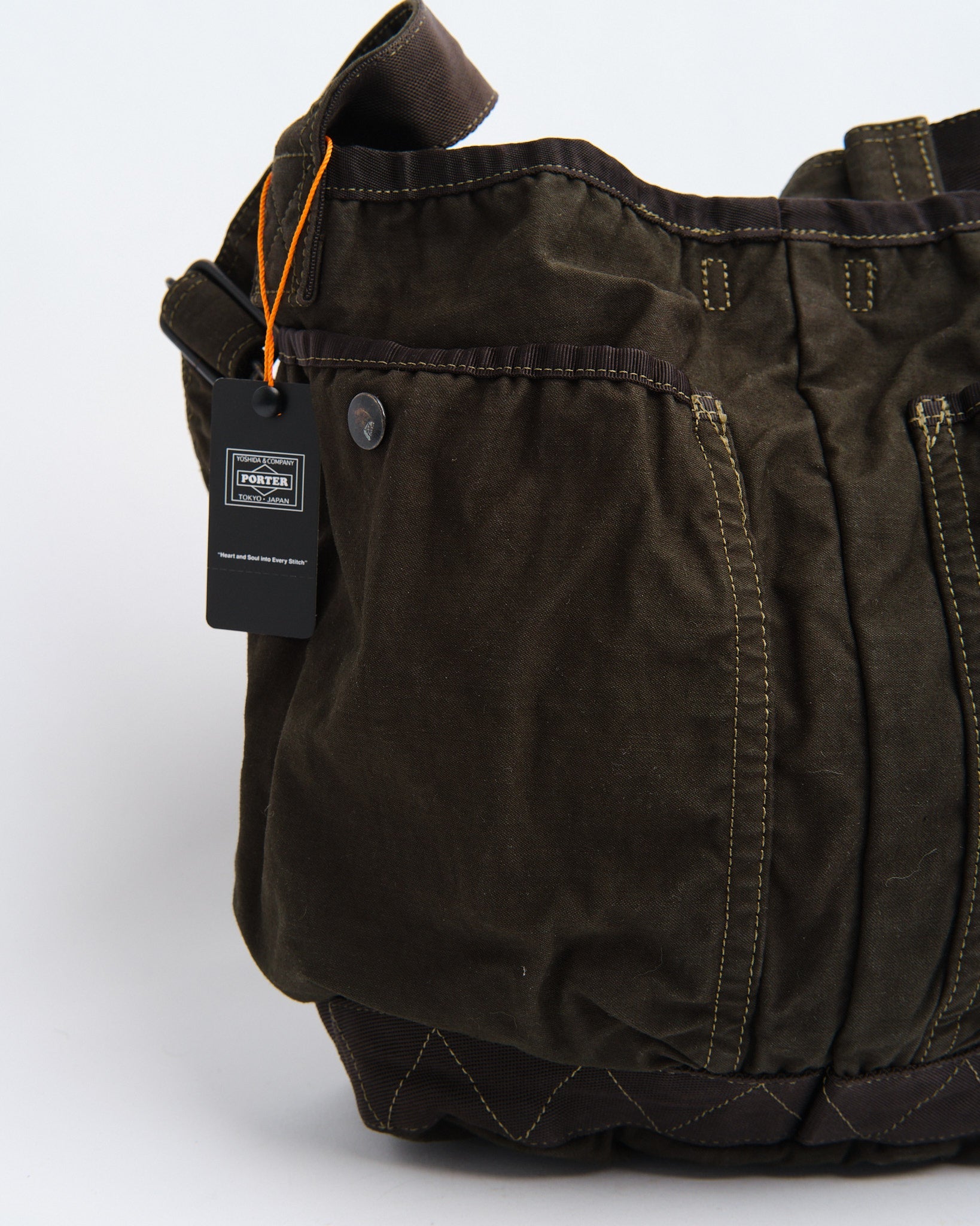 El Bolso de Hombro Crag de PORTER BY YOSHIDA (S) es parte de la serie PORTER CRAG, conocida por su distintivo proceso de teñido de productos que crea colores profundos, ricos y texturas únicas. Hecho de tela de satén de espalda, una mezcla de alta densidad de nylon y algodón, el bolso es tanto duradero como ligero. La técnica de teñido en dos baños realza la profundidad del color y crea variaciones sutiles, asegurando que cada pieza sea única.