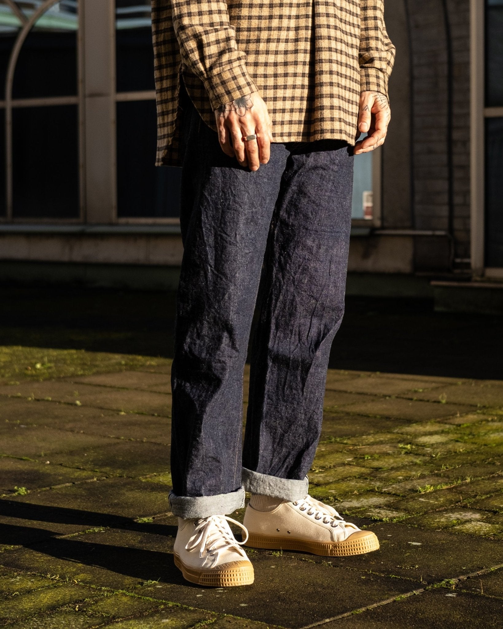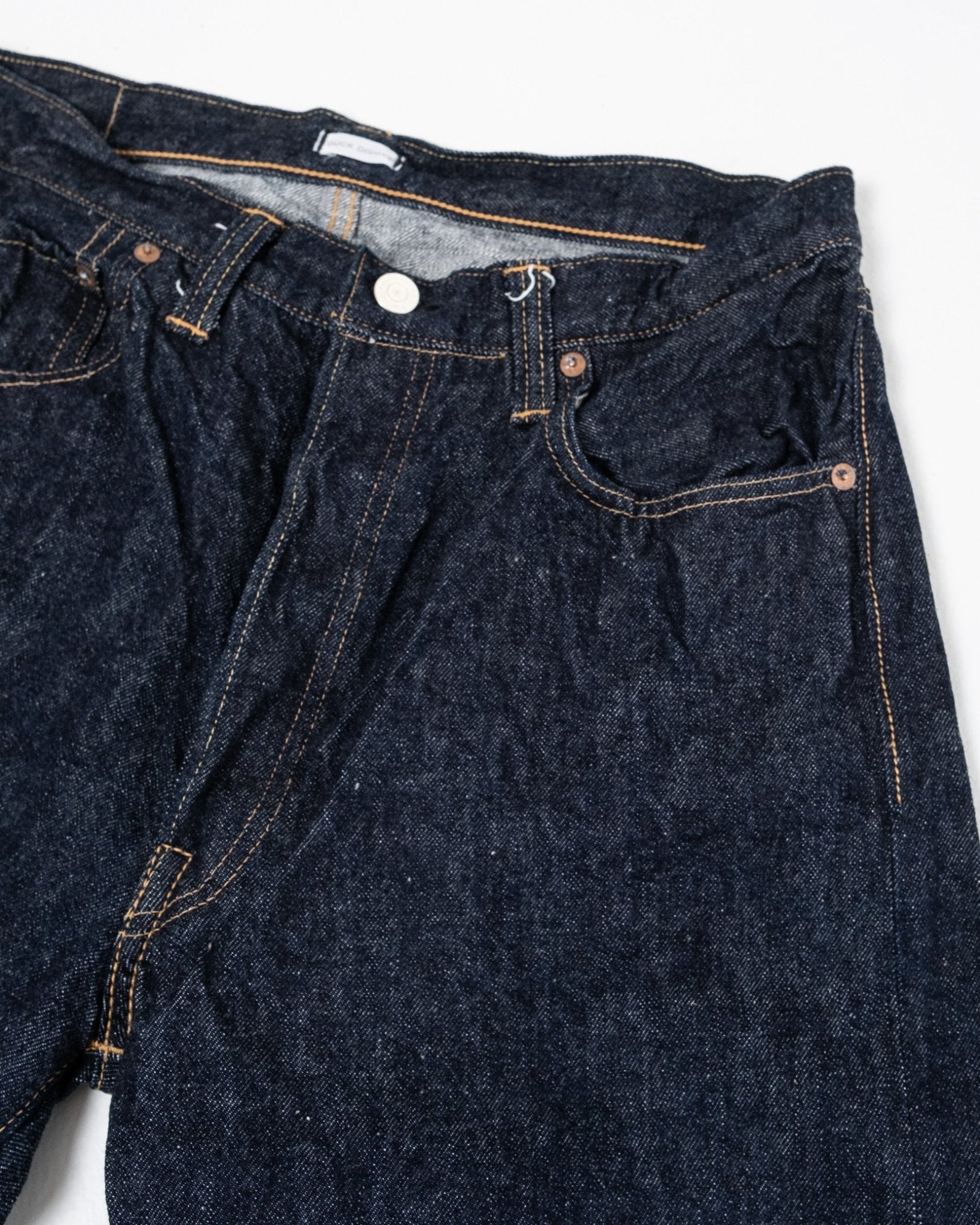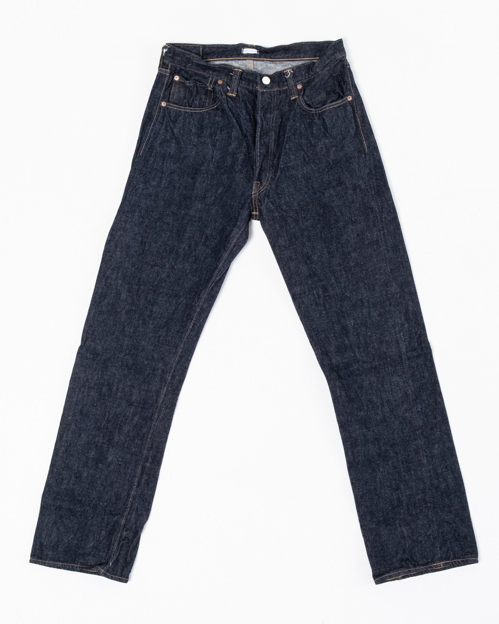 Duck Digger 1001XX One Wash de Warehouse & Co. Este jean es un corte de 1947, con una subida profunda y un estrechamiento suave. Warehouse los cose en su denim Banner de 13.5 oz. Este par de ajuste recto se basa en un modelo de los años 1947 en una mezcla de algodón de Arizona, Tennessee y Texas, recreando la característica de hilo desigual natural de la época. Denim no sanforizado que ha sido lavado una vez para un bonito aspecto vintage, además de que te libera de todos los problemas de encogimiento. Hecho en Japón.