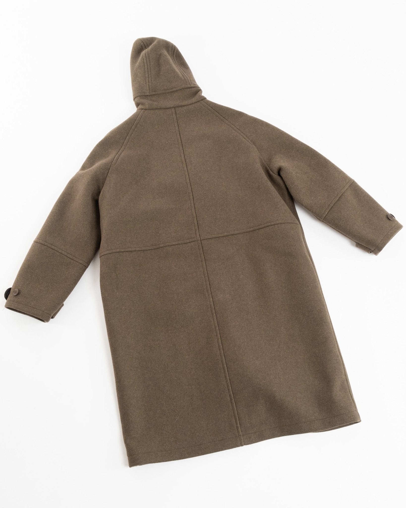 Un abrigo de lana pesada y hermoso para completar tu armario de invierno. Cortado en un ajuste relajado en tela italiana. Semi-forrado. Con capucha. Dos bolsillos exteriores. Hecho en Portugal.