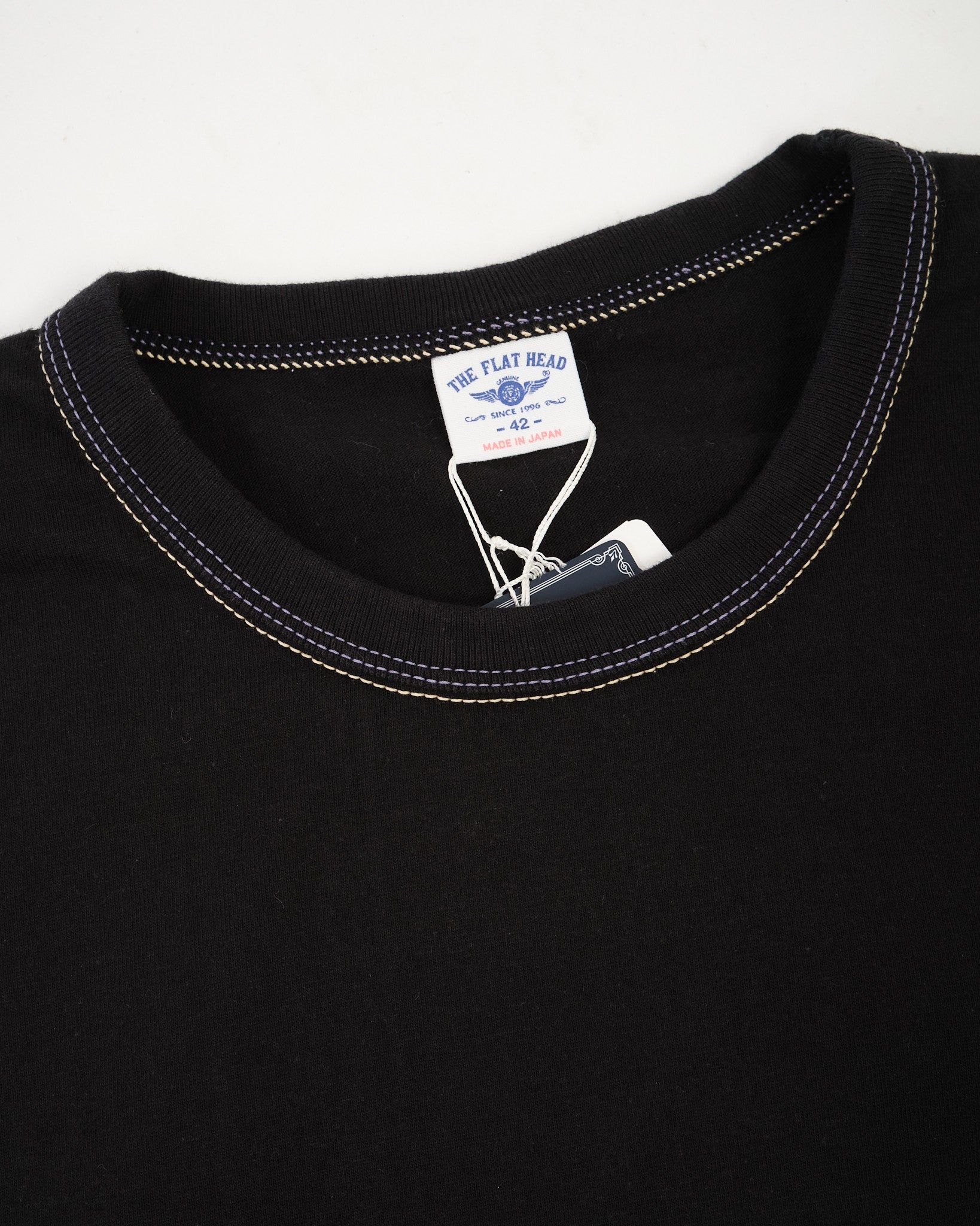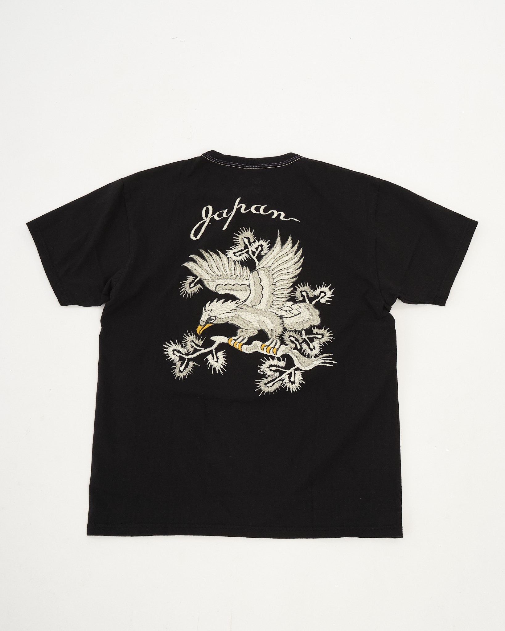 The Flat Head brings its iconic Sukajan-inspired “Eagle” motif to this THC Series T-shirt, combining bold Japanese artistry with heritage craftsmanship. The detailed foam print captures the texture and depth of real embroidery, giving the design a striking three-dimensional feel.