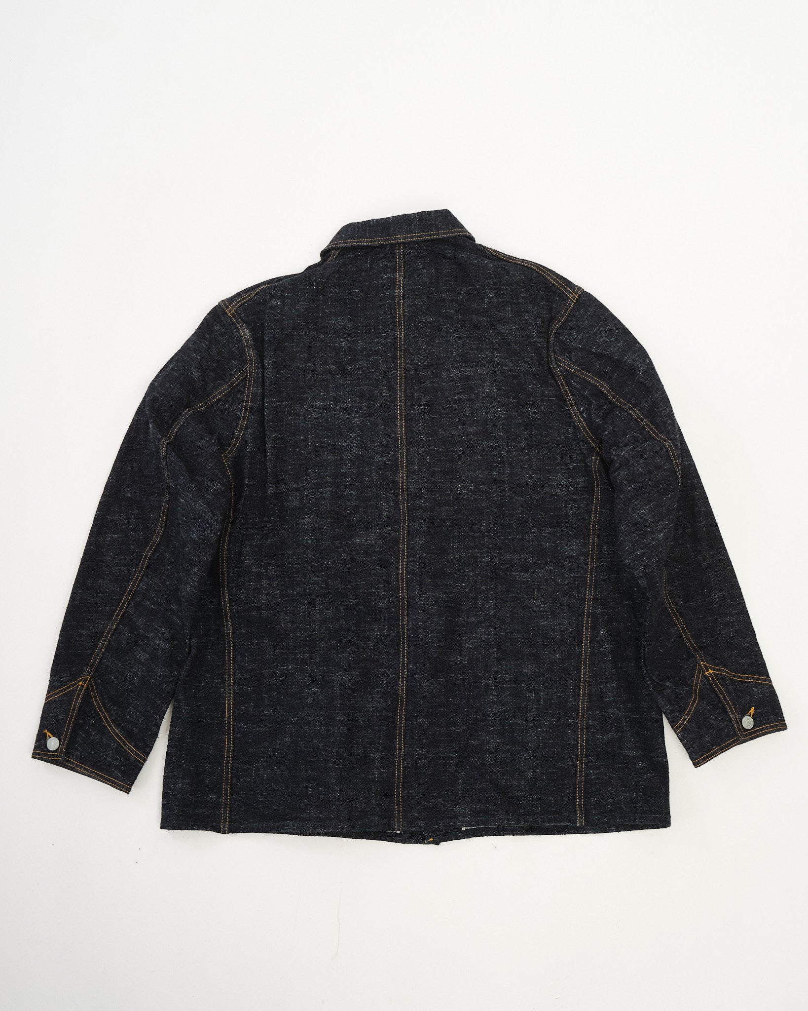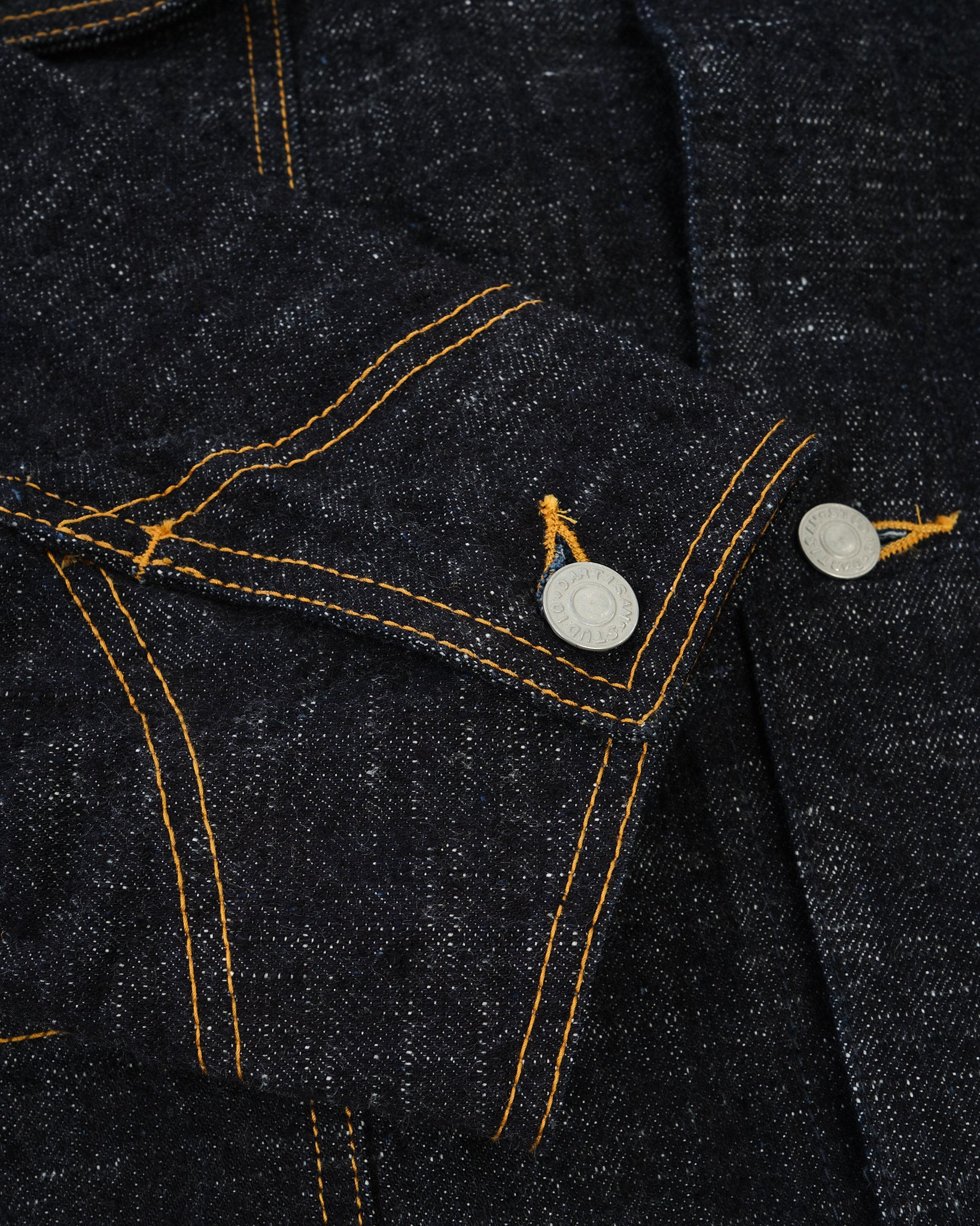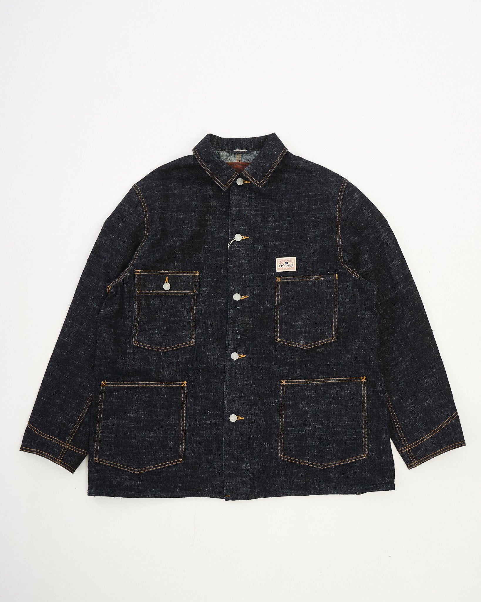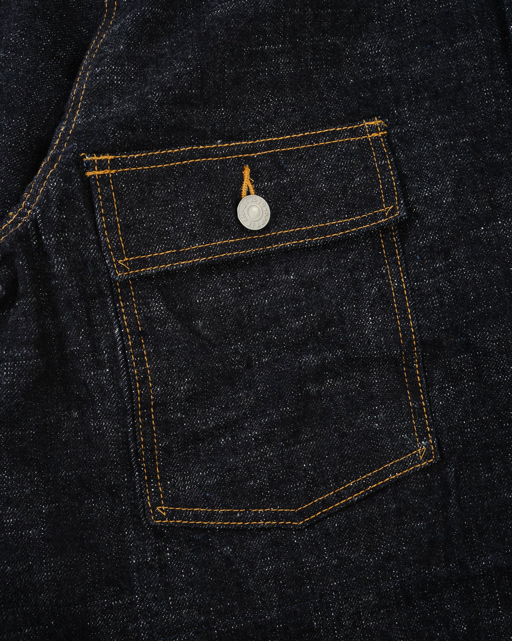 El STUDIO D'ARTISAN GL3 Denim Coverall (D4620) ejemplifica la dedicación de la marca a la artesanía tradicional y al desarrollo innovador de tejidos. Esta chaqueta tipo mono está meticulosamente confeccionada con denim GL3, un tejido exclusivo de 15oz producido en el histórico telar de lanzadera Toyoda G3, uno de los primeros telares mecánicos de Japón. Este telar confiere una textura desigual distintiva al tejido, recordando la ropa de trabajo vintage.
