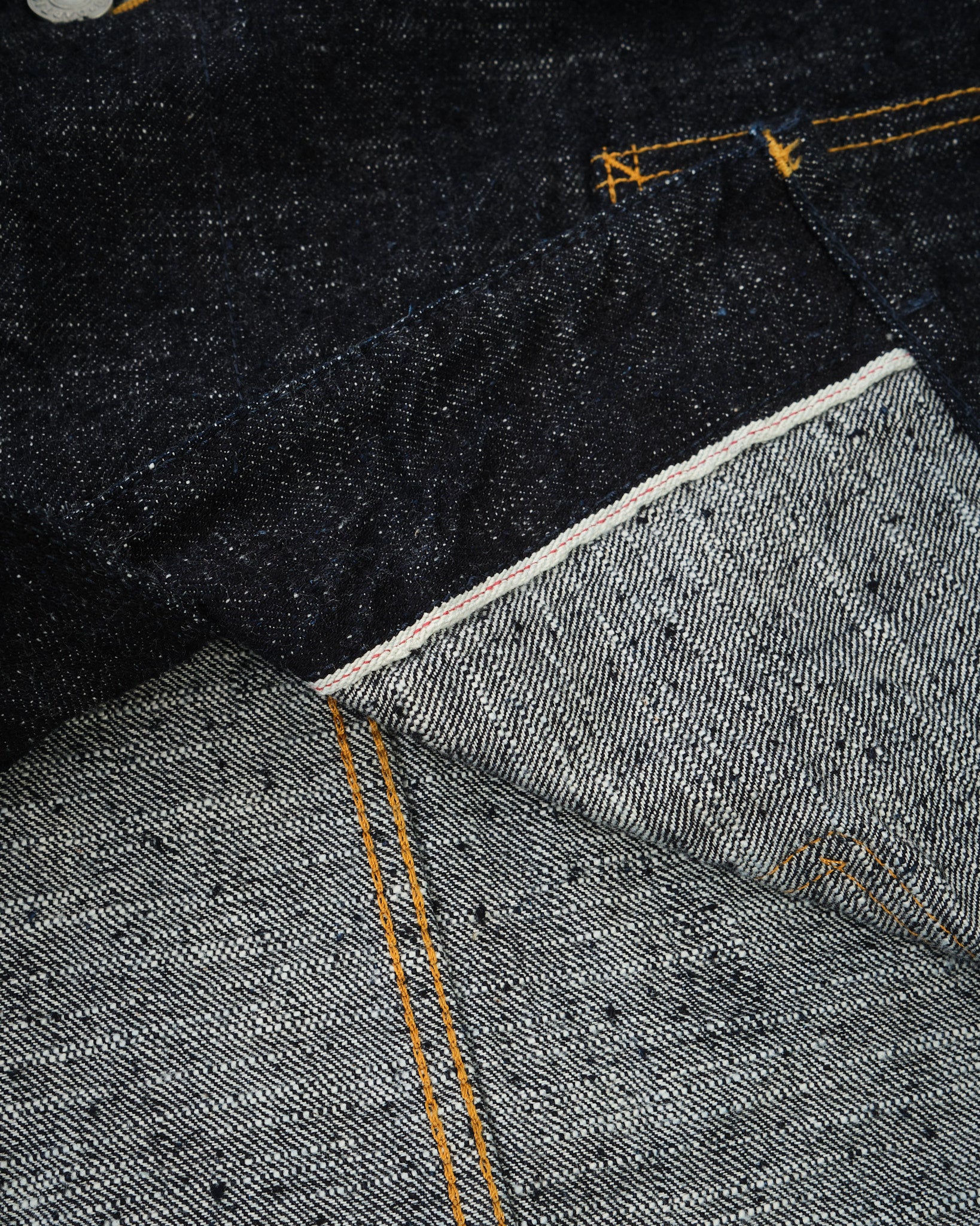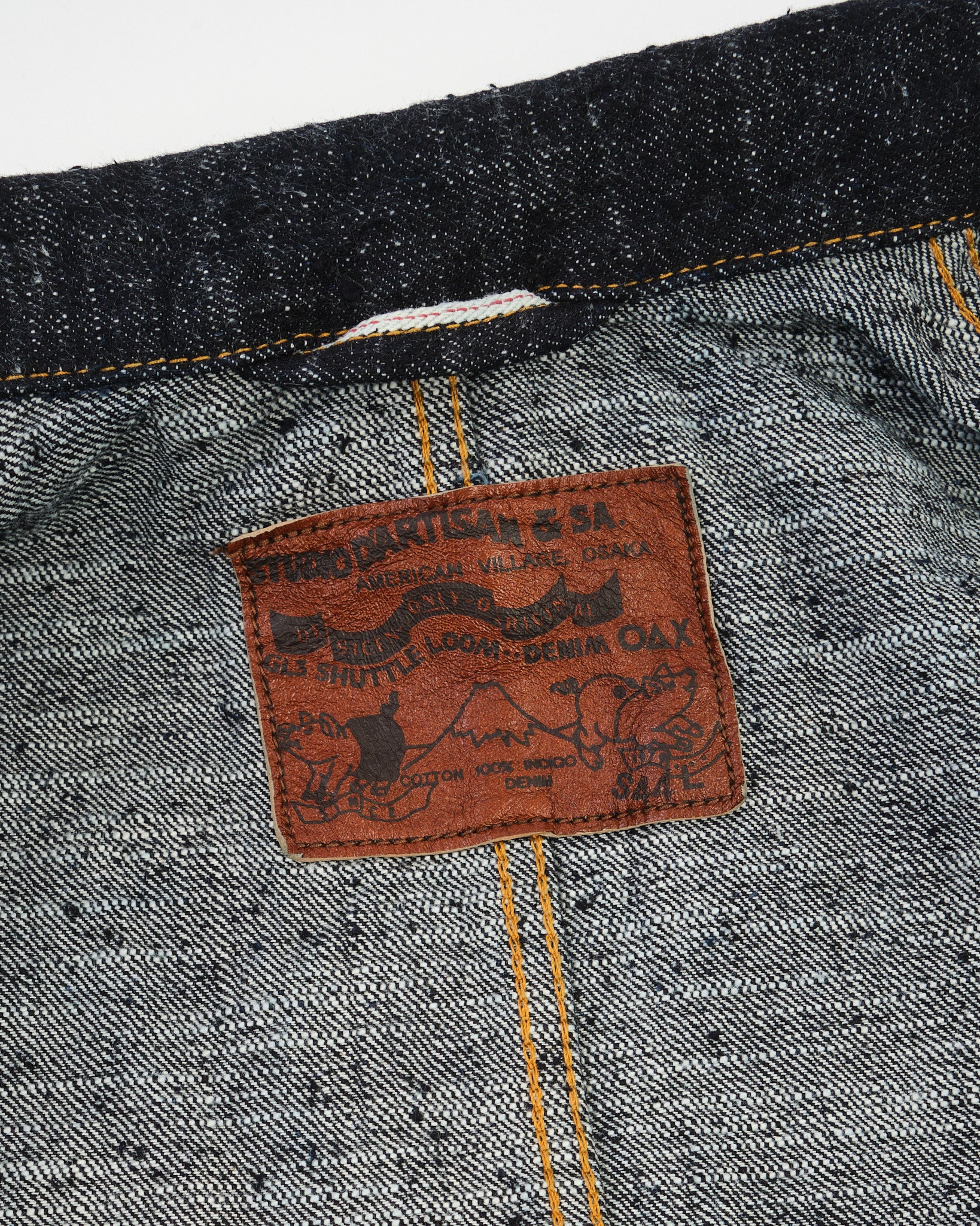 Para maximizar completamente las características únicas del GL3, cada aspecto del denim—como la textura irregular del hilo, el número de hilo, los tonos teñidos con cuerda y la densidad de urdimbre y trama—ha sido meticulosamente diseñado usando la receta exclusiva de Studio D’Artisan. El resultado es un denim que exuda una desigualdad distintiva en la superficie del tejido y un encanto robusto, imposible de replicar con los tejidos producidos uniformemente de la fabricación moderna de denim.