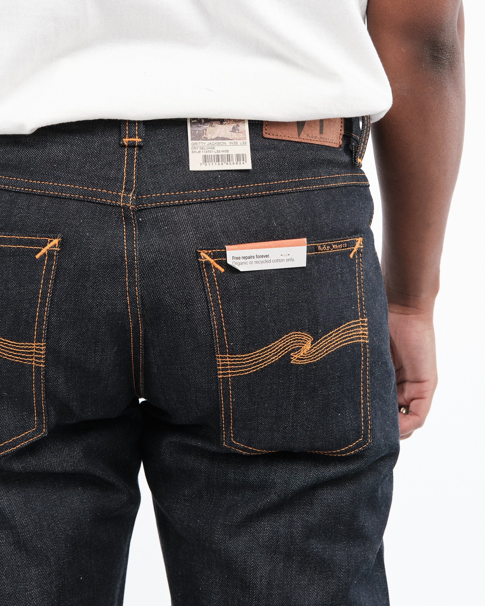 Descubre el jean que lo inició todo para Nudie Jeans: el Gritty Jackson Dry Selvage. Confeccionado en Italia a partir de denim Selvage japonés rígido de 13.75 oz por Kaihara Mills, estos jeans son el epítome de la herencia de la marca. Experimenta las propiedades de envejecimiento transformadoras, desde su único tono greencast hasta su eventual azul claro redcast. Este jean de corte regular, cintura media y pierna recta es una pieza atemporal que recompensa a aquellos que los dejan envejecer naturalmente.