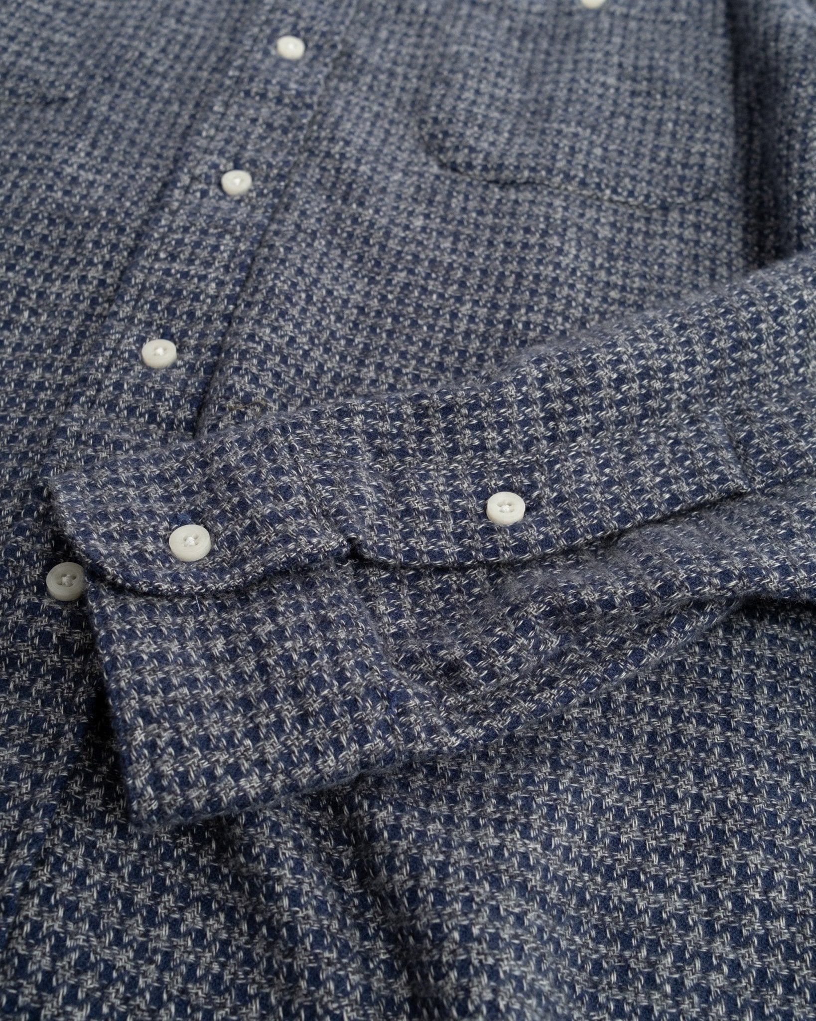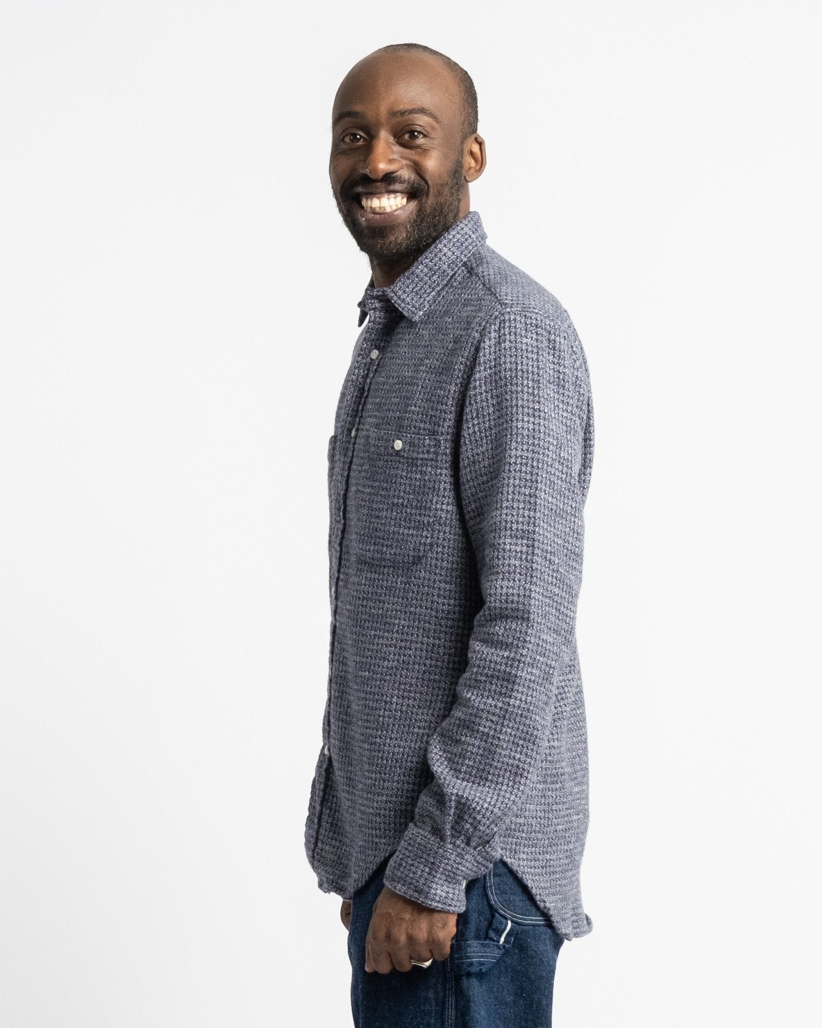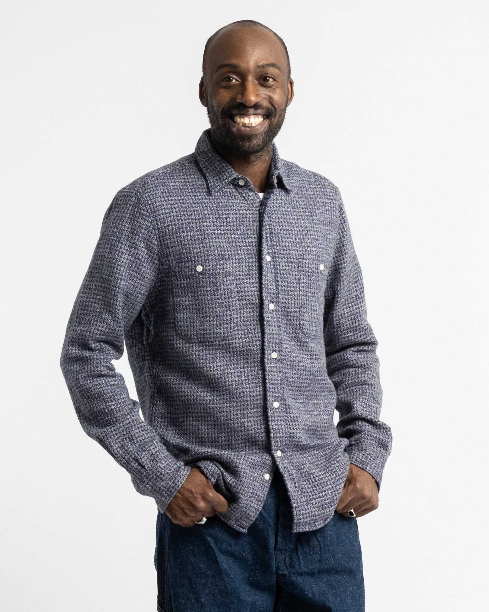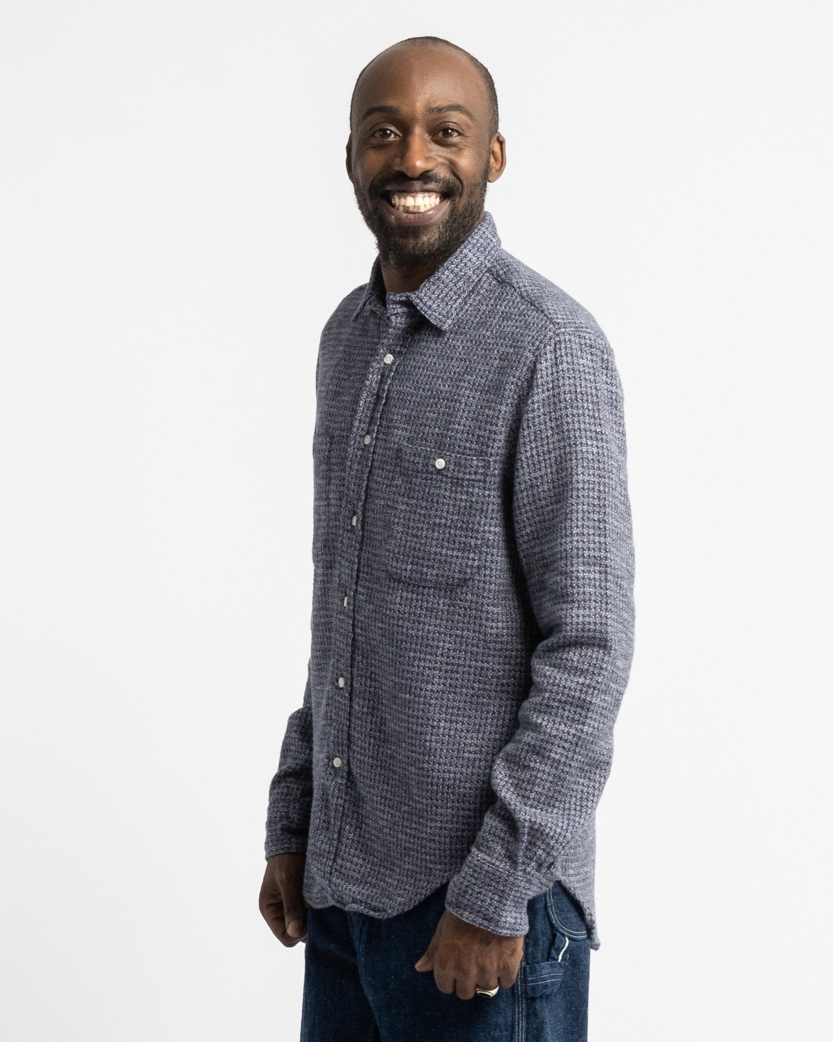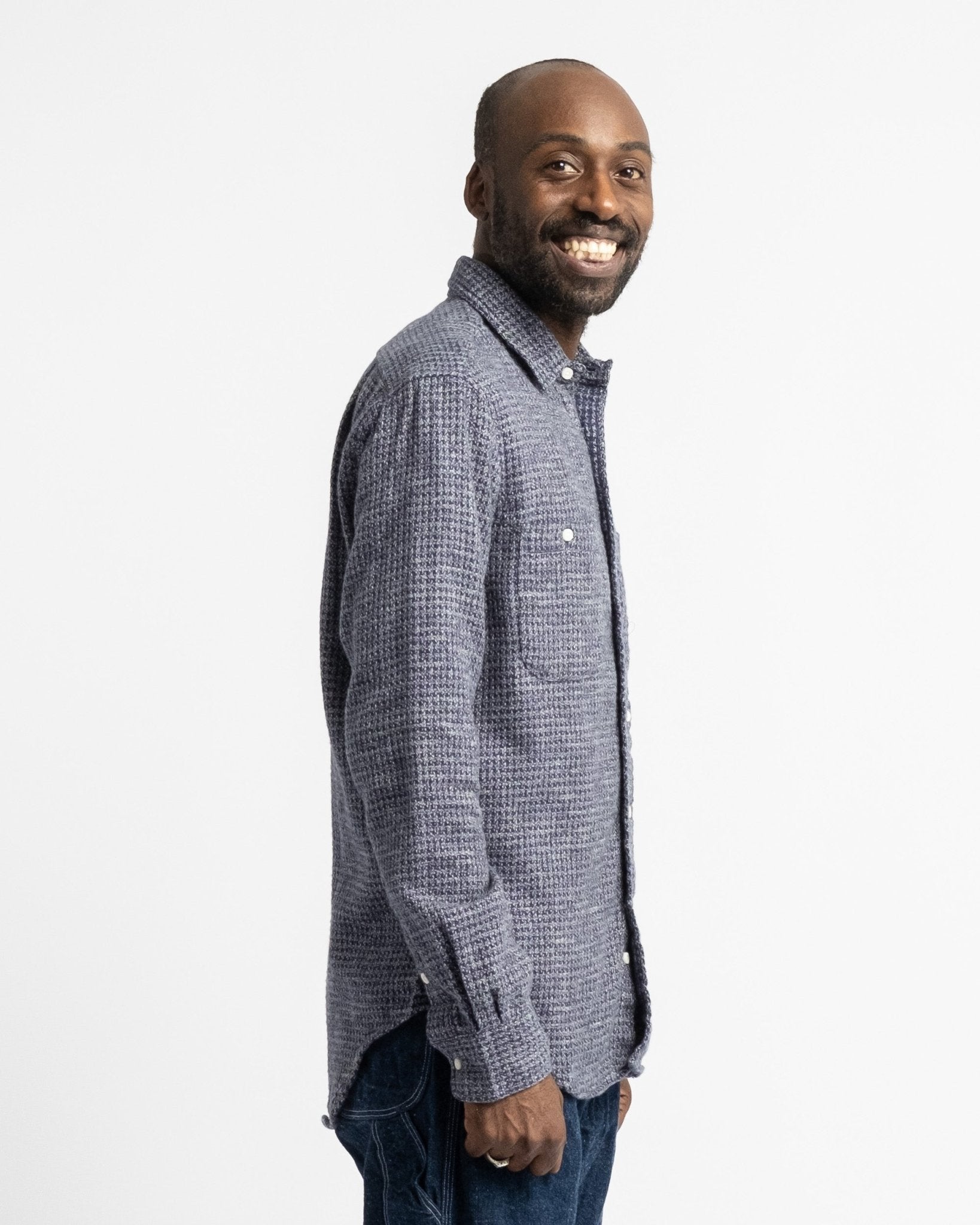 Camisa ultra suave de peso medio pesado de Gitman Vintage, el Hilo Triple Cepillado Navy. Viene con los bolsillos inspirados en la ropa de trabajo, ajuste relajado casual y superficie cepillada para esa sensación perfecta durante los meses más fríos. Hecha de 100% algodón, fabricada en EE.UU.