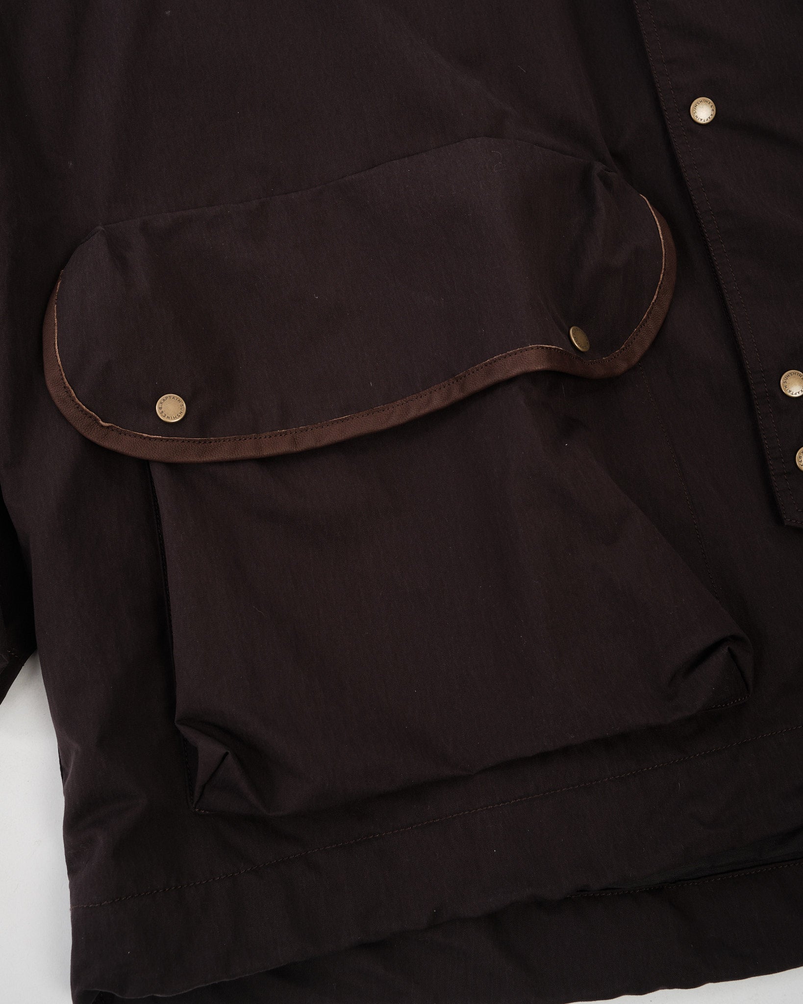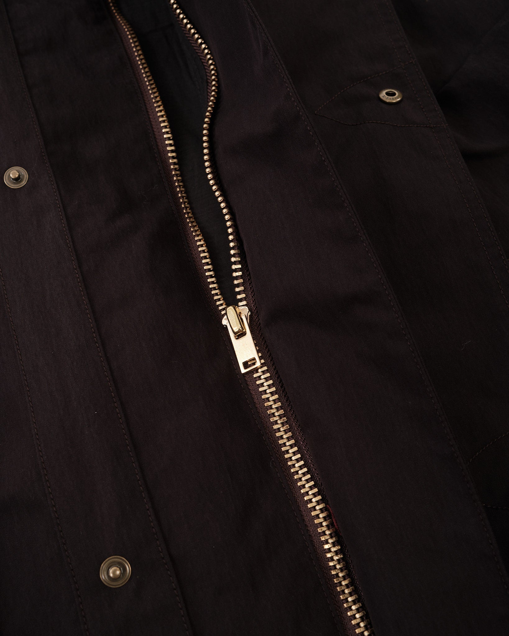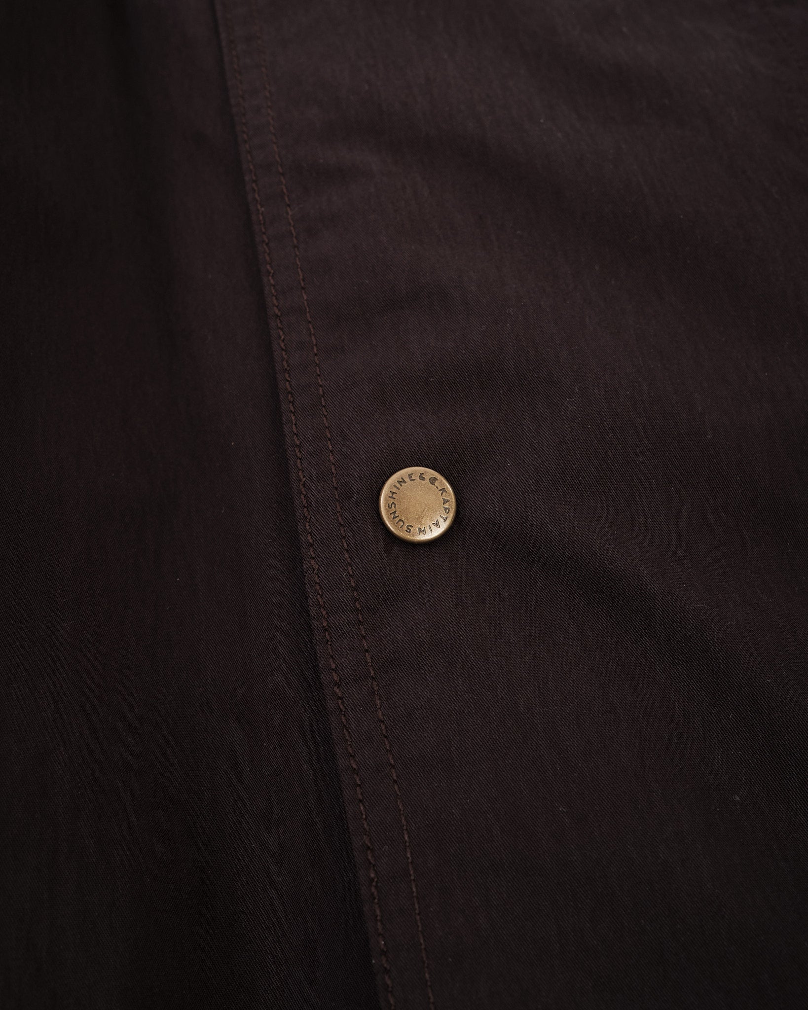 The fabric is a high-density cotton–nylon twill, woven with cotton warp and nylon weft yarns to create a durable yet lightweight structure. A water-repellent finish adds practical protection while maintaining breathability and comfort.