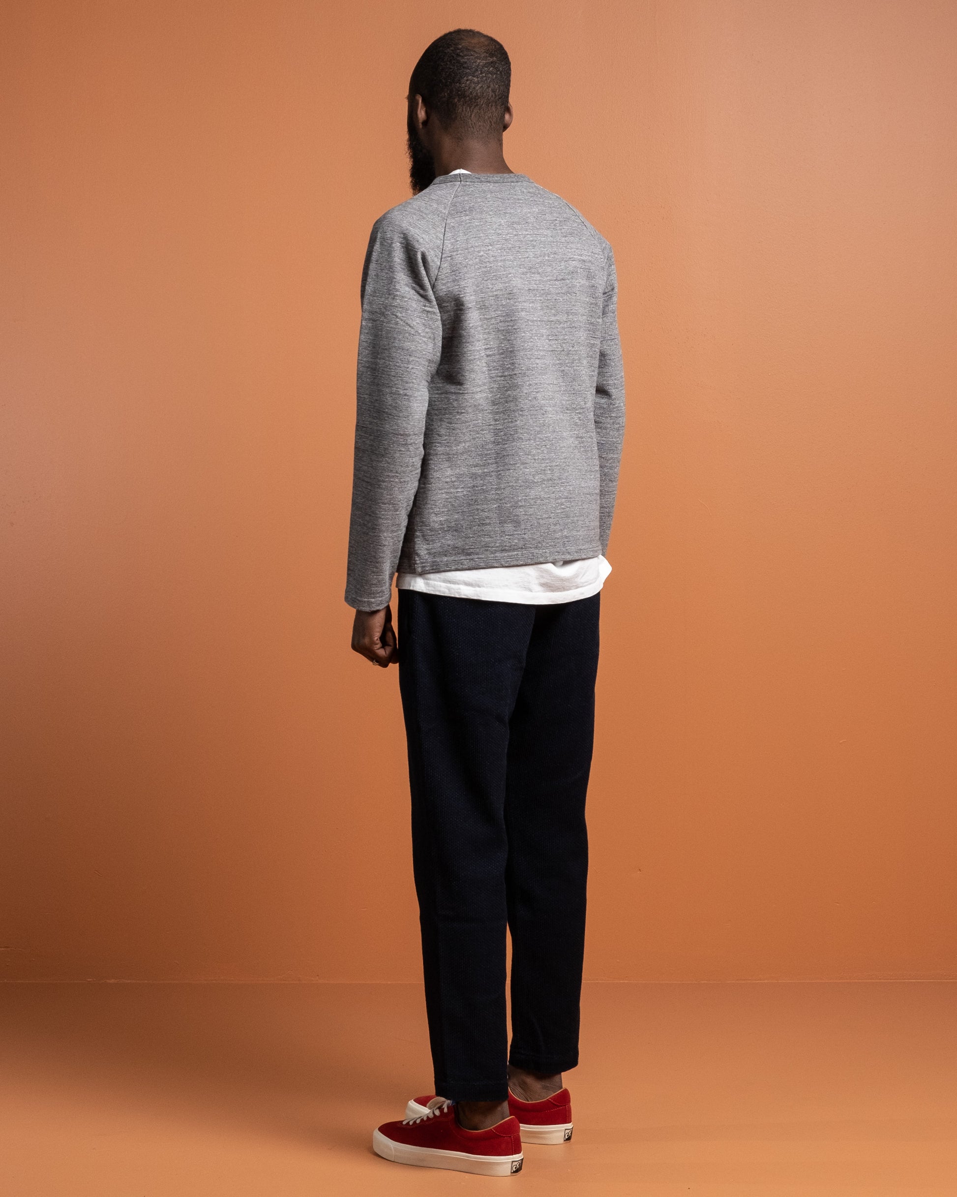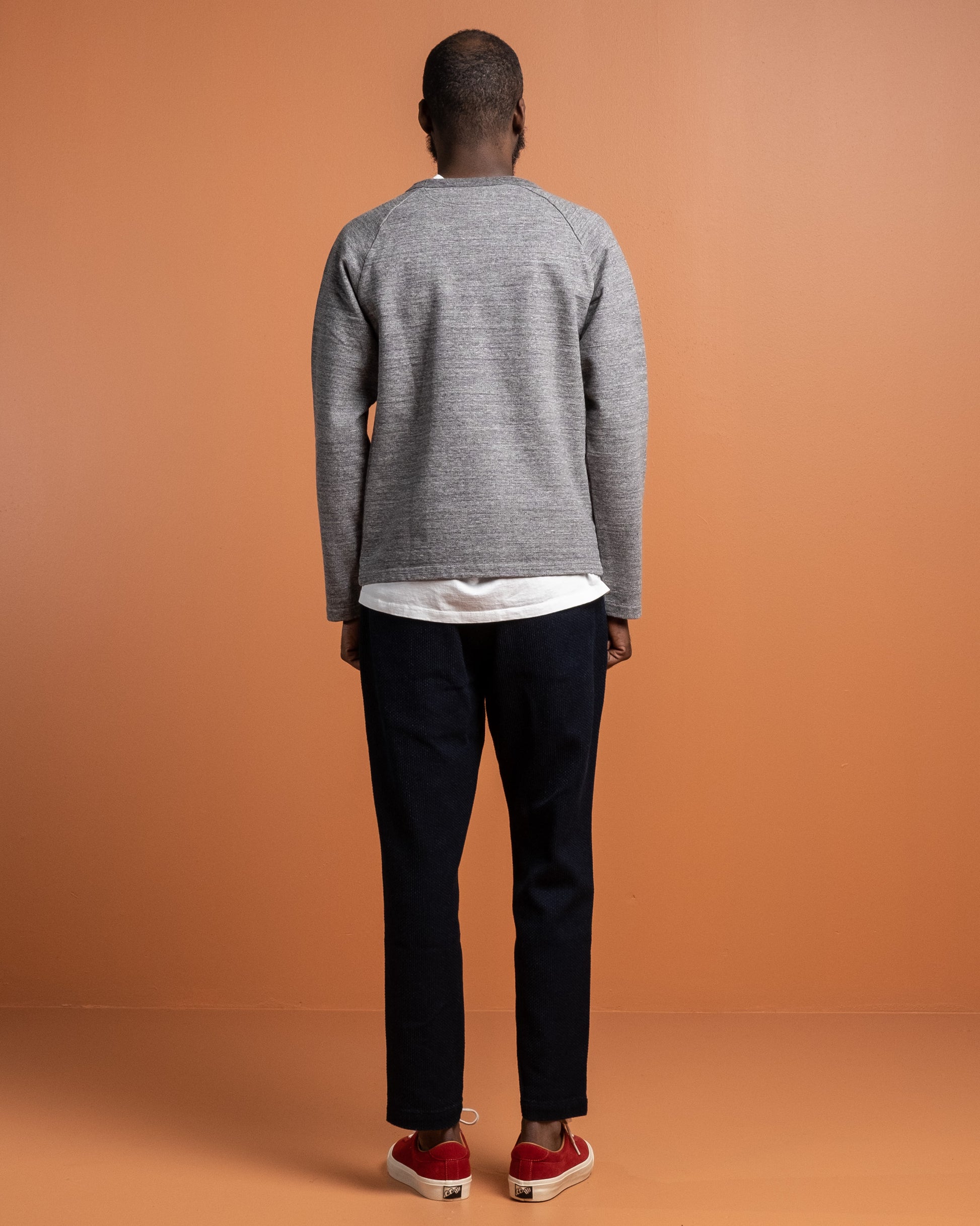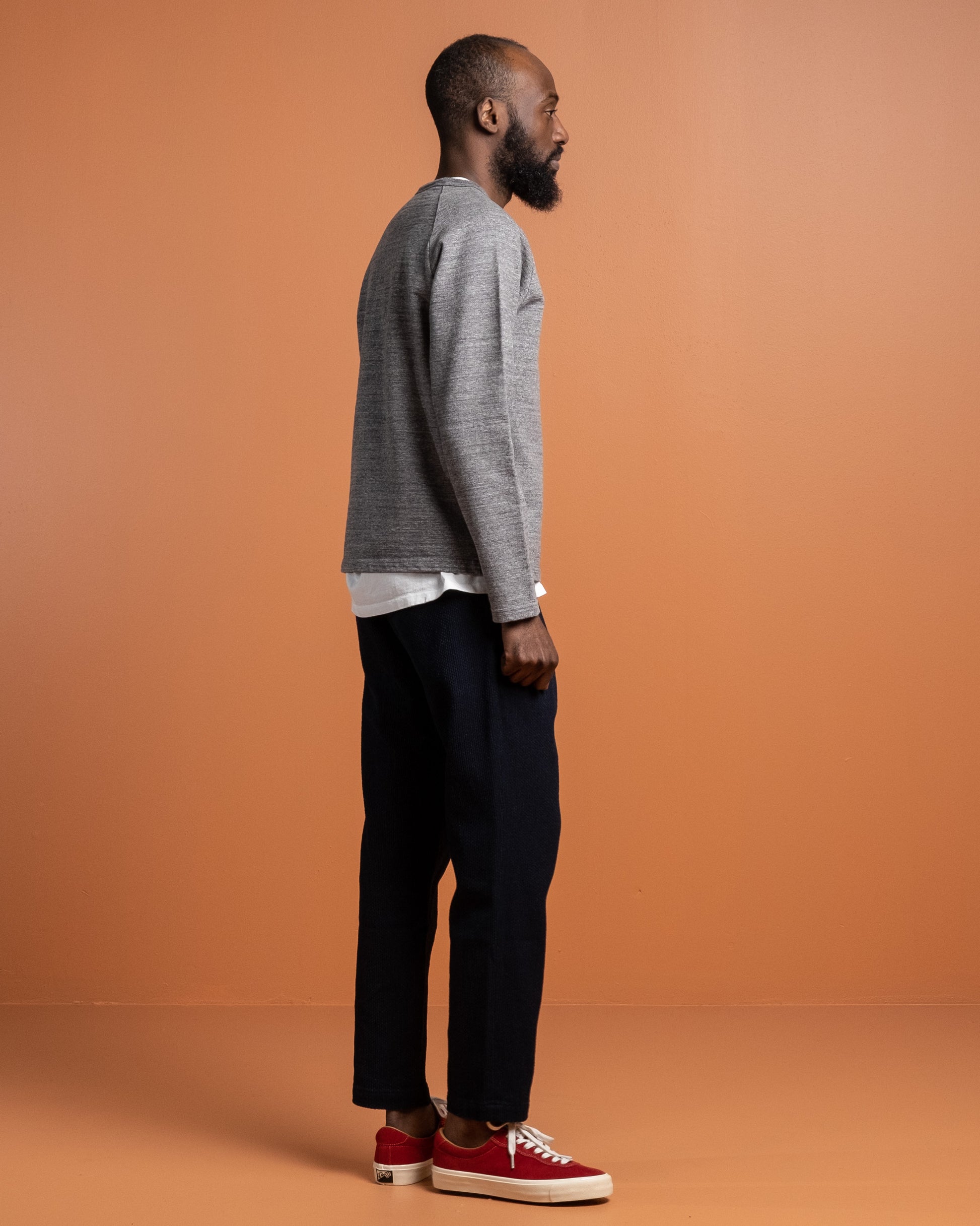 J6740J01 Camiseta de manga larga con incrustaciones de 16.5 Oz en Carbón de Japan Blue Jeans. Creada usando técnicas de tejido vintage y complejas. Preciosa tela de algodón de 16.5 oz con mangas raglán de estilo vintage. Hecho en Japón.