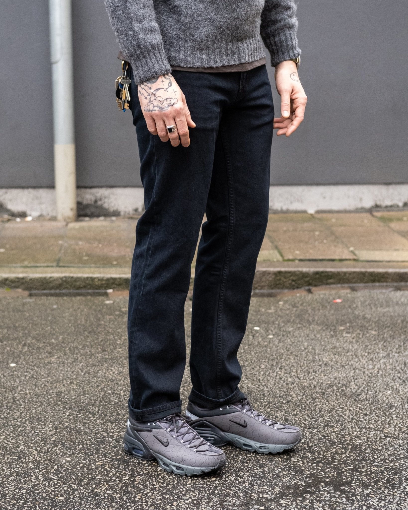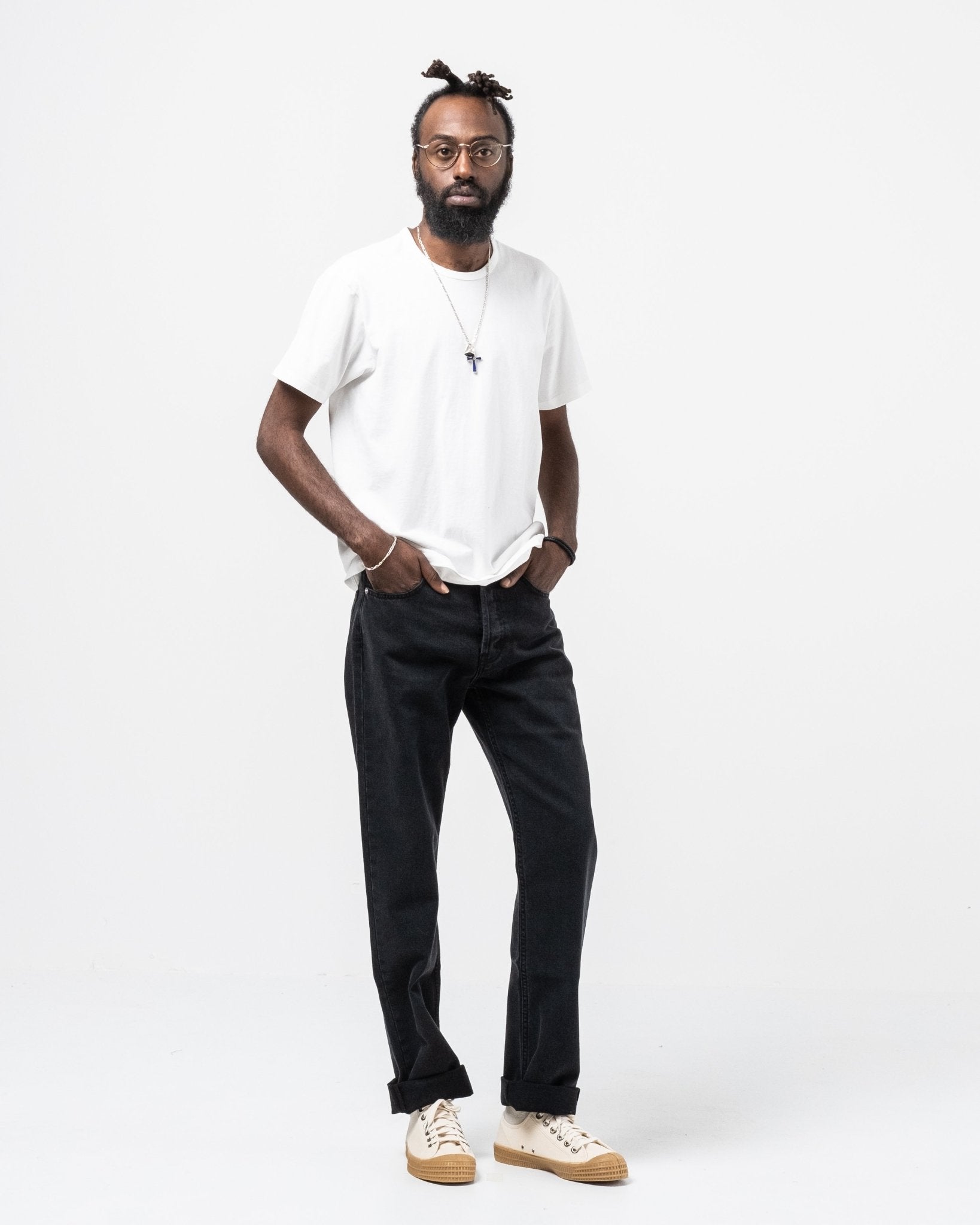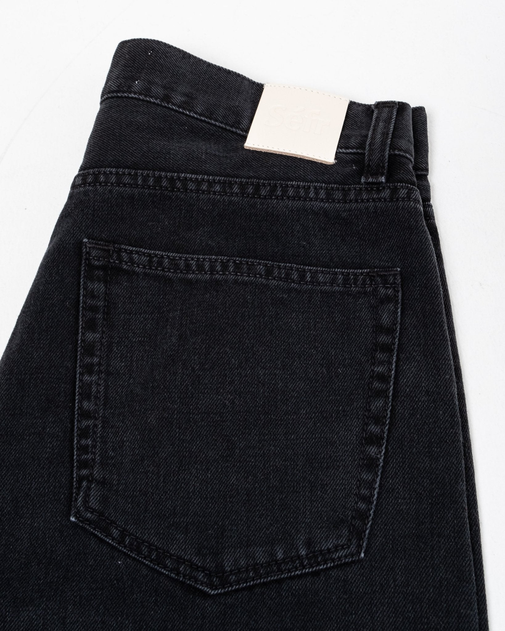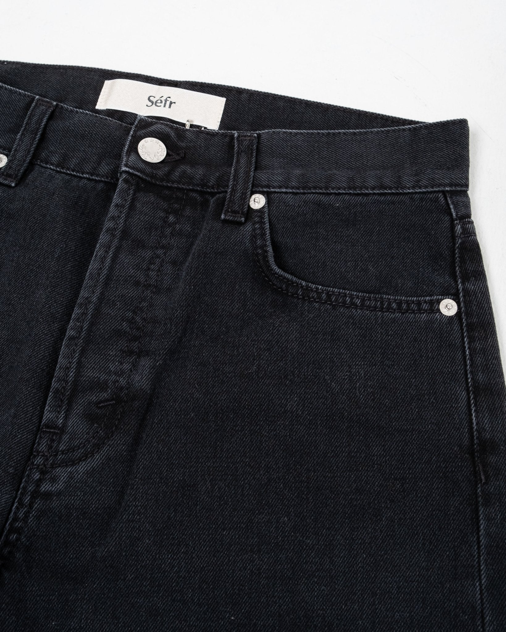 Jeans de Corte Recto en Negro Enjuagado de Séfr. Clásico jean de cinco bolsillos producido en algodón italiano de 13 oz. Cierre con botón frontal, corte recto y enjuagado una vez para un ajuste suave y cómodo desde el principio. Hecho en Letonia.
