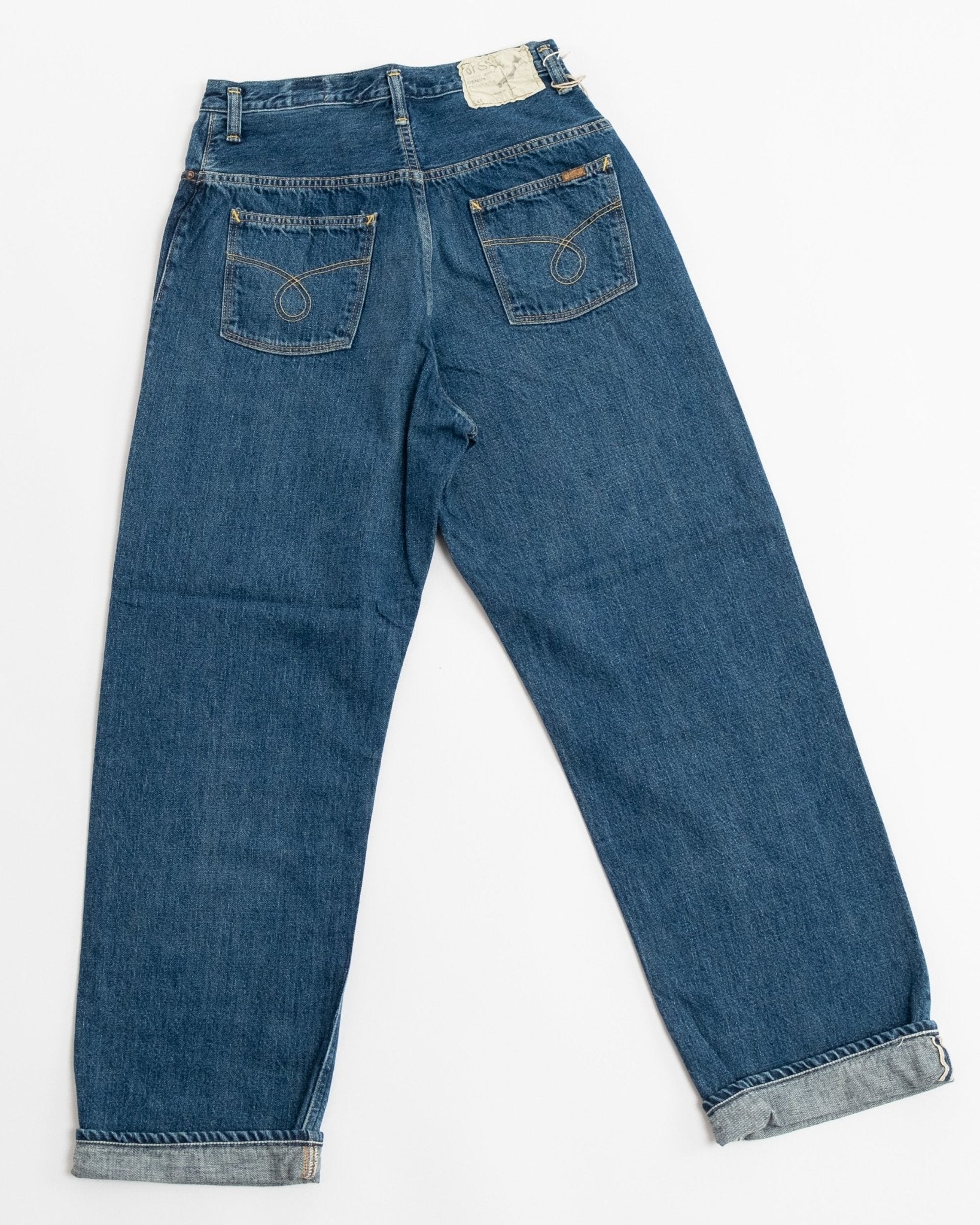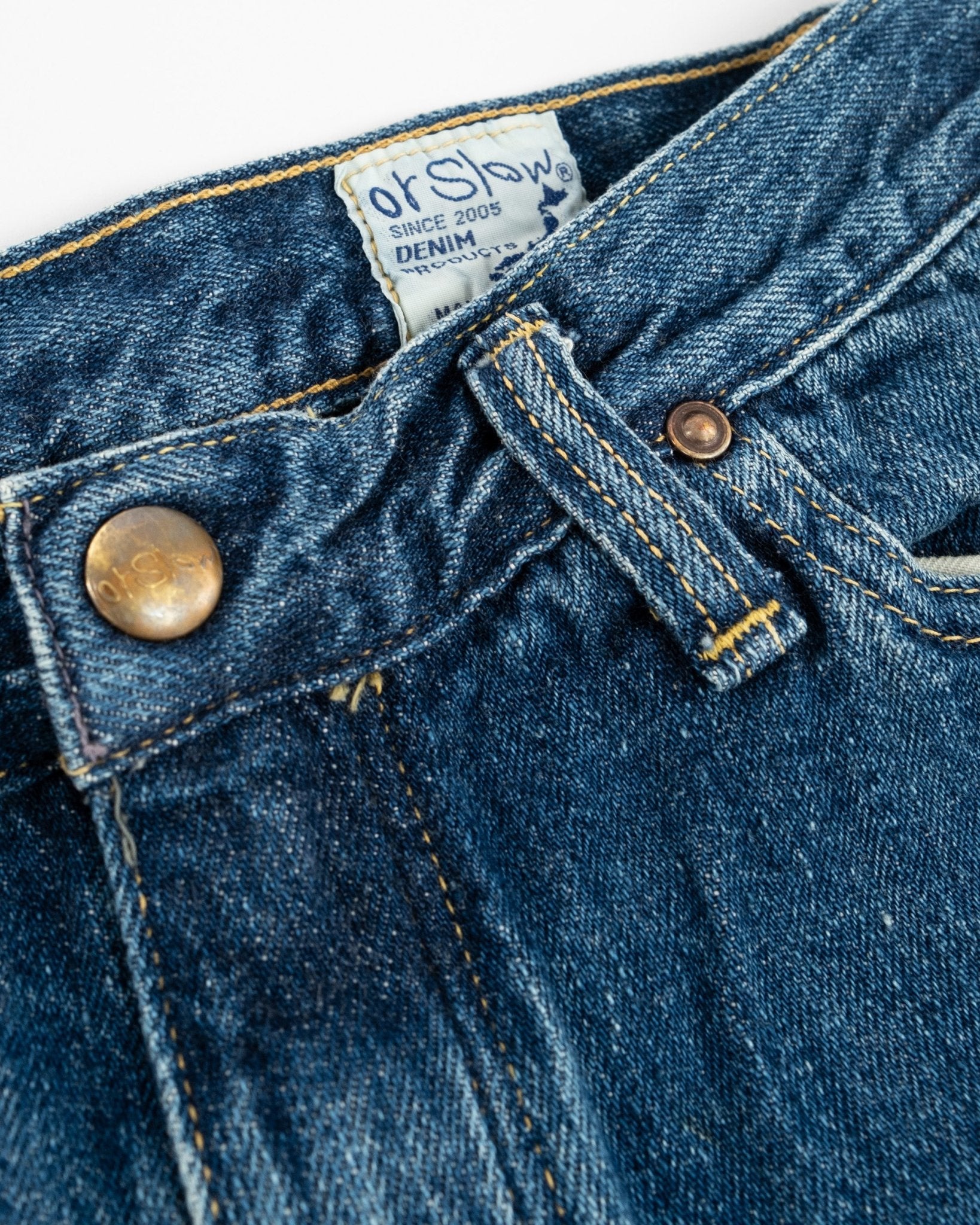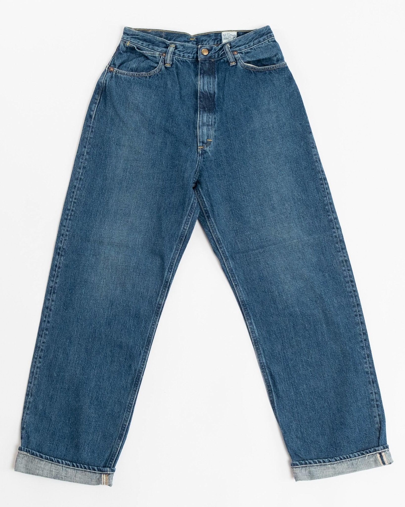 Inspirados en los años 1950, con cintura alta, longitud más larga, muslos más anchos y pierna recta. El denim de esa época estaba diseñado para seguir la curva del cuerpo y ser lo suficientemente cómodo para usar todos los días. Esta forma del denim es perfecta para aquellos que a menudo encuentran el denim 'demasiado grande' en la cintura, o demasiado ajustado alrededor de los muslos, ya que están diseñados con una ligera curva, de ahí 'costura curva'. Hecho de un denim de 13.5 oz hecho a medida para orSlow, y lavado una vez, la sensación del denim será suave desde el primer uso, y este proceso de lavado resalta un hermoso color azul en el denim. El denim ha sido lavado por lo que las piernas se verán algo torcidas, típico del denim vintage, y esto también significa que el denim no se encogerá. Mosca de botón. 100% algodón. Hecho en Japón.