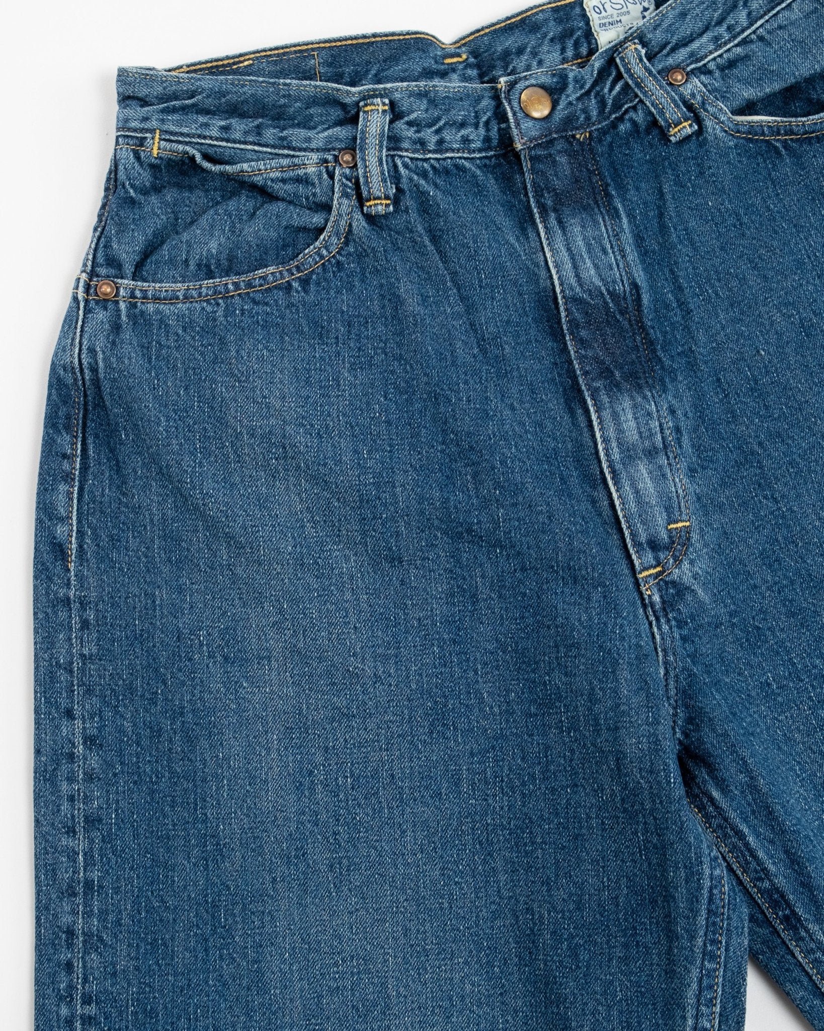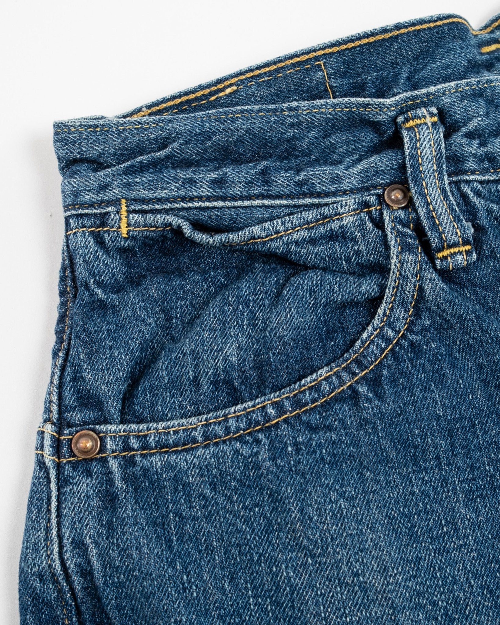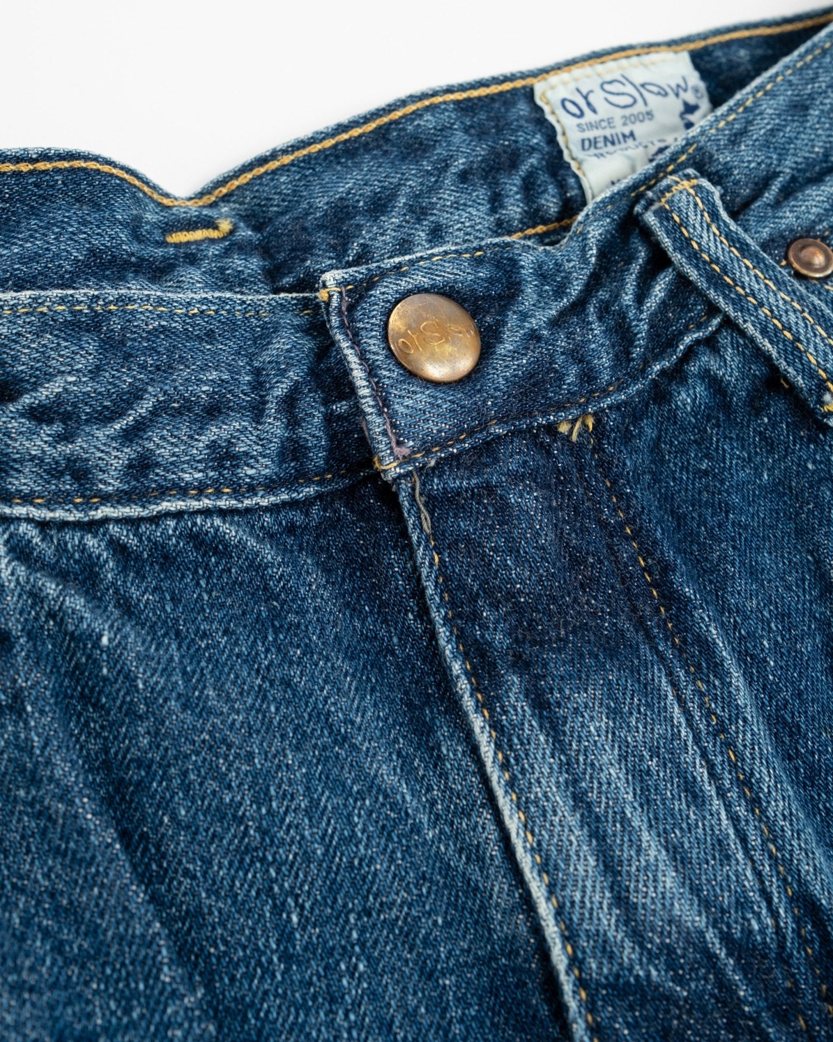 Inspirados en los años 1950, con cintura alta, longitud más larga, muslos más anchos y pierna recta. El denim de esa época estaba diseñado para seguir la curva del cuerpo y ser lo suficientemente cómodo para usar todos los días. Esta forma del denim es perfecta para aquellos que a menudo encuentran el denim 'demasiado grande' en la cintura, o demasiado ajustado alrededor de los muslos, ya que están diseñados con una ligera curva, de ahí 'costura curva'. Hecho de un denim de 13.5 oz hecho a medida para orSlow, y lavado una vez, la sensación del denim será suave desde el primer uso, y este proceso de lavado resalta un hermoso color azul en el denim. El denim ha sido lavado por lo que las piernas se verán algo torcidas, típico del denim vintage, y esto también significa que el denim no se encogerá. Mosca de botón. 100% algodón. Hecho en Japón.