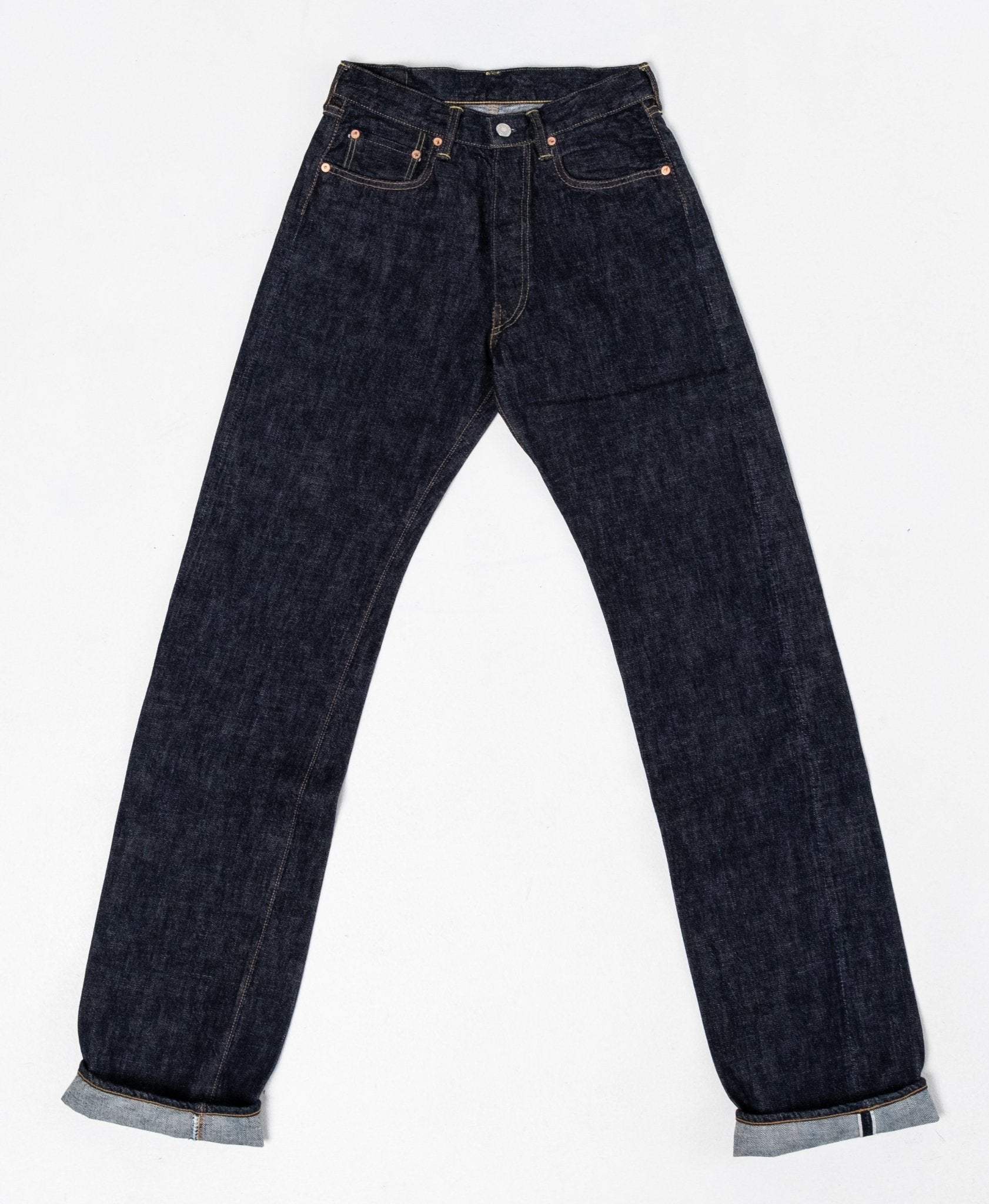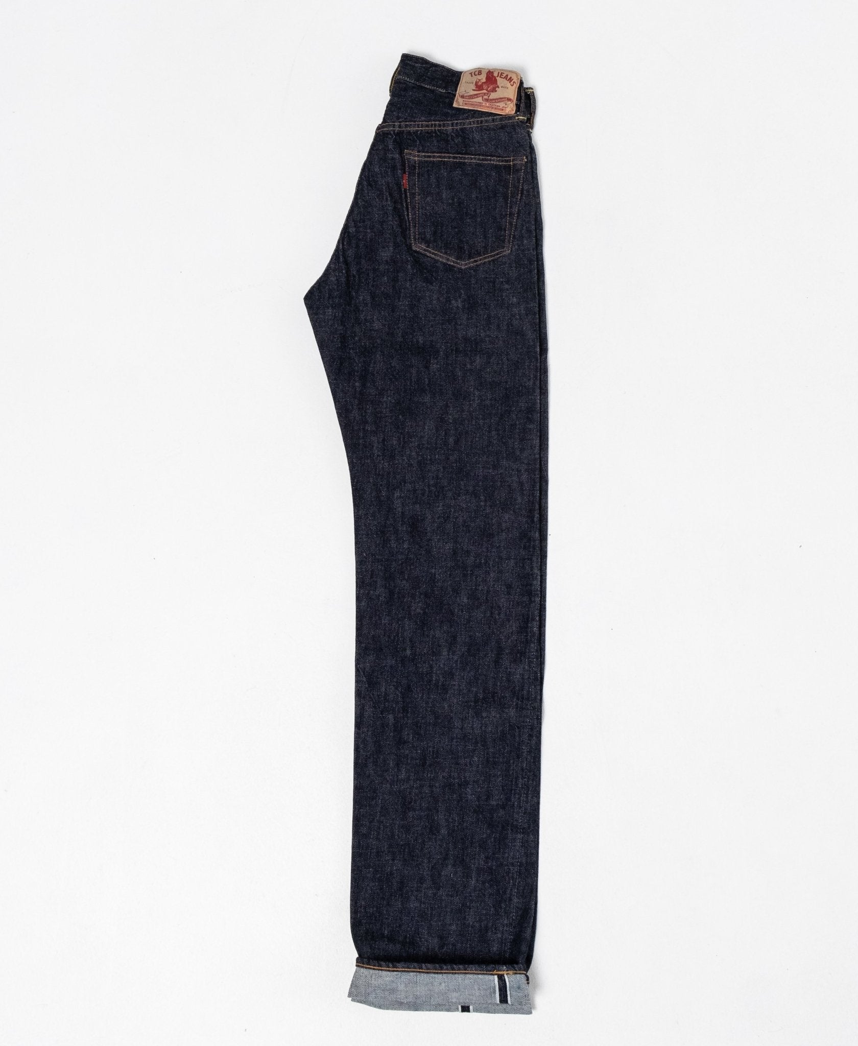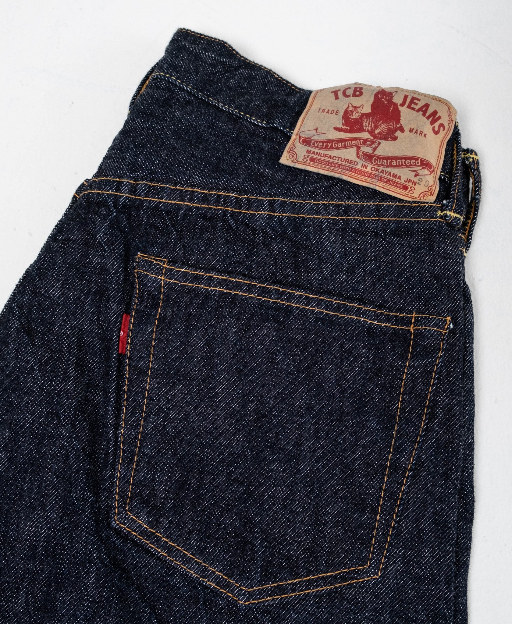 Jeans de los 50 lavados de TCB. Este modelo está basado en un par de Levi's 501 de los 50 de la colección vintage propia del dueño. TCB replicó el color y todo lo demás, hilo por hilo. Cortados de un denim de orillo lavado de 13,5 oz hecho de algodón de Zimbabue. El denim está tejido en máquinas antiguas lo que le da al denim mucha estructura desigual y toneladas de carácter. El ajuste es relajado, recto y con una cintura más alta. Un ajuste relajado fantástico. Hecho en Japón.