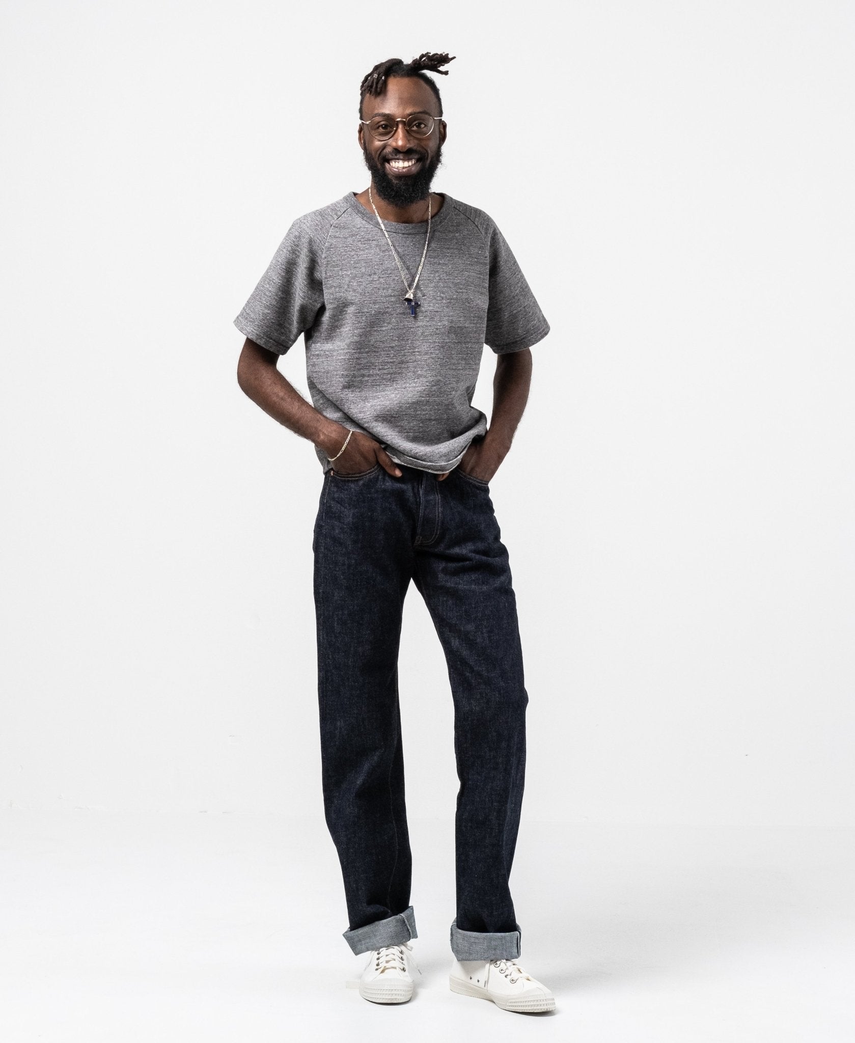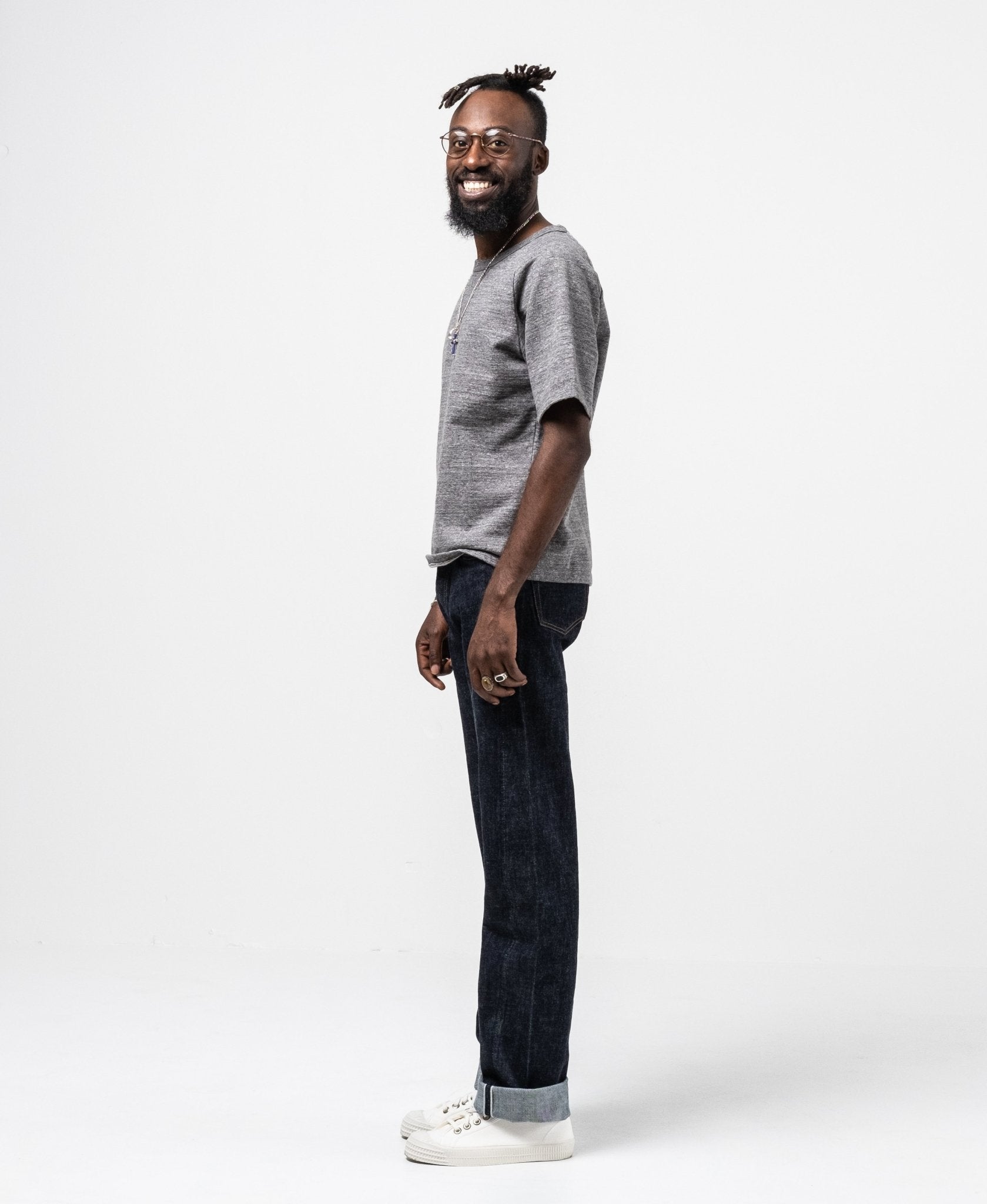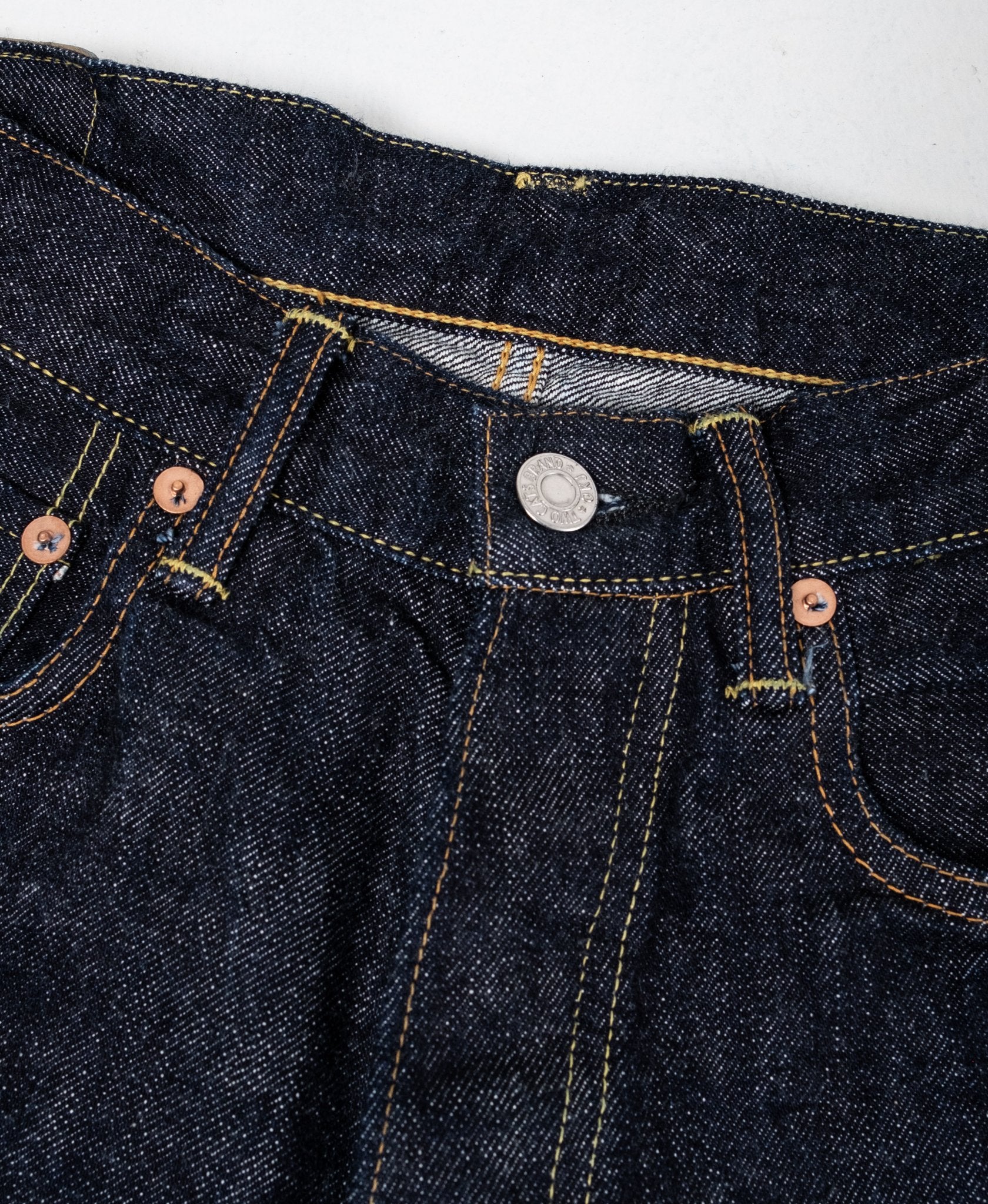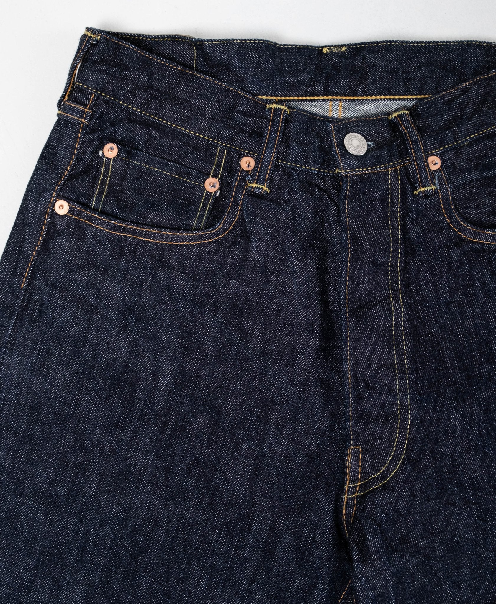 Jeans de los 50 lavados de TCB. Este modelo está basado en un par de Levi's 501 de los 50 de la colección vintage propia del dueño. TCB replicó el color y todo lo demás, hilo por hilo. Cortados de un denim de orillo lavado de 13,5 oz hecho de algodón de Zimbabue. El denim está tejido en máquinas antiguas lo que le da al denim mucha estructura desigual y toneladas de carácter. El ajuste es relajado, recto y con una cintura más alta. Un ajuste relajado fantástico. Hecho en Japón.