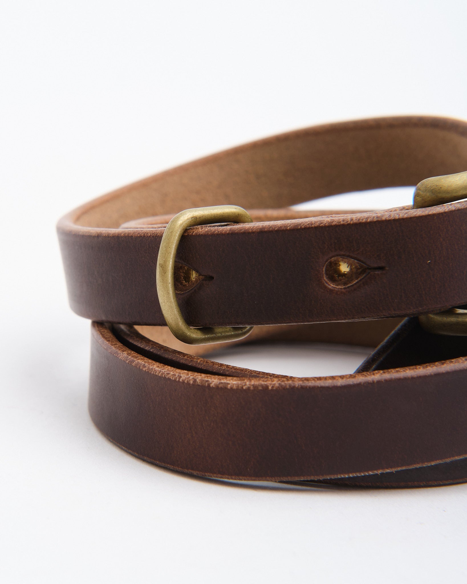 Designed to accompany JELADO’s Hoghead Wabash Trousers but versatile enough for denim or chinos, this collaborative belt with Button Works is packed with classical workwear details. At its core is Horween Chromexcel® leather, famous for its rich oils, brown-core aging, and deep patina that develops over years of use.