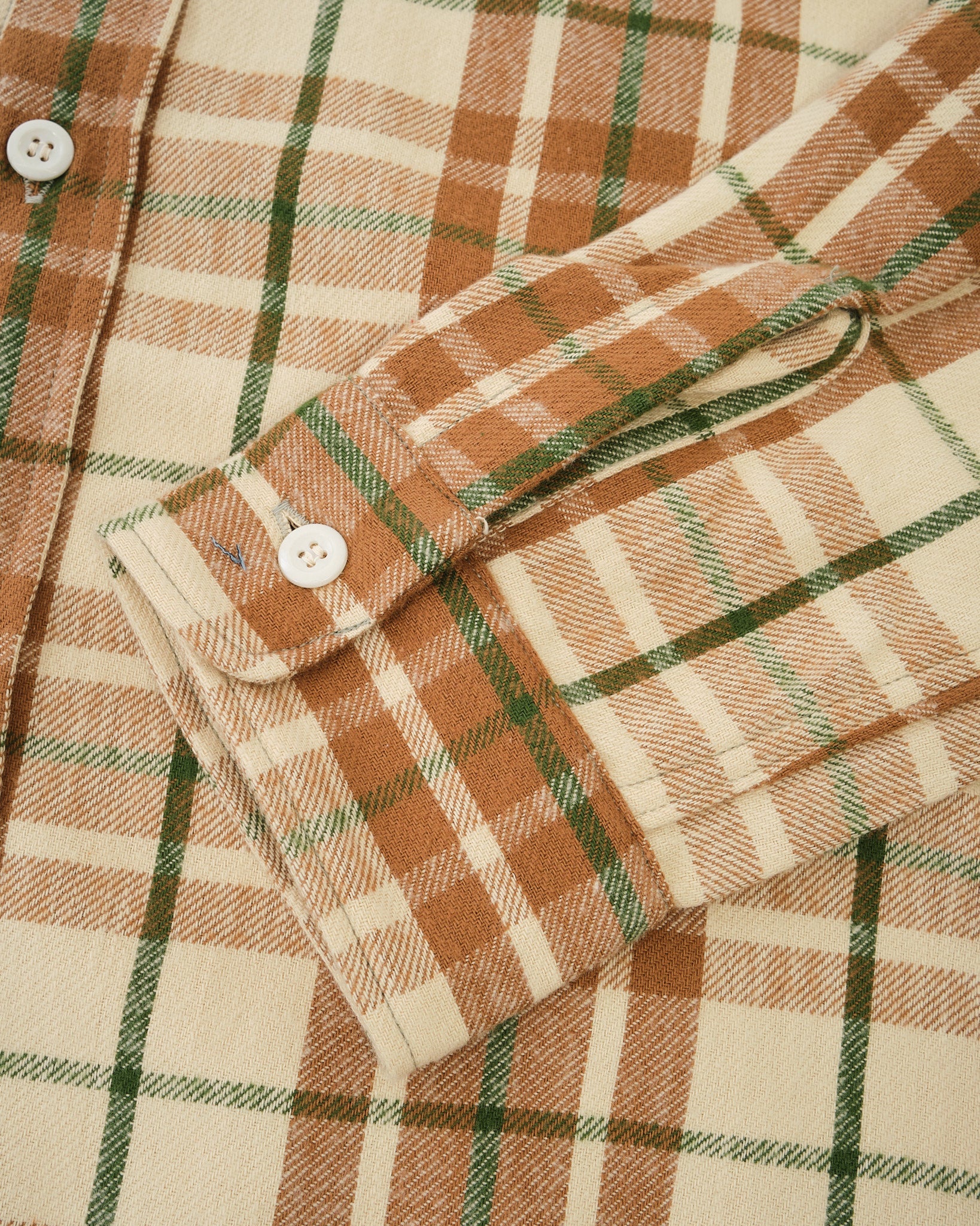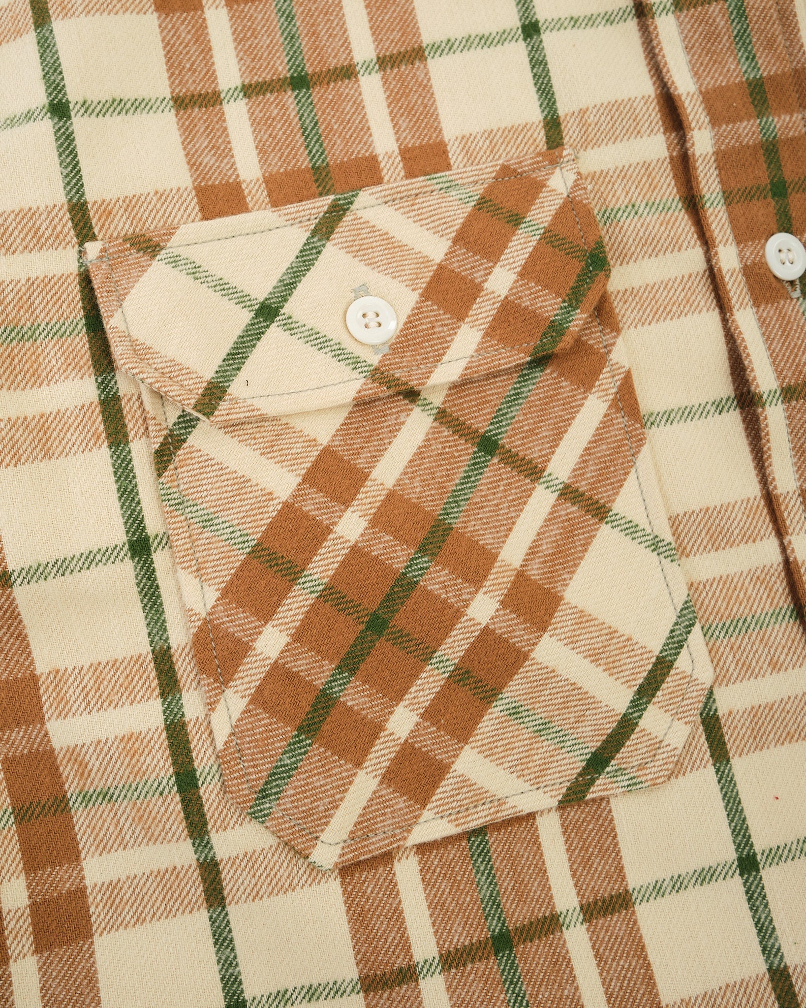 El Modern Flannel es la versión estacional de Warehouse & Co. sobre la camisa a cuadros atemporal. Esta temporada llega en cuatro patrones frescos. Confeccionada en un cuadro beige saturado con una profundidad notable, la tela está diseñada para envejecer con gracia y desarrollar carácter a través del uso y el lavado. Fiel a la reputación de Warehouse, el tacto es excepcional: un franela suave pero resistente que combina comodidad y durabilidad. Con su ajuste equilibrado y detalles tradicionales, esta pieza mezcla la utilidad diaria con el encanto vintage. Es el tipo de camisa que mejora con cada temporada.