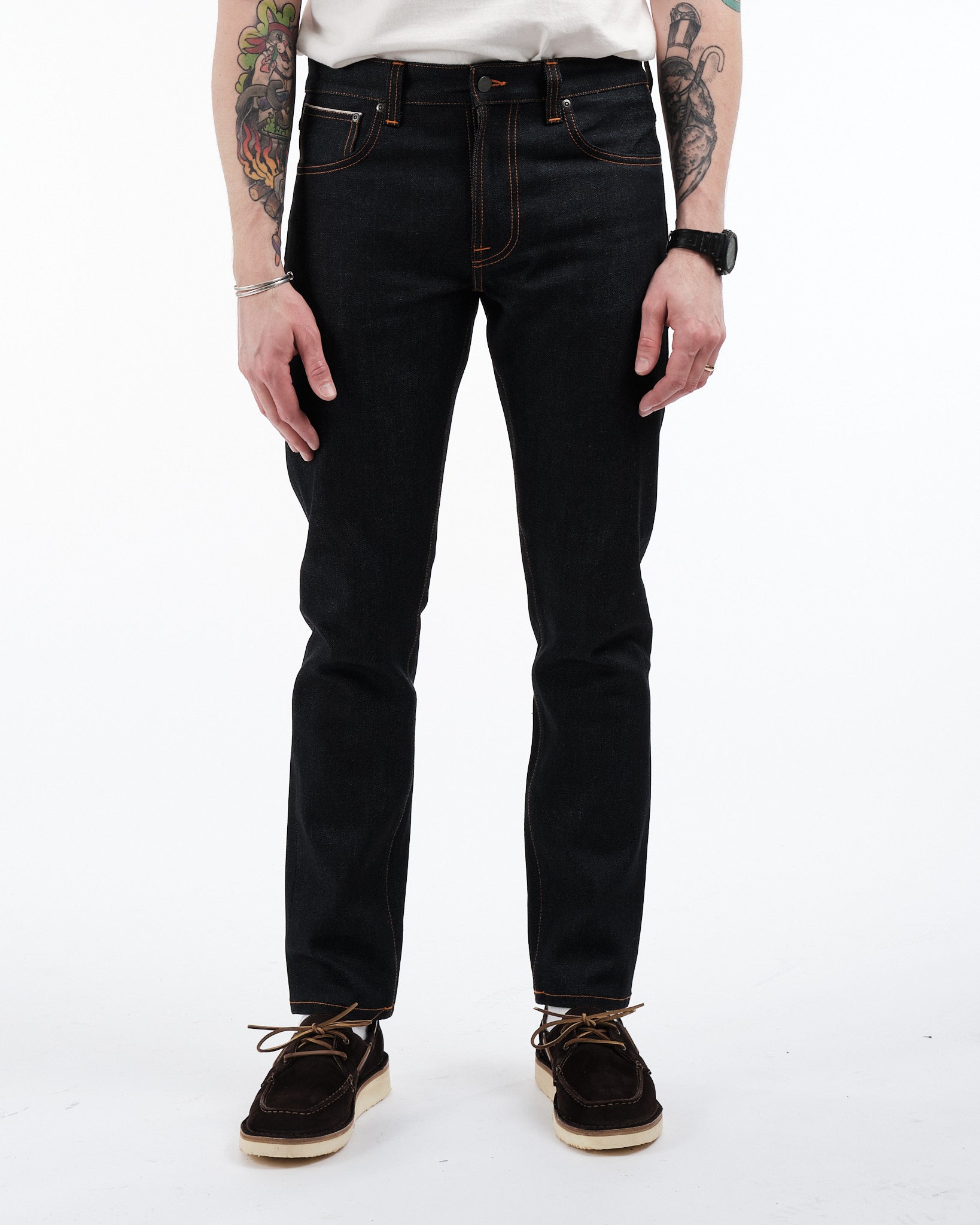 3. Detalles Únicos: Hilos naranjas en todas las costuras y una línea de id de selvage naranja distintiva exclusiva de Nudie Jeans Co., mejorando el atractivo visual de los jeans.
