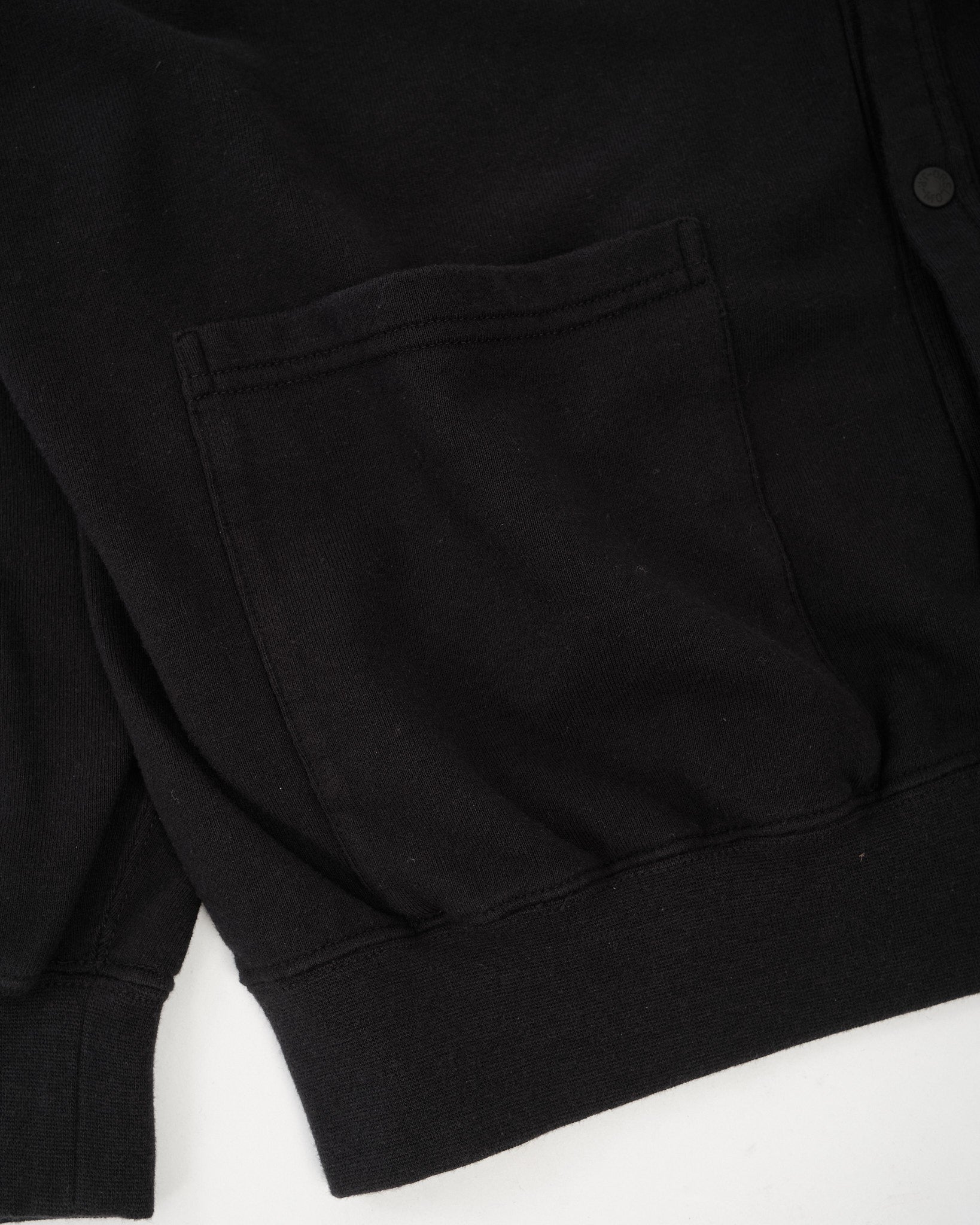 Made from lightweight French terry cotton, the fabric offers a soft interior loopback construction that feels breathable and easy against the skin. It’s ideal for layering year-round — substantial enough to wear on its own, yet light enough to sit comfortably under a jacket.