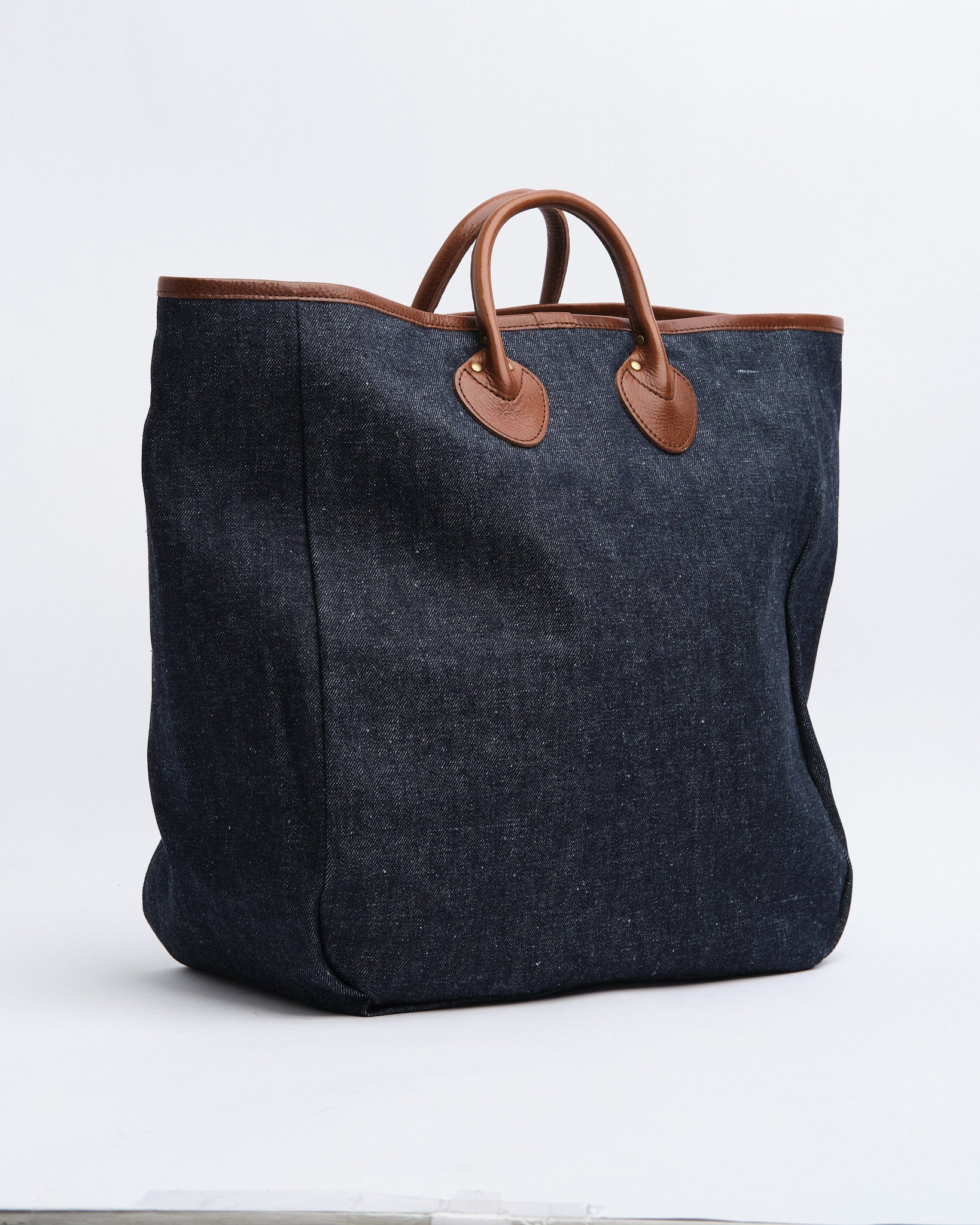 Unlike standard shoulder totes, the Lot 5230 features a deliberately short handle — a detail true to its workwear roots. The vegetable-tanned leather handles will develop a rich patina over time, while the denim body will fade beautifully with use, telling a story unique to each owner.