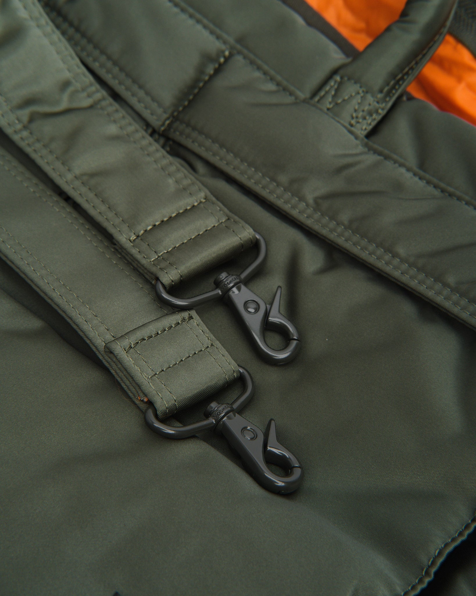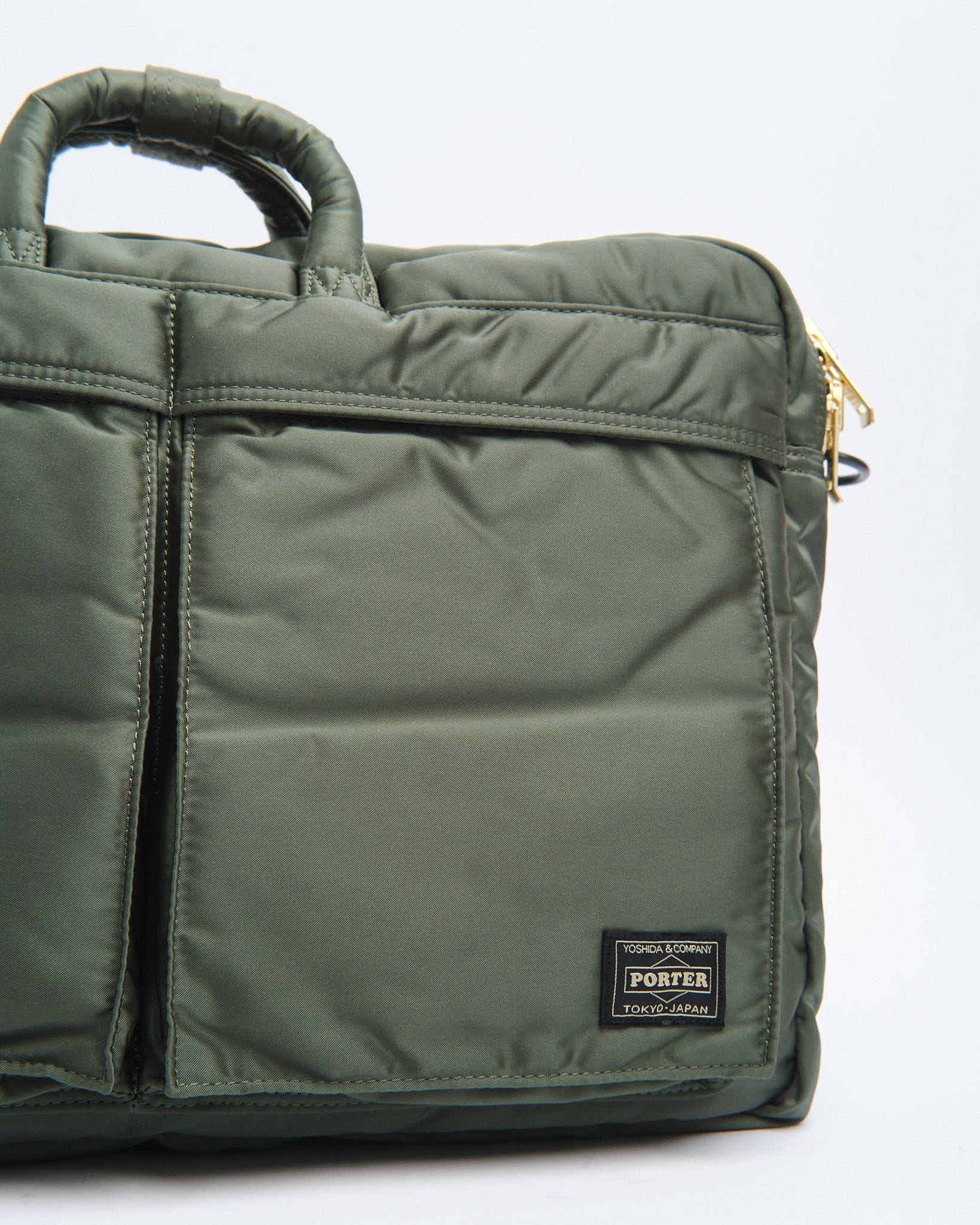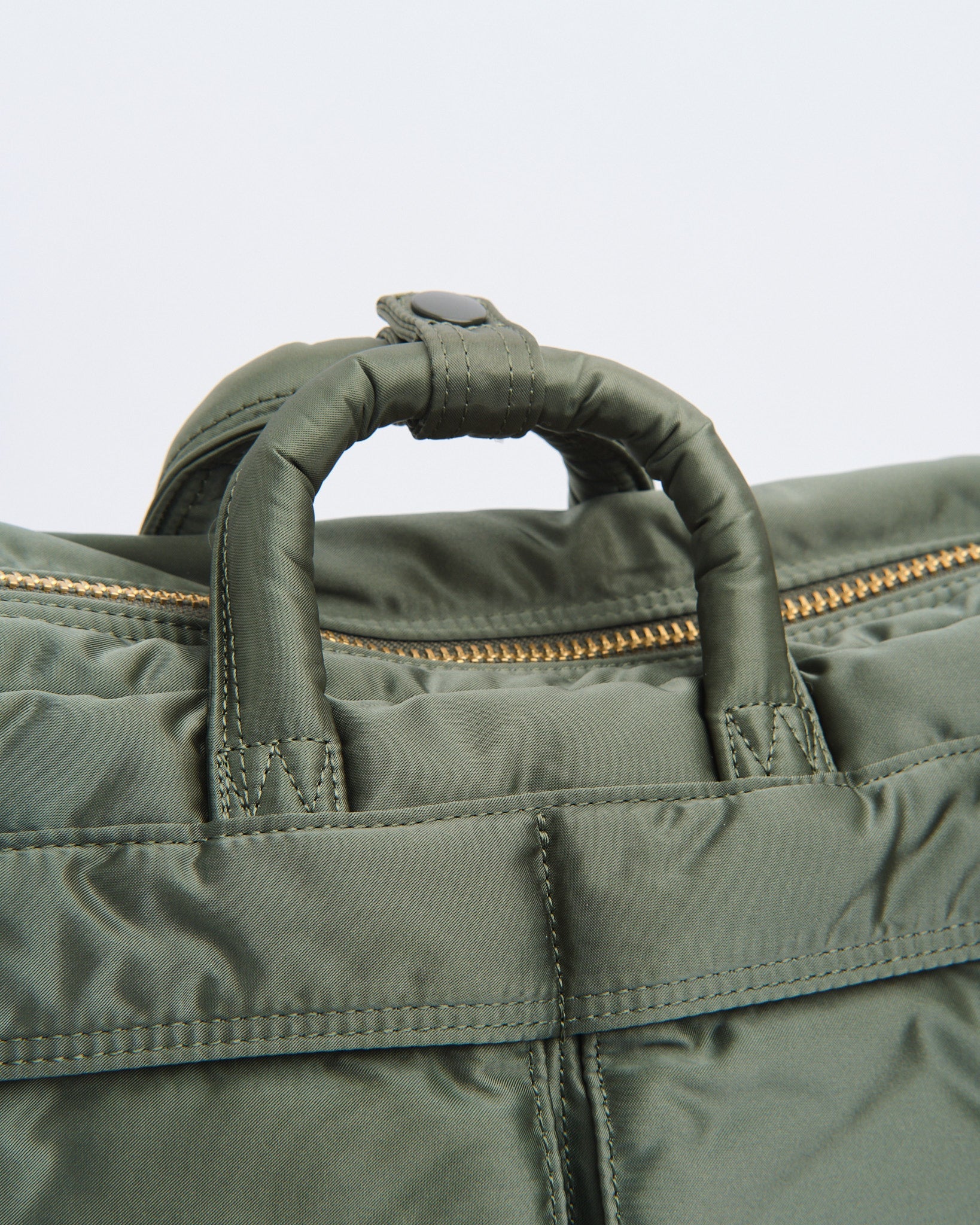 El PORTER BY YOSHIDA Tanker 3-Way Document Bag (622-26108-30) en Verde Salvia es una bolsa altamente funcional y versátil de la serie New Tanker recién renacida. Confeccionada con nylon 100% derivado de plantas, hecho de maíz y plantas de ricino, esta bolsa para documentos continúa el legado de la icónica colección Tanker, ahora mejorada con actualizaciones modernas. La tela, producida por Toray Industries, es conocida por su excepcional resistencia, flexibilidad y vibrante lustre, siendo además amigable con el medio ambiente.