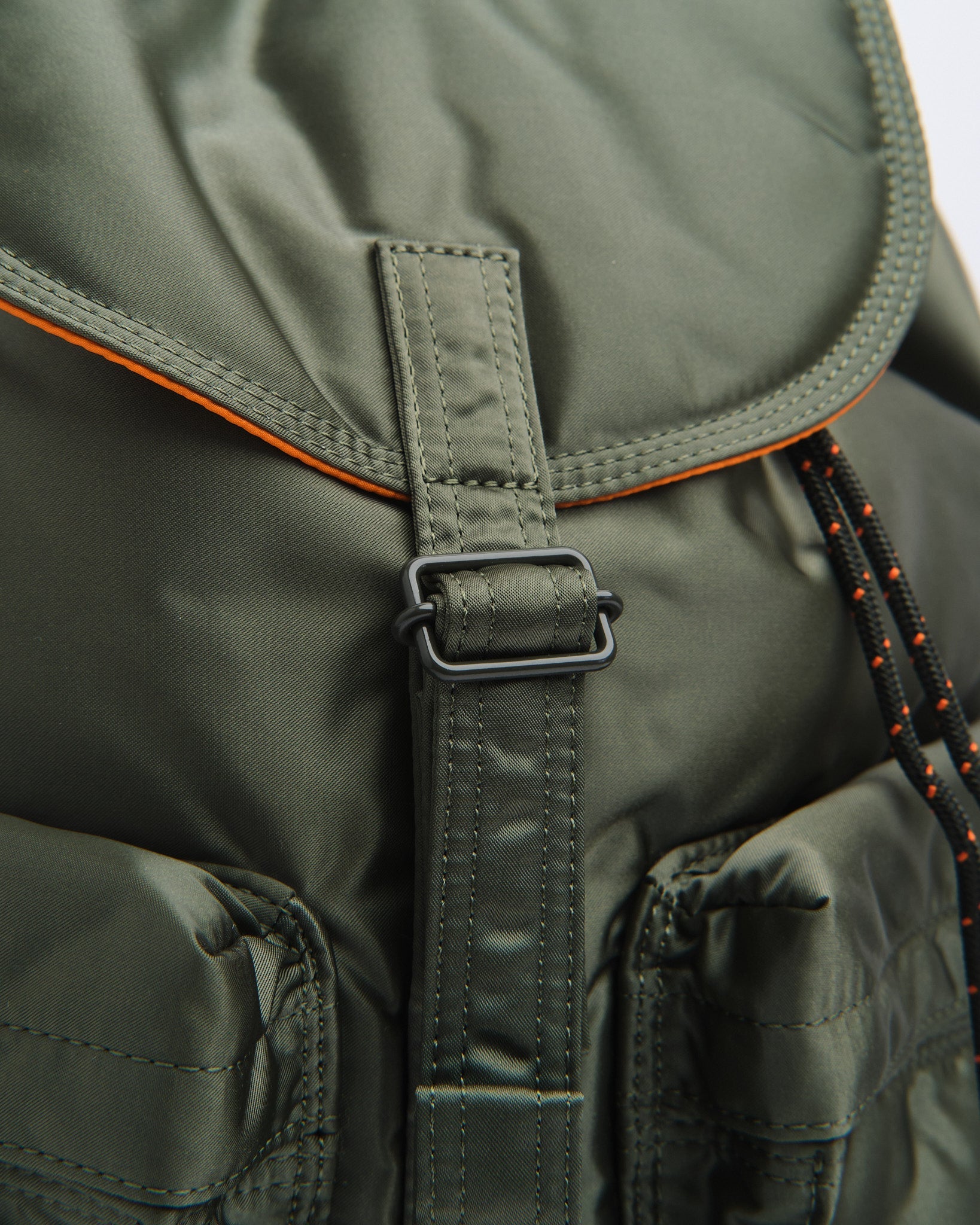 La Mochila Tanker de PORTER BY YOSHIDA (622-01630-30) en Verde Salvia es destacada en la serie New Tanker recién renacida. Fabricada con nylon 100% derivado de plantas, hecho de maíz y plantas de ricino, la mochila continúa el legado de la icónica colección Tanker, ahora mejorada con actualizaciones modernas. La tela, producida por Toray Industries, ofrece una superior resistencia, flexibilidad y un vibrante lustre, manteniendo un enfoque amigable con el medio ambiente.