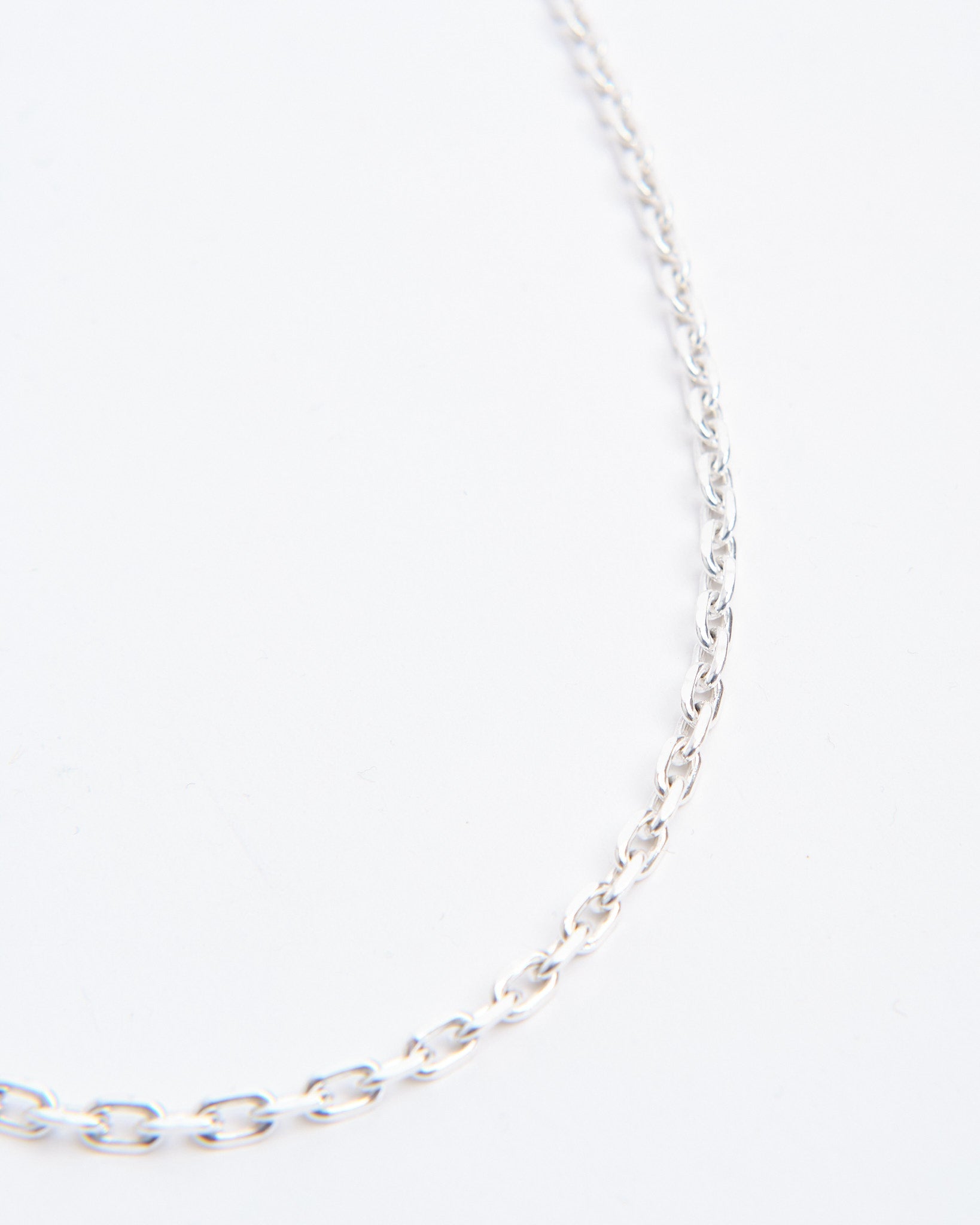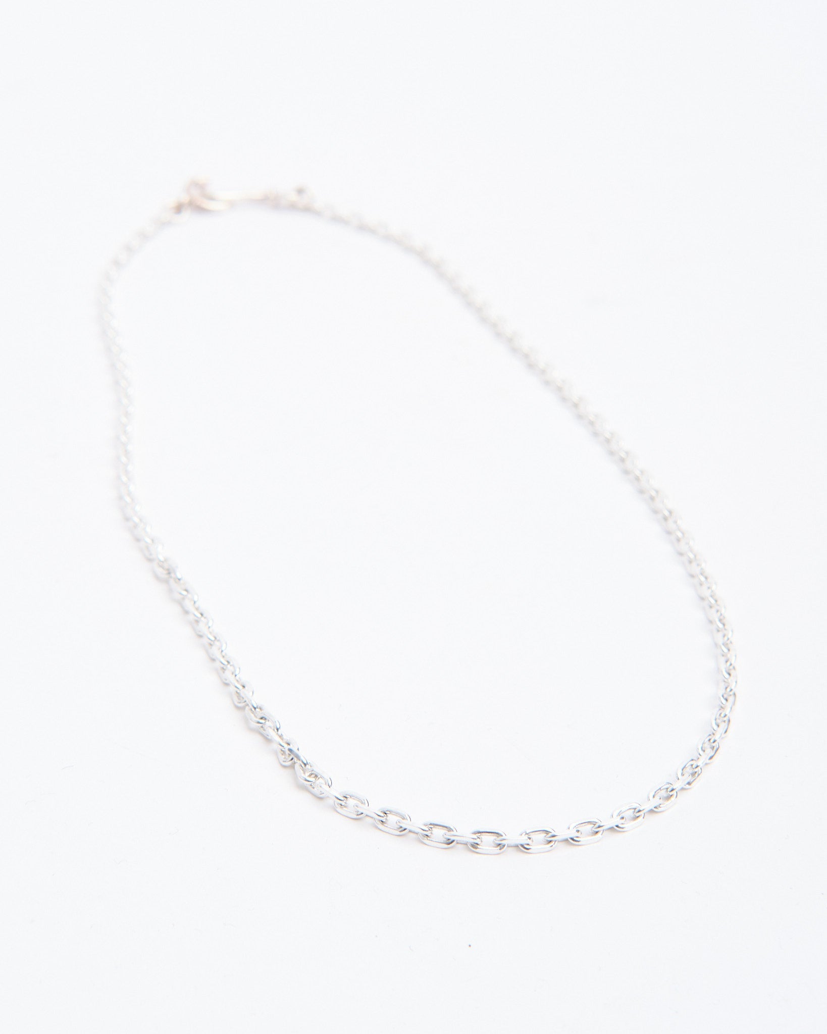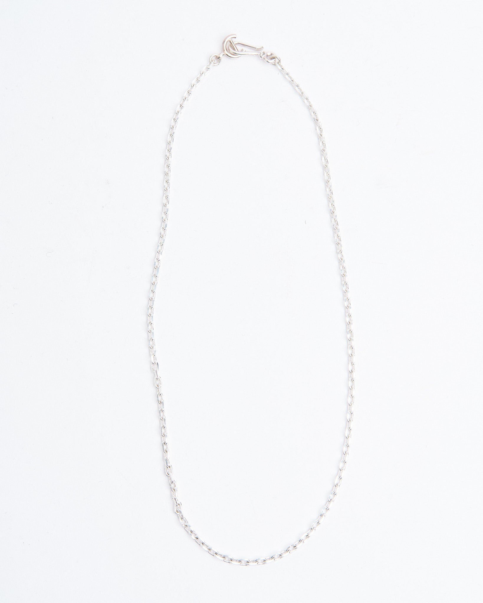 The Chain M (60cm) is a handcrafted silver chain from First Arrows, made in Japan using Britannia Silver 950. Brighter than standard 925 silver and strengthened with a special heat-treatment process, it offers both durability and brilliance. With its medium weight and longer 60cm length, this chain has a relaxed drape, making it ideal for layering with other necklaces or pairing with larger pendants like feathers or medicine wheels. On its own, it serves as a subtle yet refined piece of jewelry. Over time, the silver will darken with a natural patina, adding depth and character unique to its wearer.