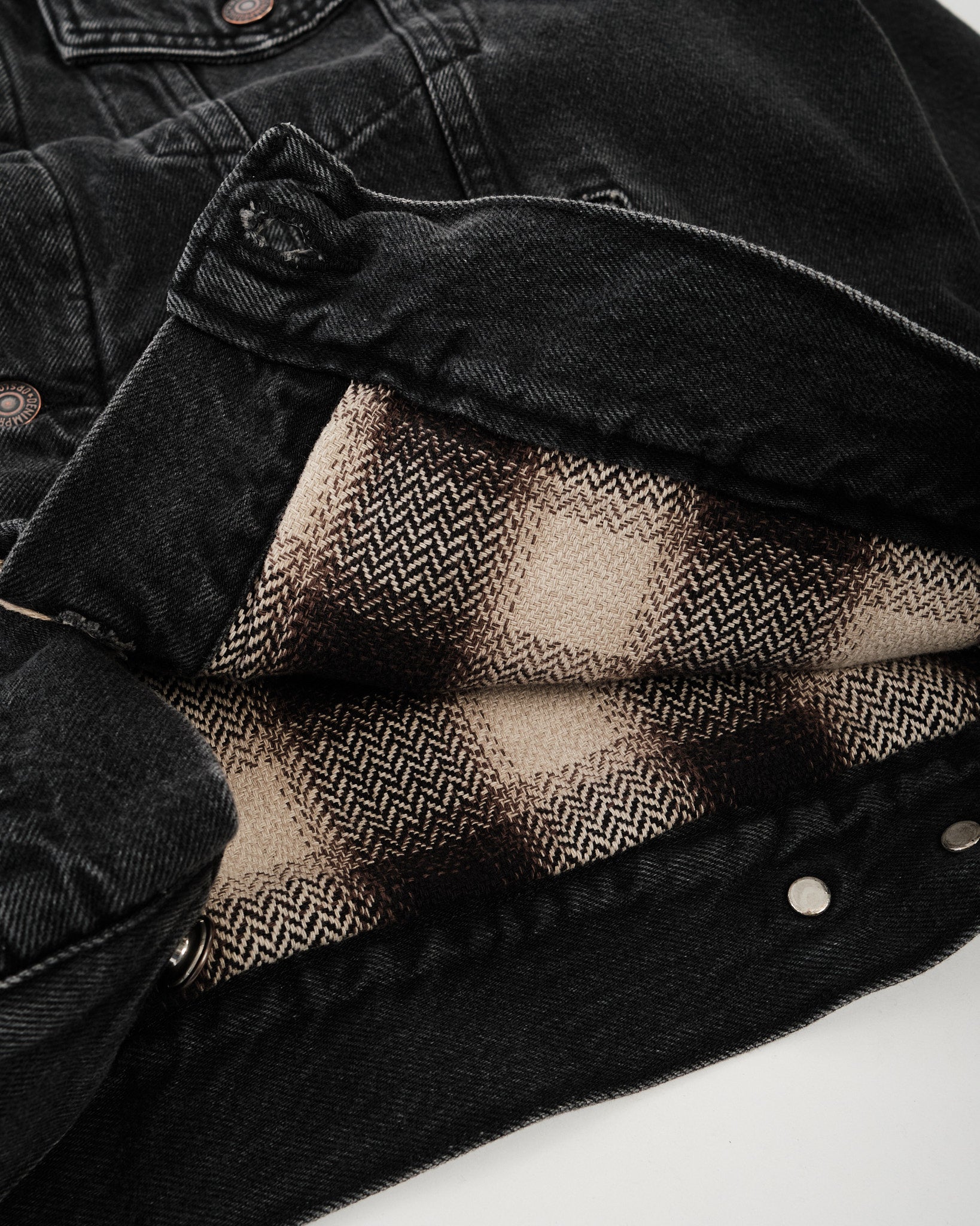 ORGANIC COTTON FLANNEL CHECK LINING BLACK DENIM JACKET