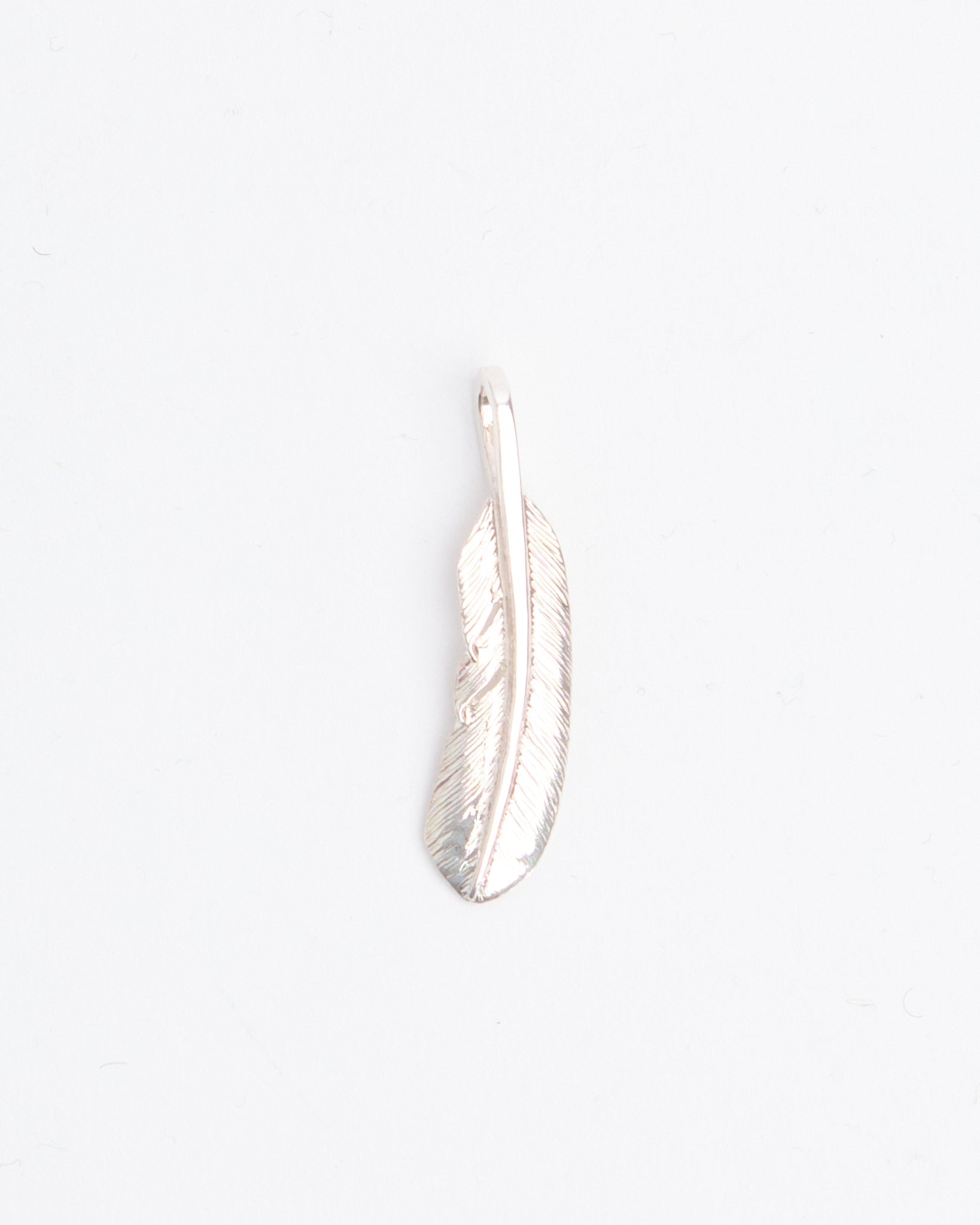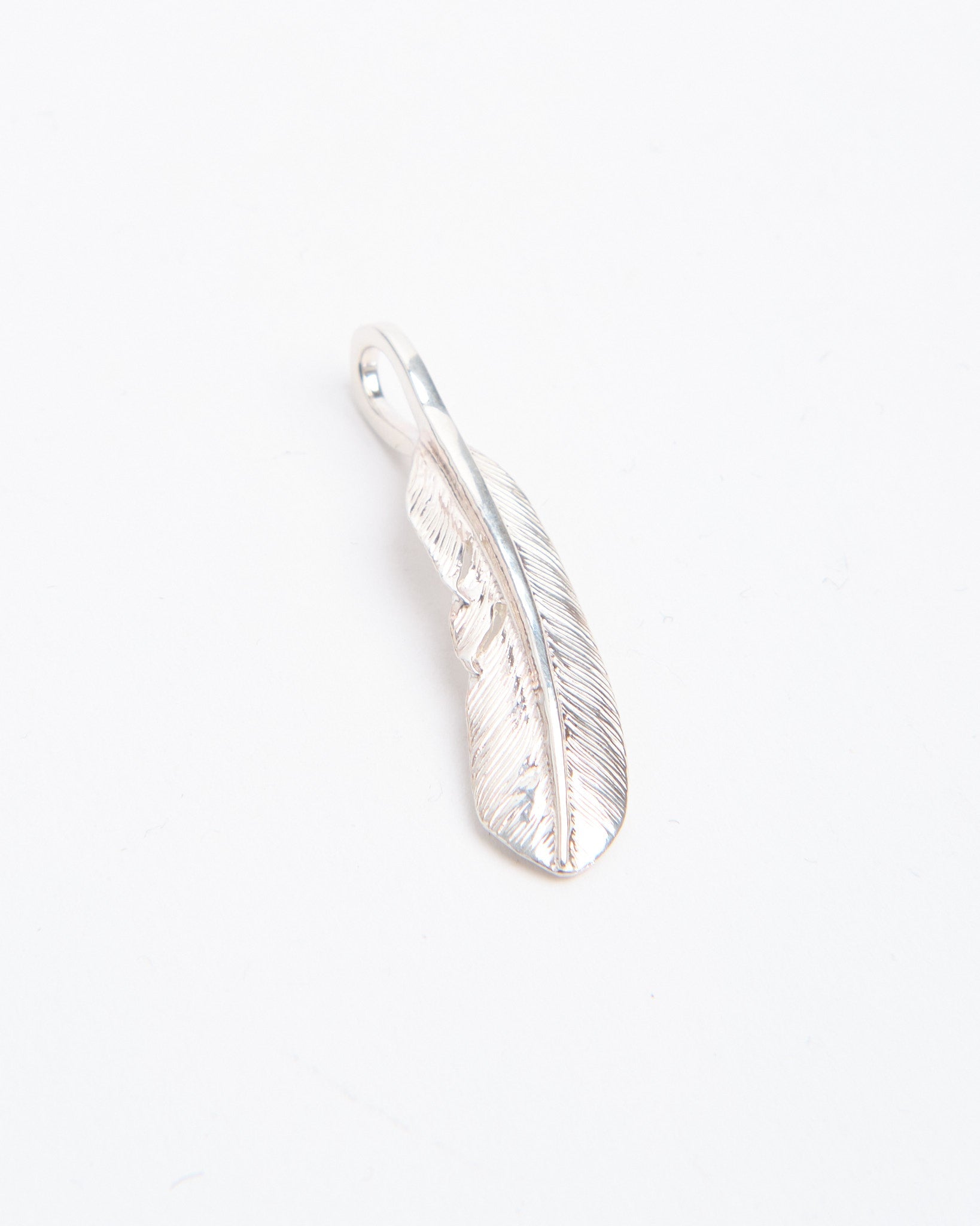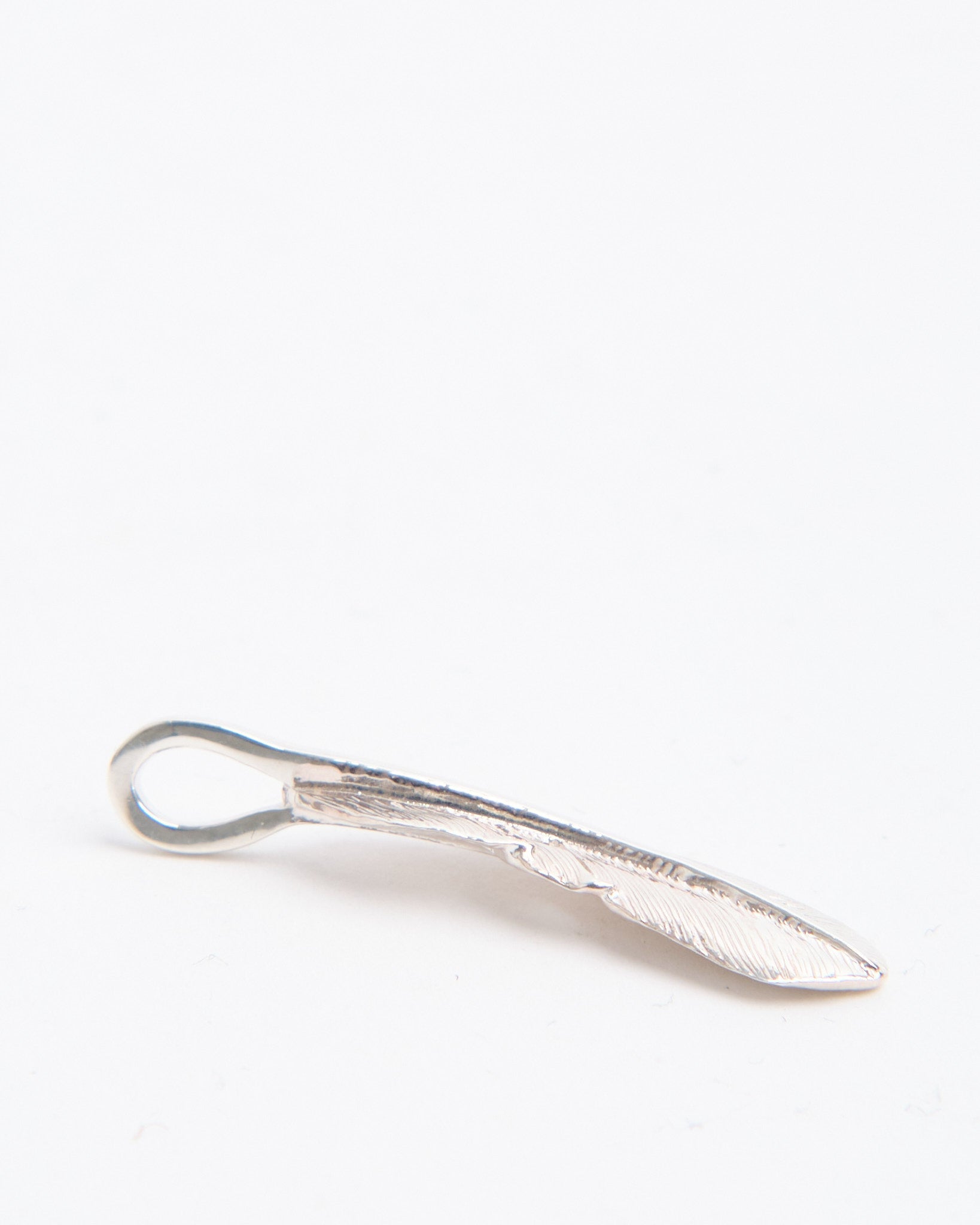 The Feather (S) es un colgante más pequeño de First Arrows, hecho a mano en Japón utilizando Plata Britannia 950. El diseño de la pluma se inspira en la tradición nativo americana, representando libertad, esperanza y espíritu positivo, pero es reinterpretado de una manera refinada y versátil. First Arrows utiliza su proceso único de tratamiento térmico para fortalecer la plata, otorgándole durabilidad y brillo. Compacto y elegante, esta pieza se puede llevar sola como un acento sutil o combinada con otros colgantes para crear una combinación personal. Con el tiempo, la plata se oscurece, añadiendo profundidad y carácter que hace que cada pieza sea única para su portador.