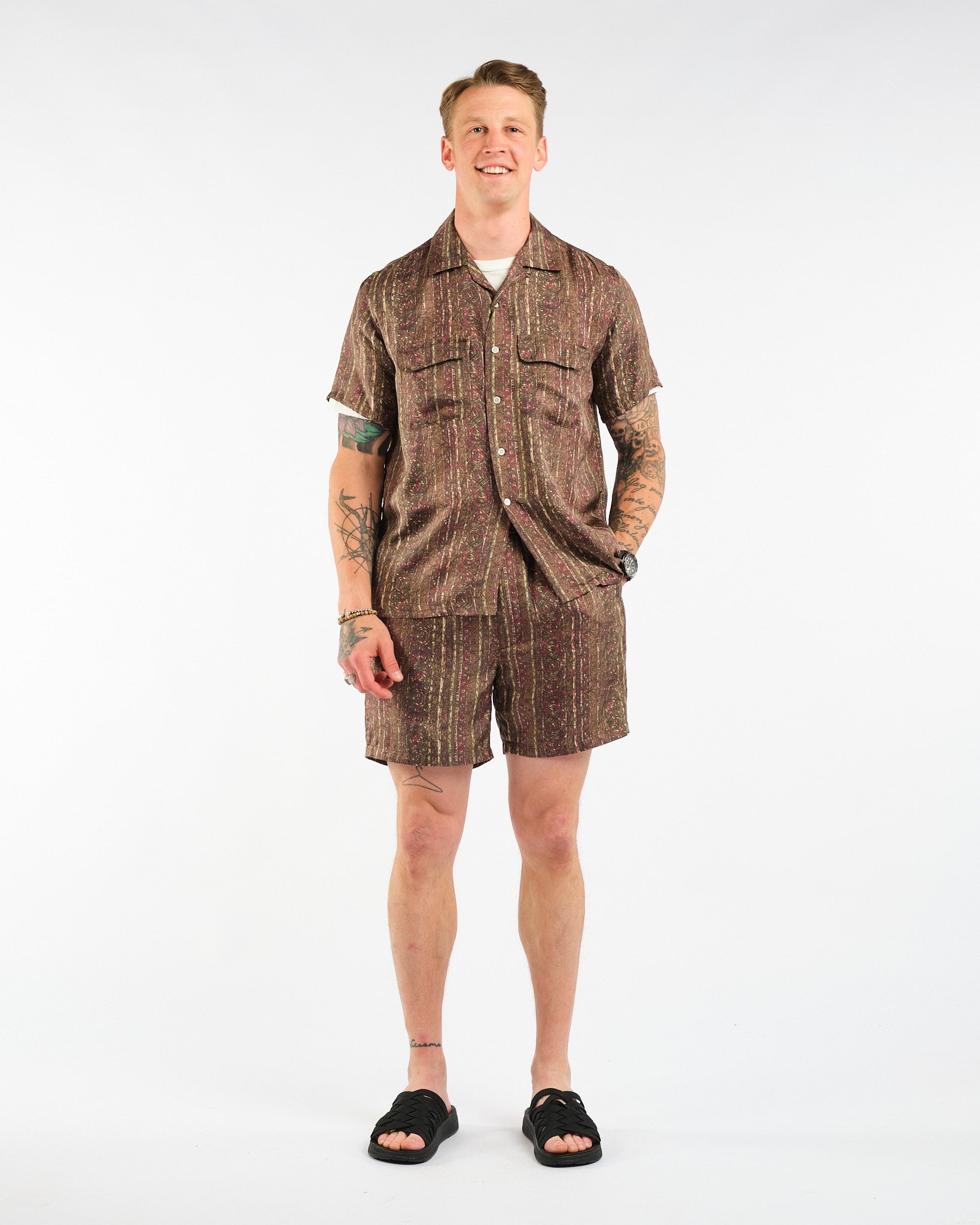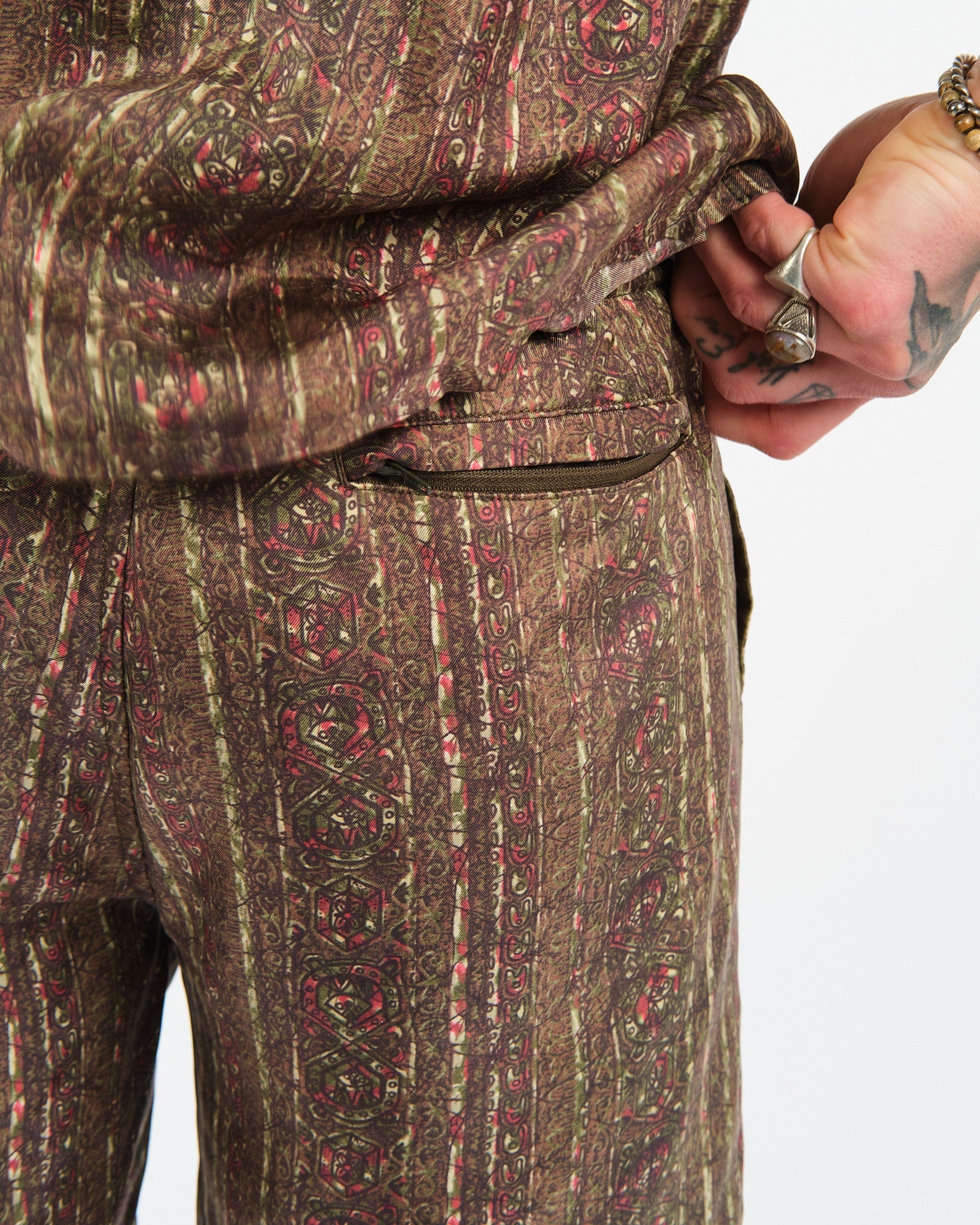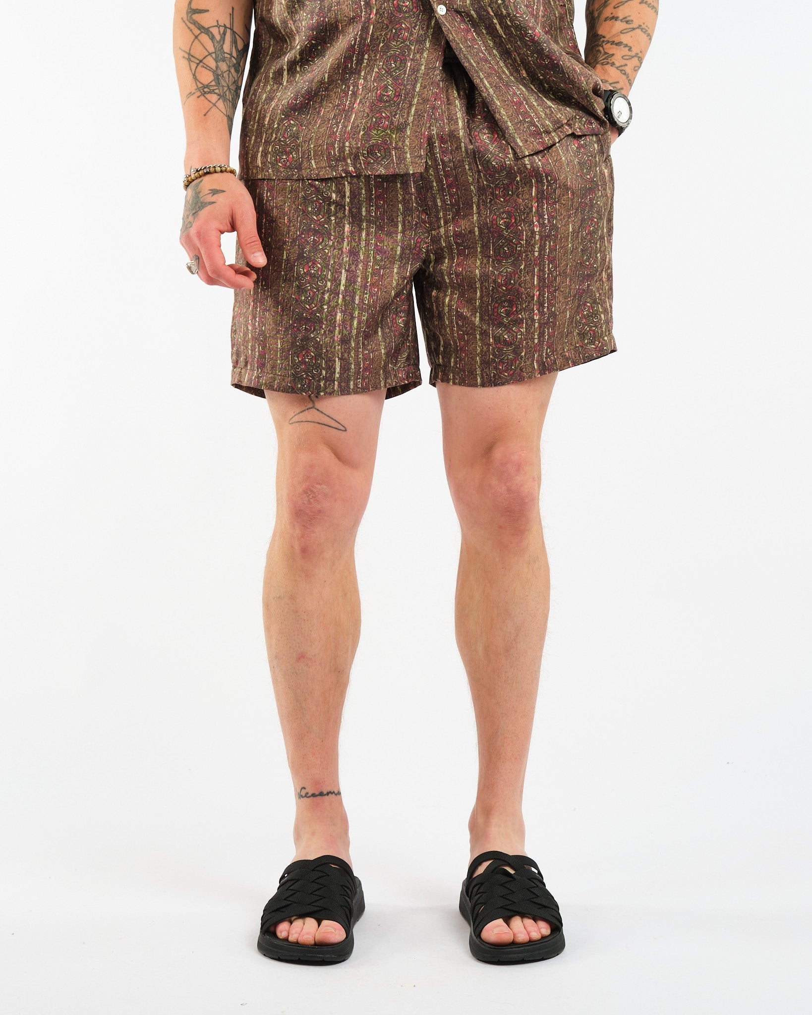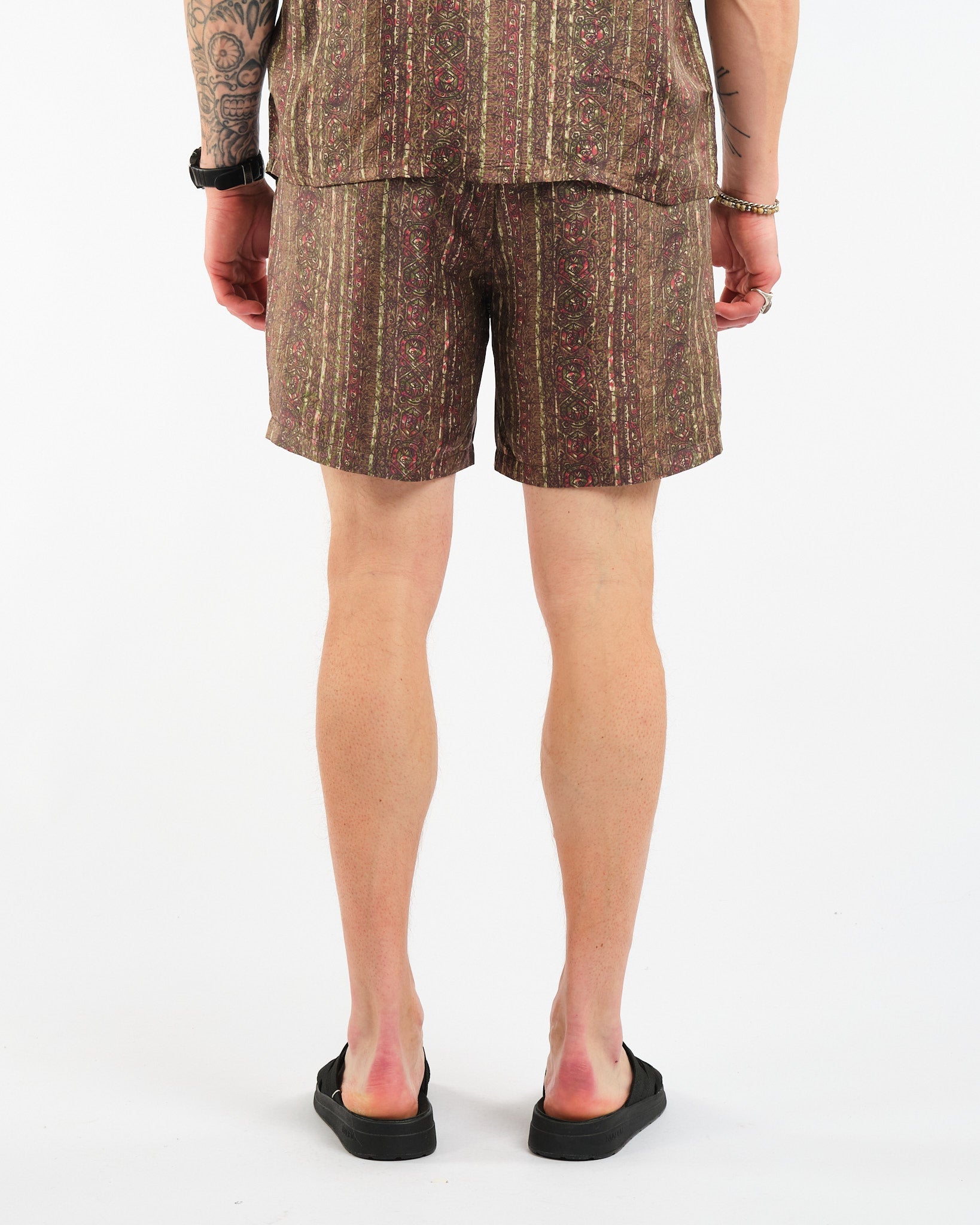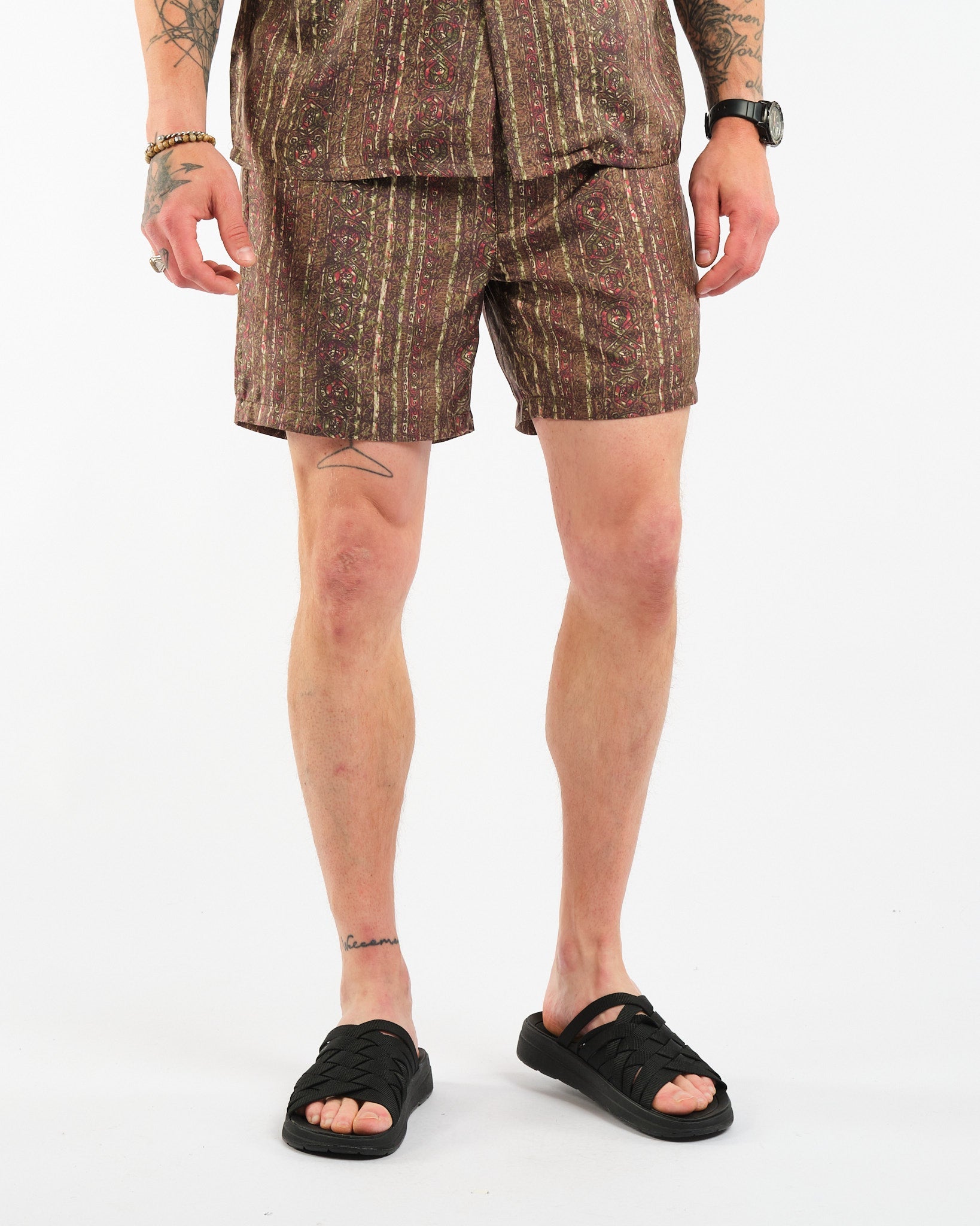 Adéntrate en el estilo sin esfuerzo con los Pantalones Cortos de Playa en Seda con Estampado Batik Oliva de Beams Plus. Inspirados en artículos vintage, estos pantalones cortos son un testimonio del compromiso de la marca con sede en Tokio de crear ropa que mantiene su atractivo casual y fresco a lo largo de los años. Confeccionados en Japón, estos pantalones cortos de 100% seda ofrecen una comodidad lujosa y una estética única. Cuentan con una cintura elástica para un ajuste cómodo, un bolsillo con solapa y botón para monedas, bolsillos inclinados delanteros, y bolsillos traseros con botón y de ojal para la practicidad.