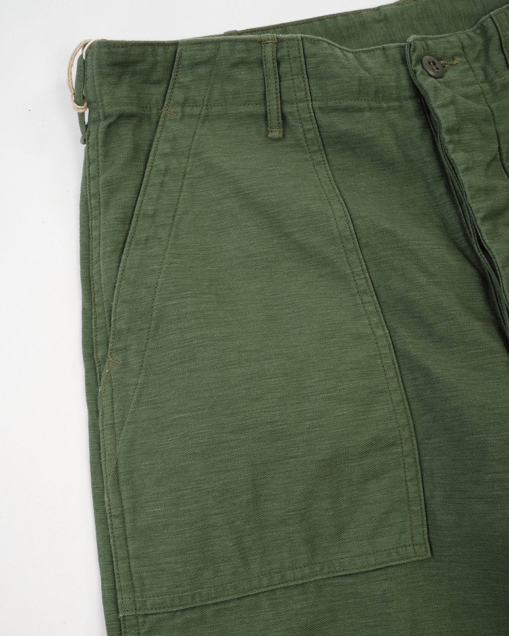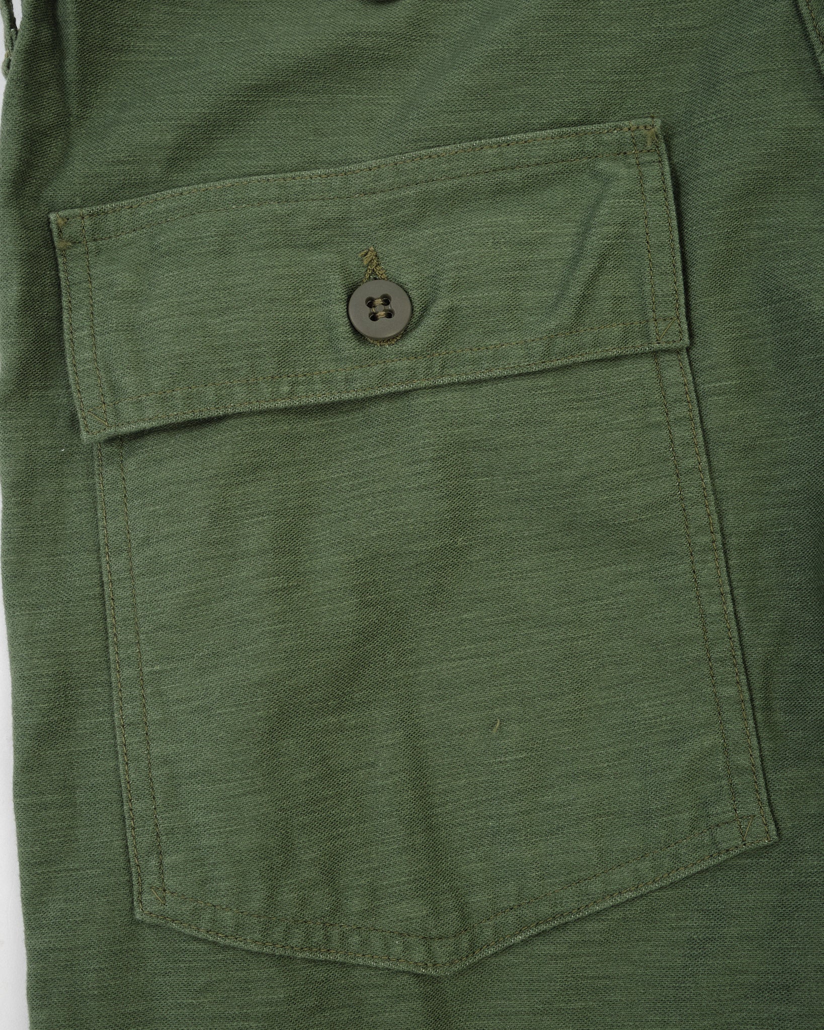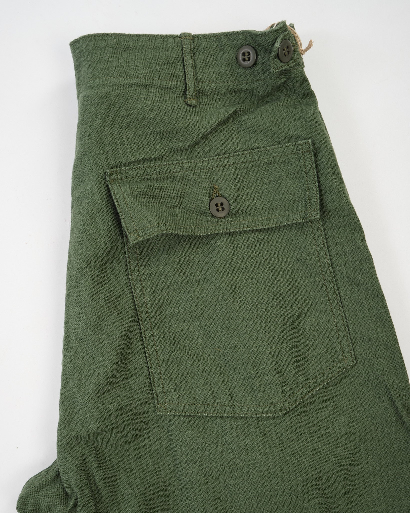 Presentamos los eternos pantalones de fatiga del ejército de EE.UU. orSlow REGULAR FIT VERDE, imprescindibles en el mundo de la ropa de primera calidad conocidos por su atractivo y comodidad incomparable. Creados con una tela de sarga inversa, estos pantalones proporcionan un tacto suave y liso gracias a su distintiva textura irregular que es cautivadora de cerca. A pesar de ser clasificados como de peso pesado, son excepcionalmente suaves con la piel, lo que los hace perfectos para el lujo. Cada detalle intrincado, desde la cintura con pestaña lateral hasta los bolsillos de parche frontales y numerosos cierres de botón, rinde homenaje al diseño original del ejército de EE.UU. que sirvió de inspiración. Estos pantalones con ajuste de pierna recta no son solo una prenda de vestir; encarnan la historia. Han sido meticulosamente prelavados y adornados con botones de época y etiquetas tejidas personalizadas para asegurar la autenticidad y la comodidad. Elaborados con cuidado en Osaka, Japón, estos pantalones de fatiga garantizan convertirse en un elemento básico duradero en tu armario. Si logras hacerte con ellos mientras todavía están, en stock.